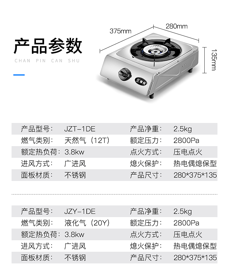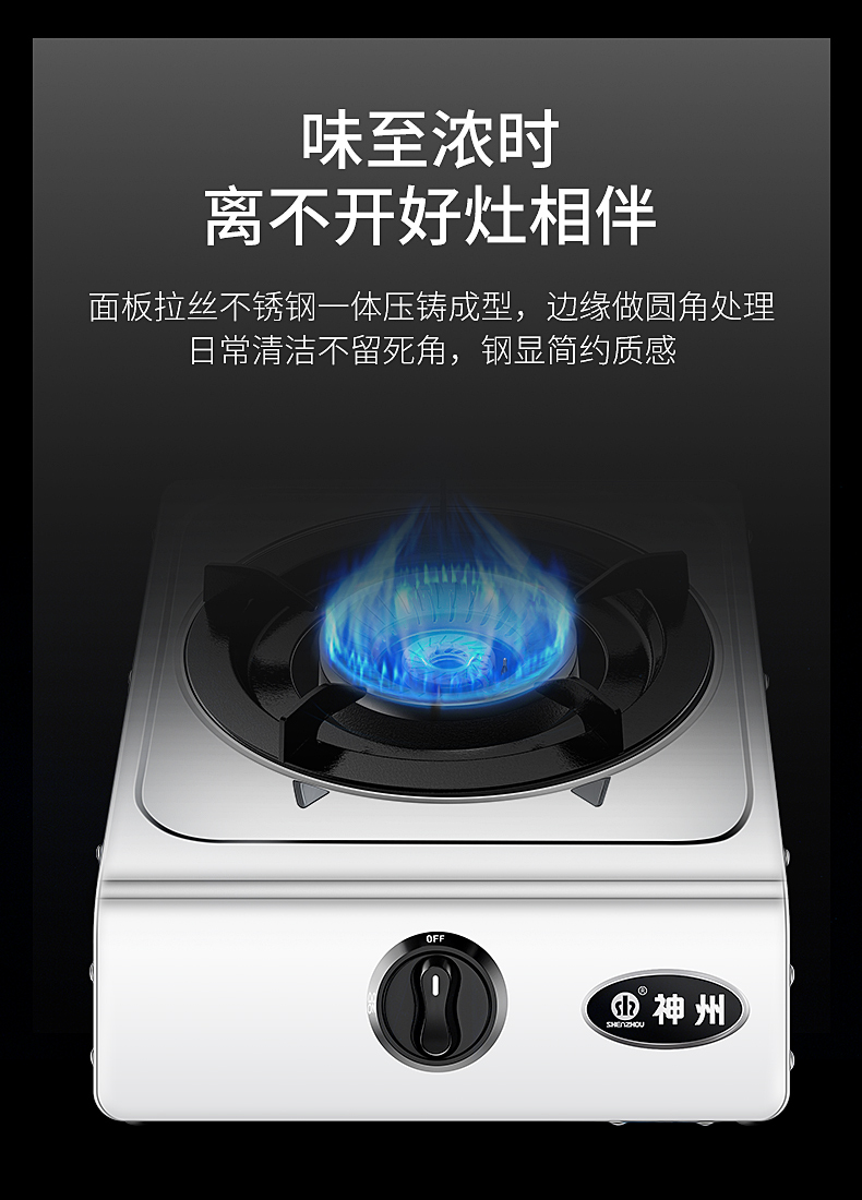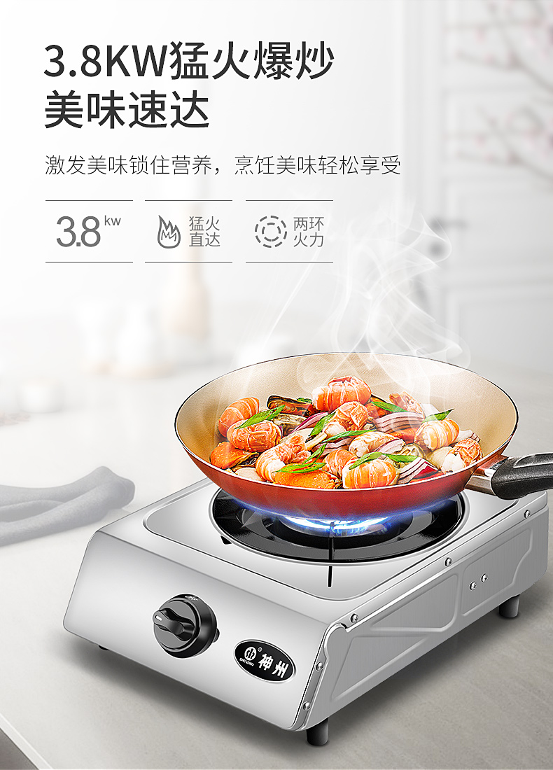 神州煤气灶单灶家用液化气燃气灶节能台式猛火不锈钢单个单头炉具