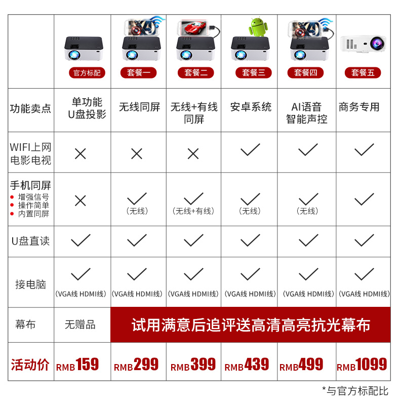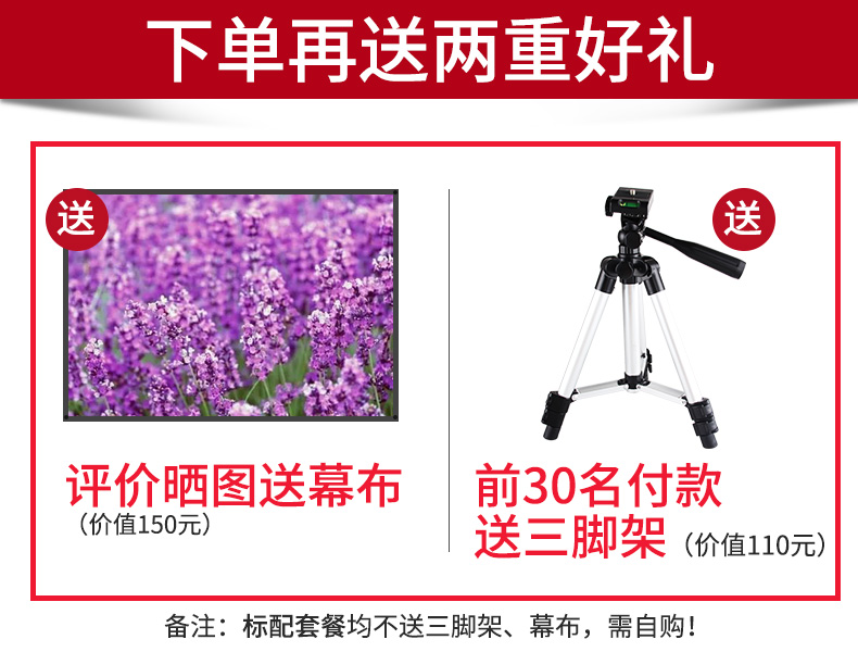 采用DLP微型投影技术,色彩逼真明亮,画质细腻清晰,高清屏幕,3D电影更过瘾,内置高品质音响,还可以WIFI连手机,无论办公还是家用都“吼住”世界尽在掌握之中~【赠运费险】