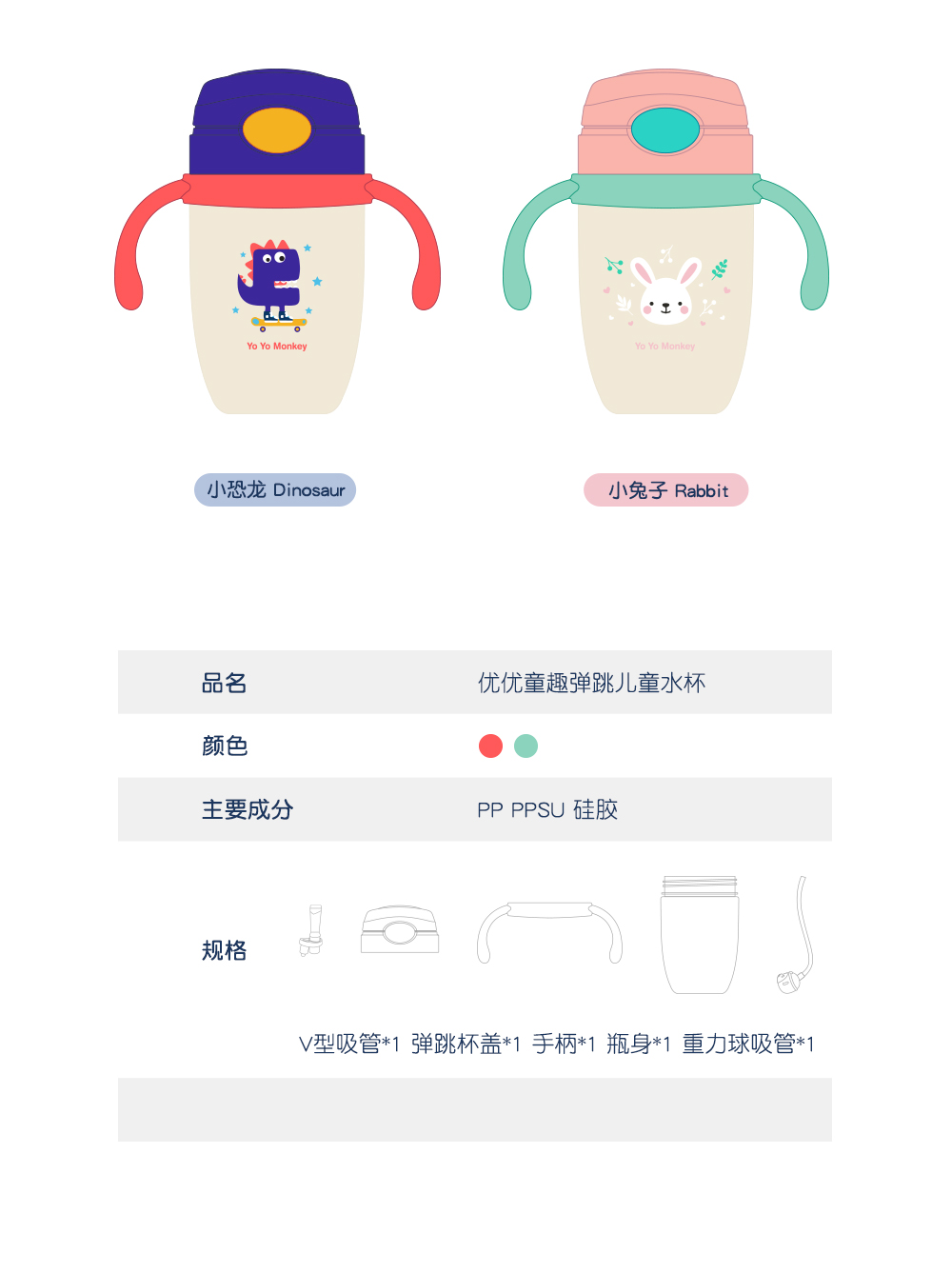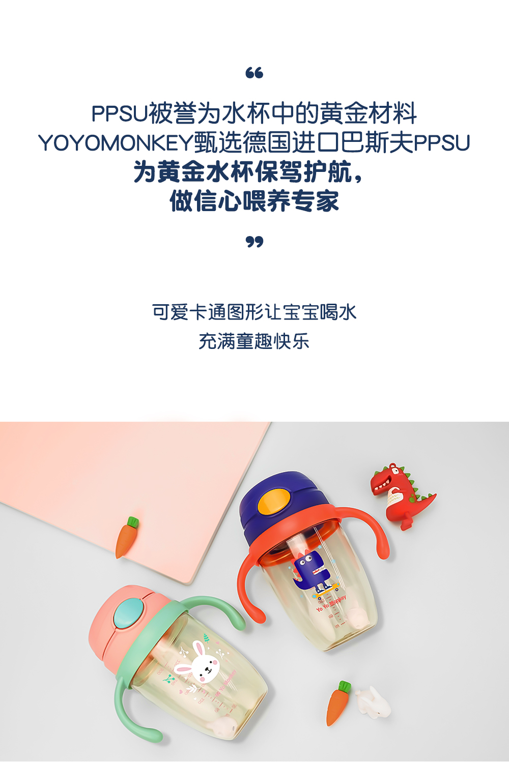 香港优优马骝PPSU婴儿吸管杯 儿童水杯宝宝学饮杯防漏防呛防摔杯