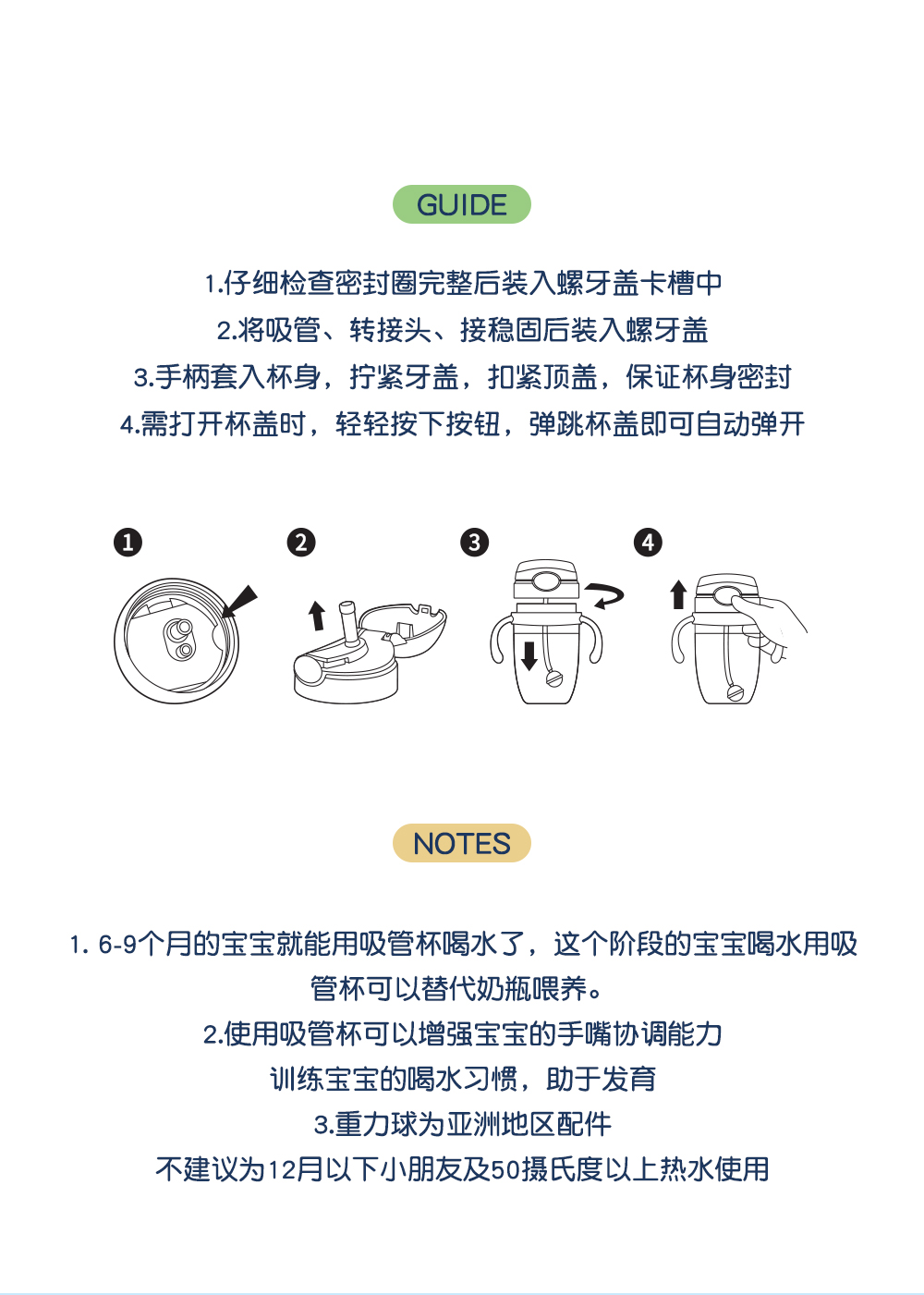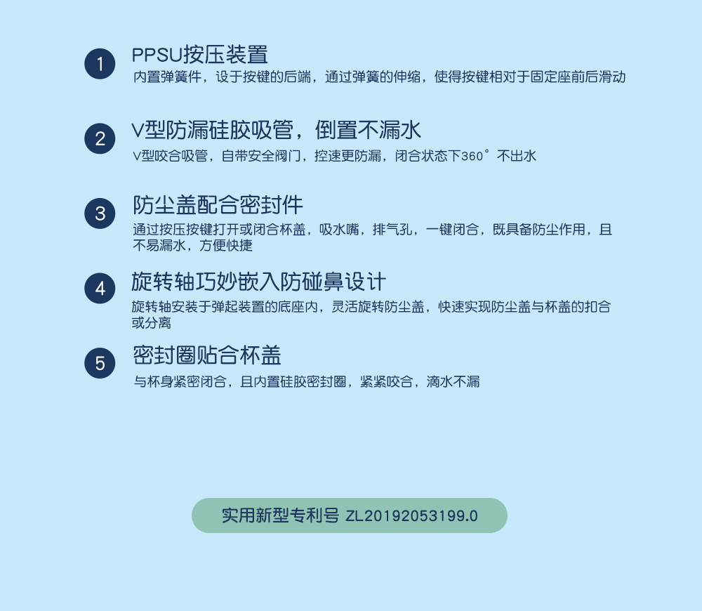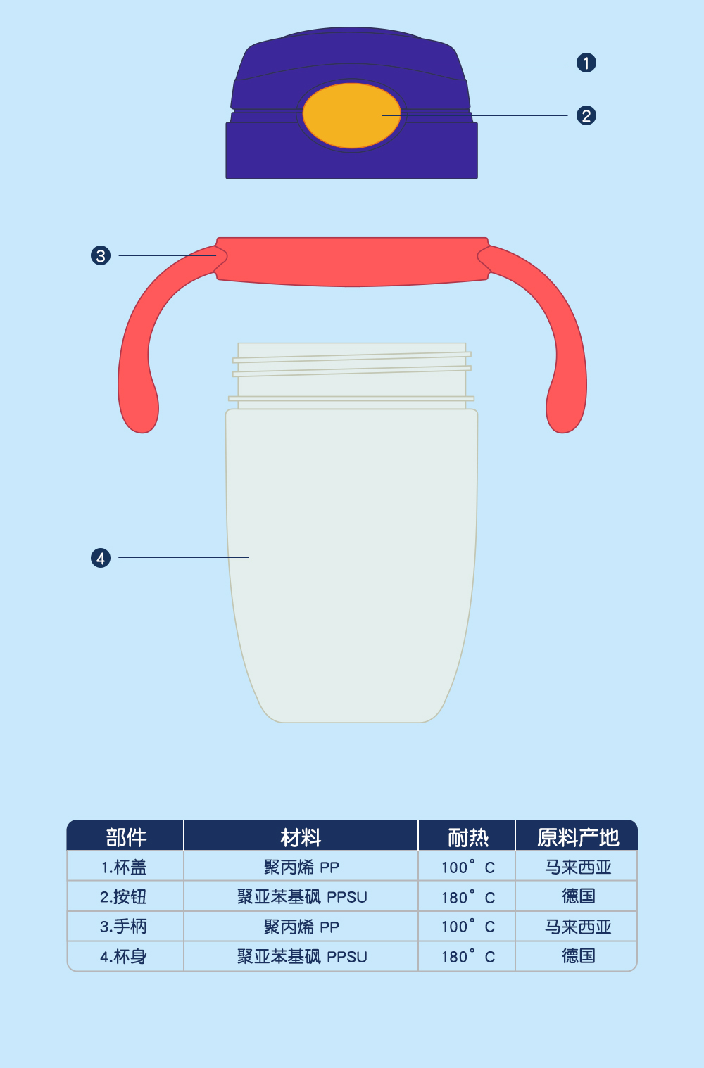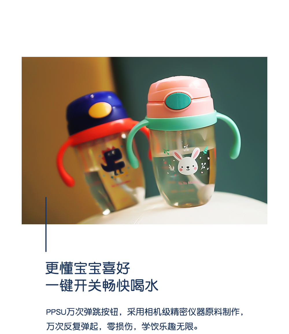 德国进口PPSU材料,高温蒸煮无异味,上百次防摔测试,抗摔耐用。可放心啃咬。重力球360度饮水设计,十字孔防呛进口硅胶吸管,开盖也不漏。【赠运费险】