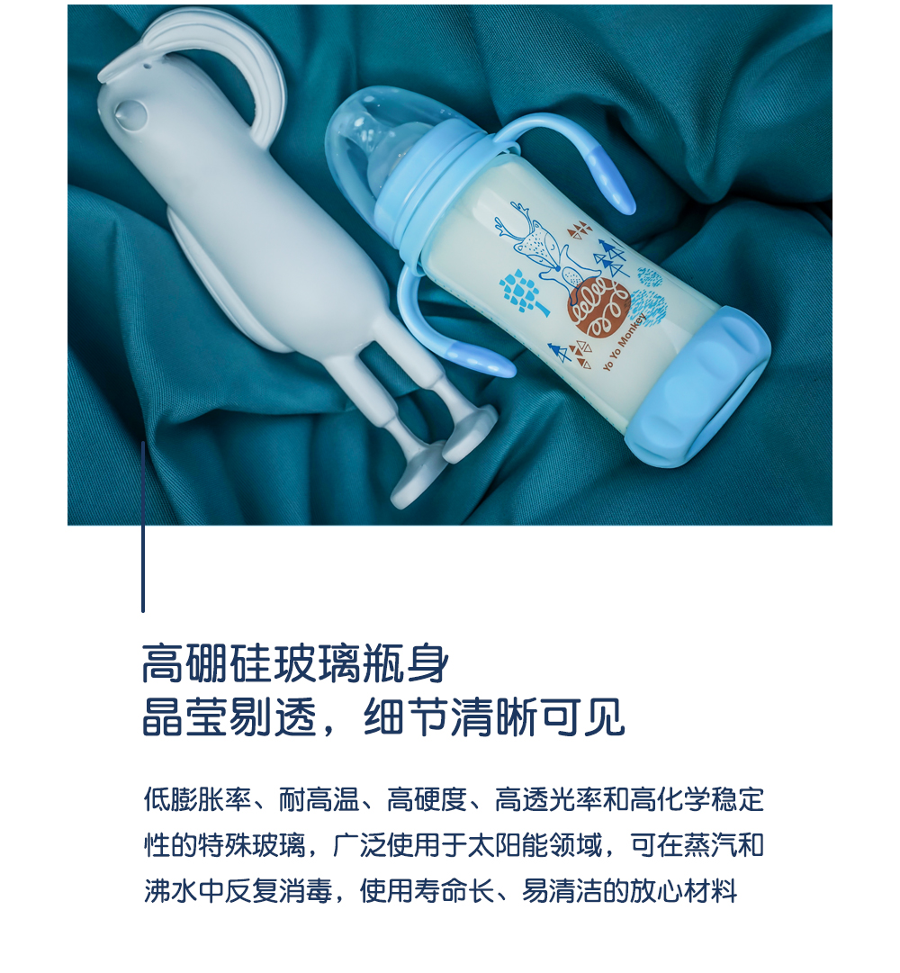 香港优优马骝新生儿玻璃奶瓶初生婴儿防爆防摔硅胶保护套防胀气