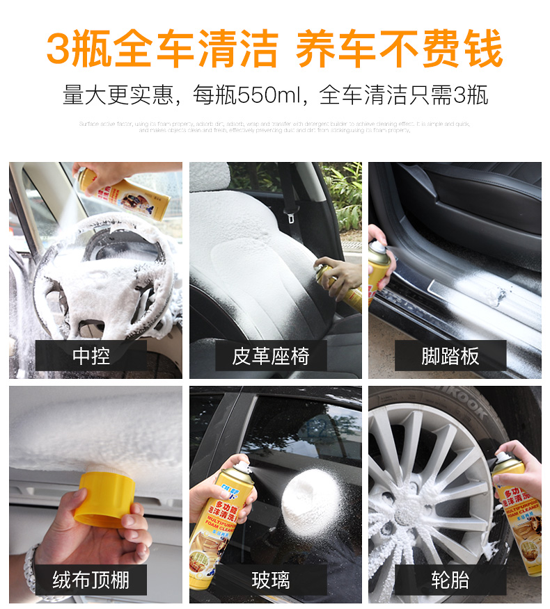 车仆多功能泡沫清洁洗车液皮革顶棚汽车用品内饰清洗剂去污神器