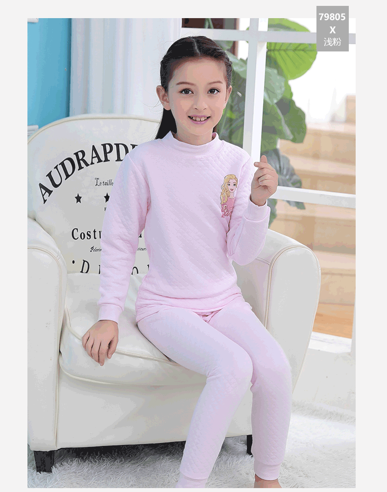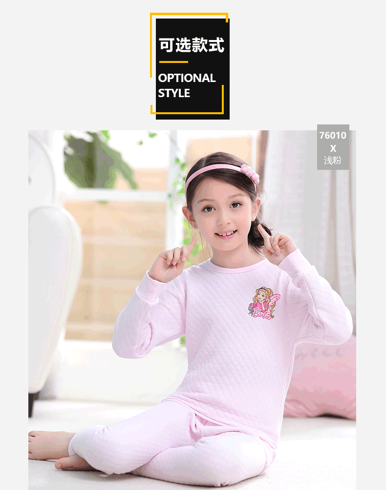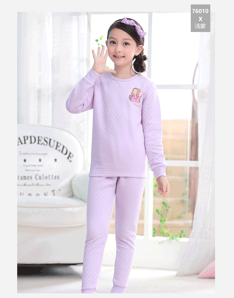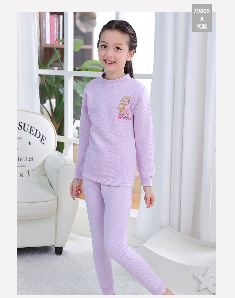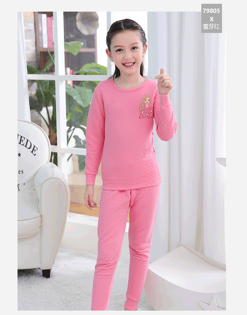 芭比三层保暖内衣,采用健康面料,里层/表面层采用纯棉,圆领设计,方便穿脱,健康印染技术,图案清晰美观,螺纹袖口,有弹力,防风保暖,柔软,舒适,保暖,贴身呵护你的宝贝!赠运费险