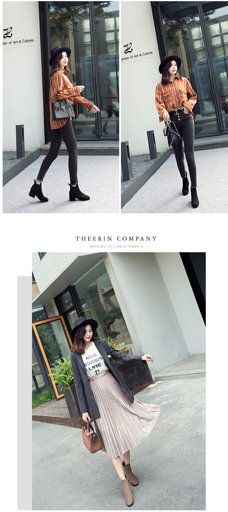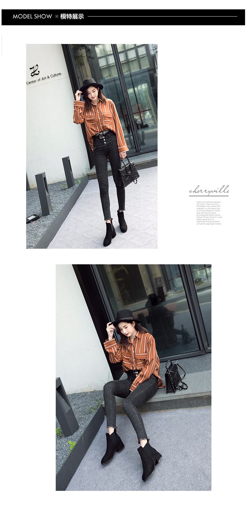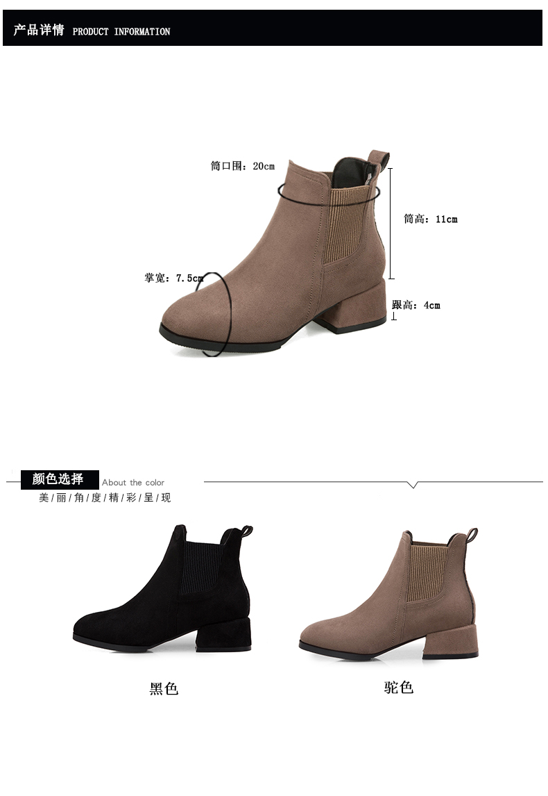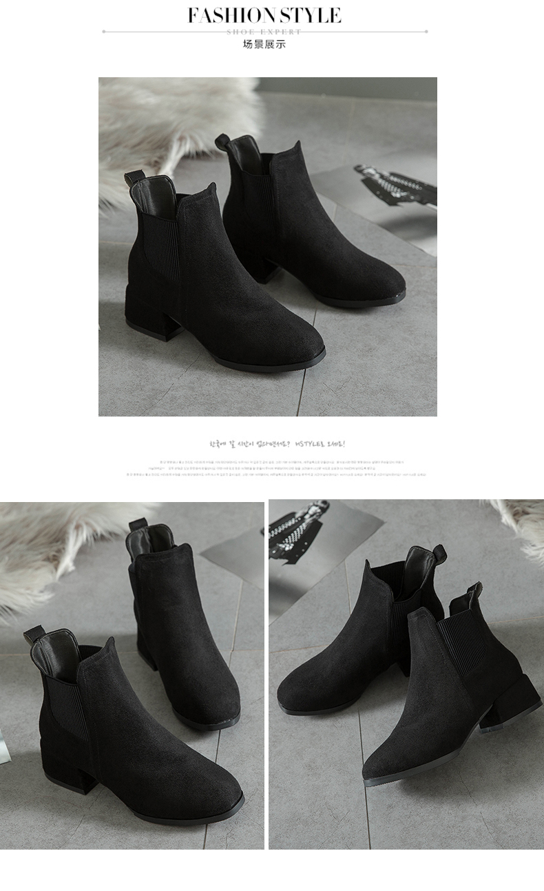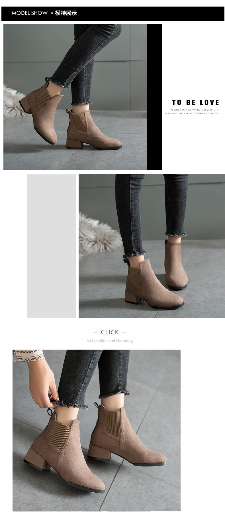 马丁靴女秋冬季2019新款百搭复古英伦风粗跟松紧带加绒切尔西短靴