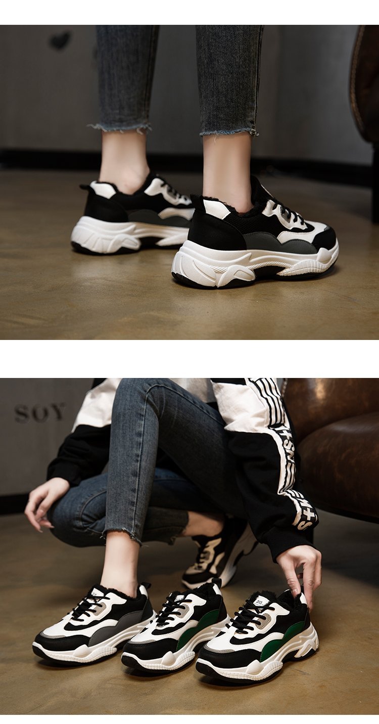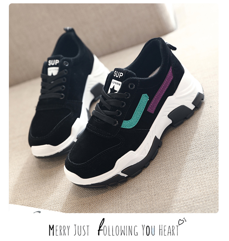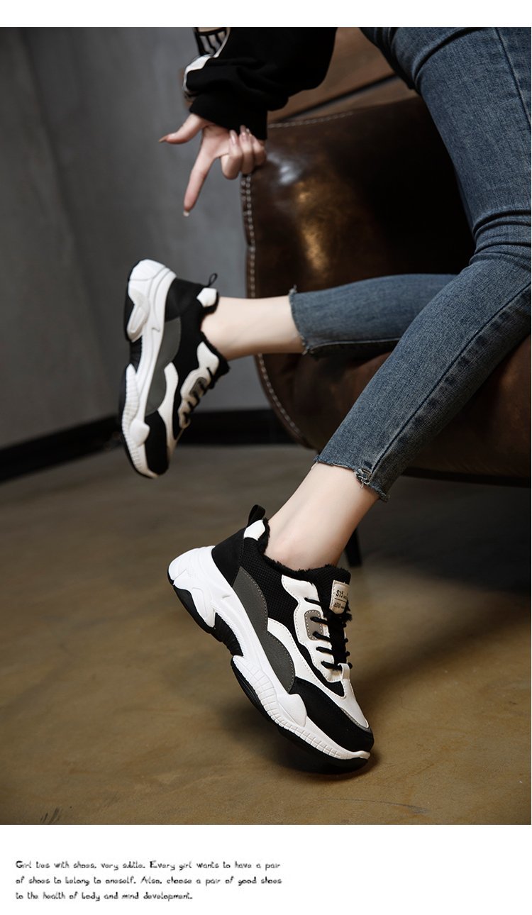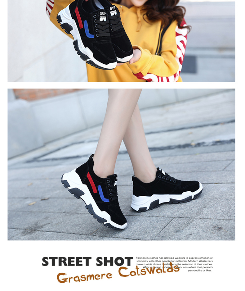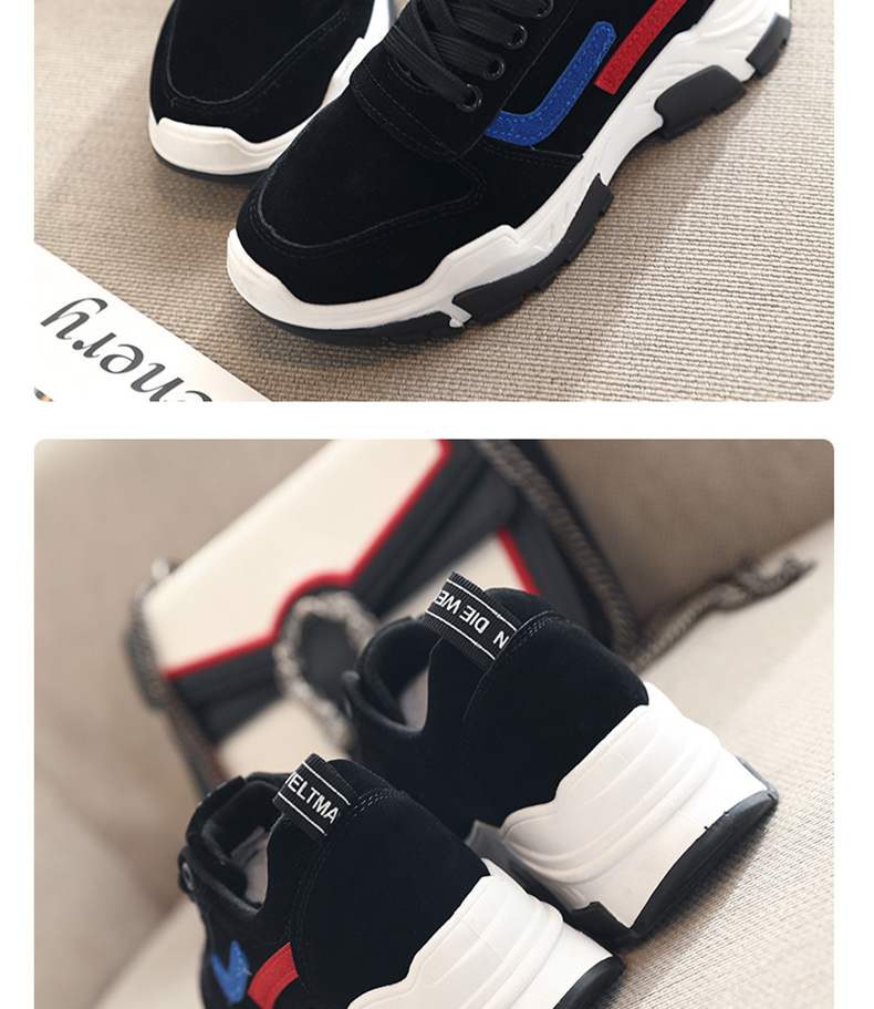 凡麦运动鞋女春秋冬季2019新款韩版百搭黑色系带加绒旅游休闲单鞋