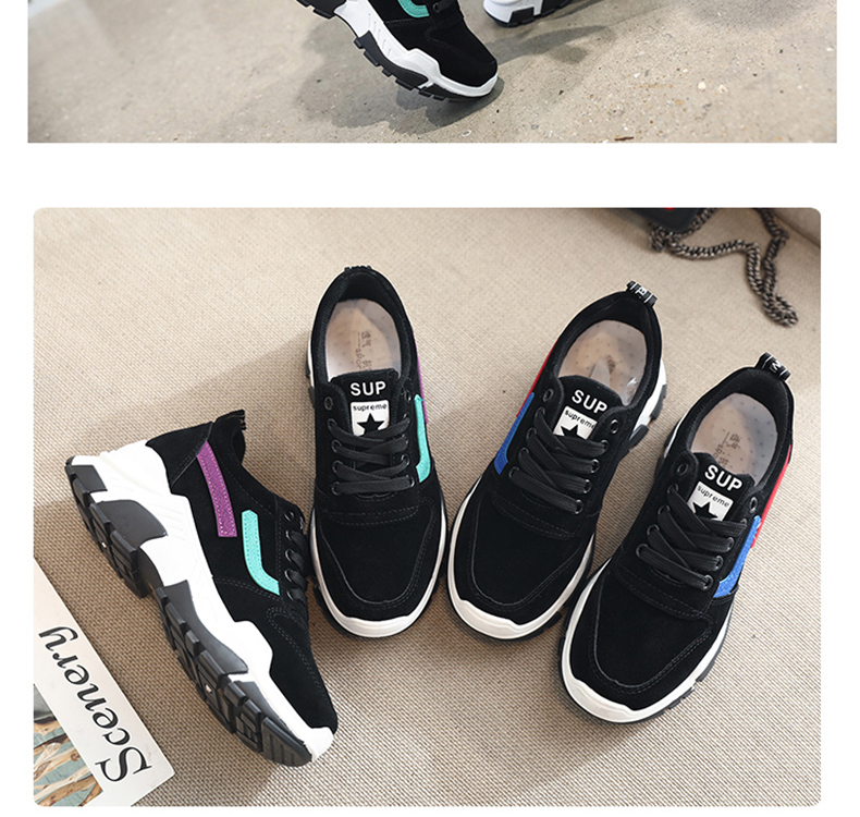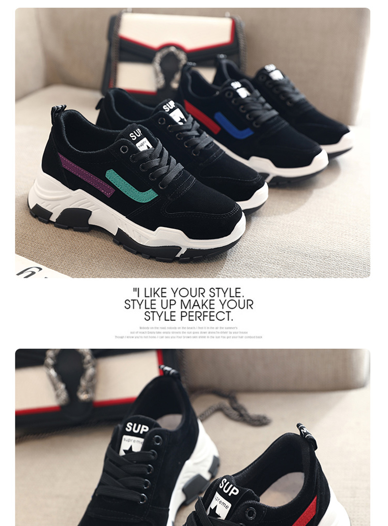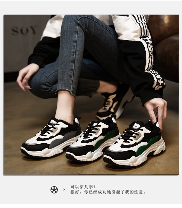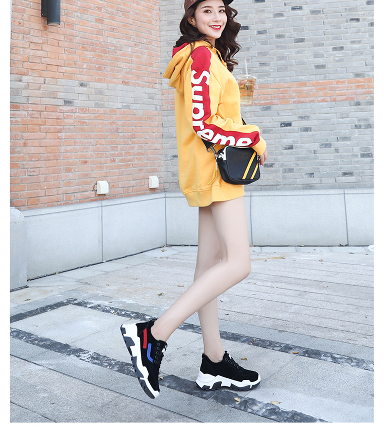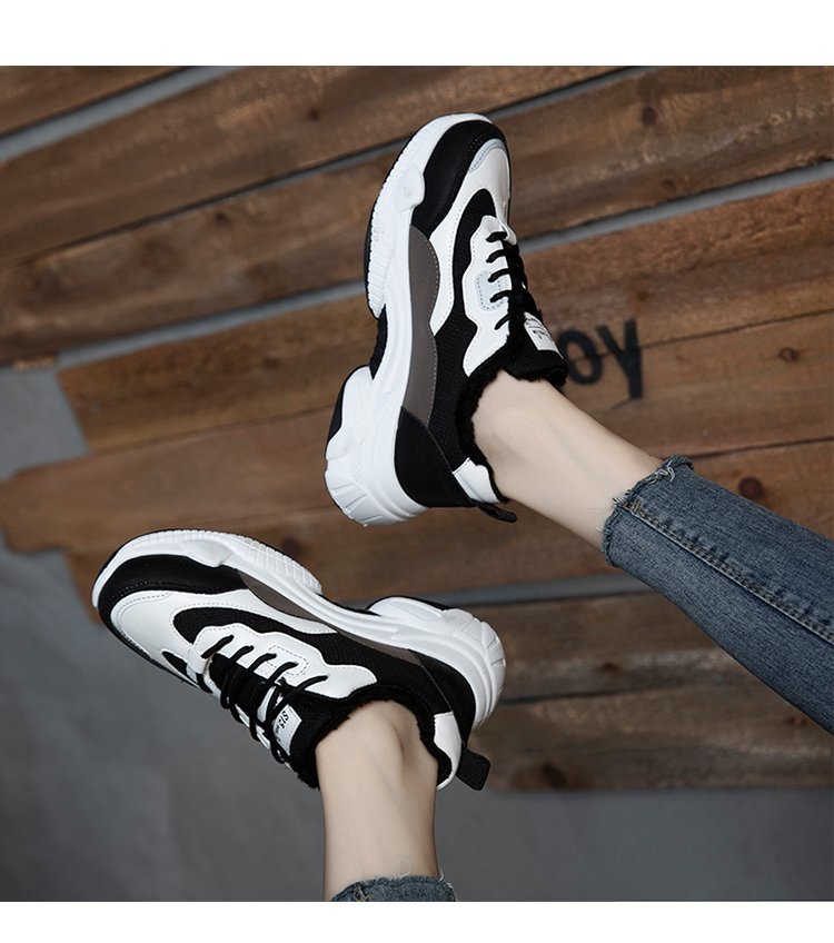 凡麦运动鞋女春秋冬季2019新款韩版百搭黑色系带加绒旅游休闲单鞋