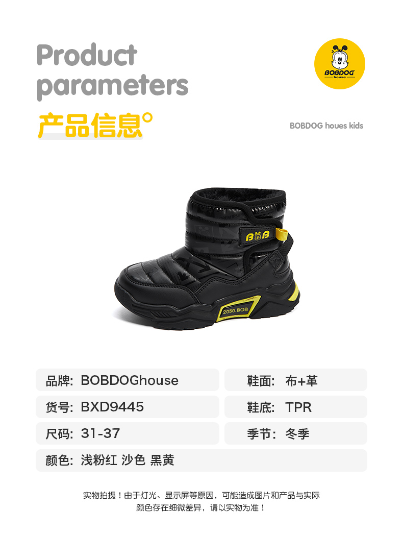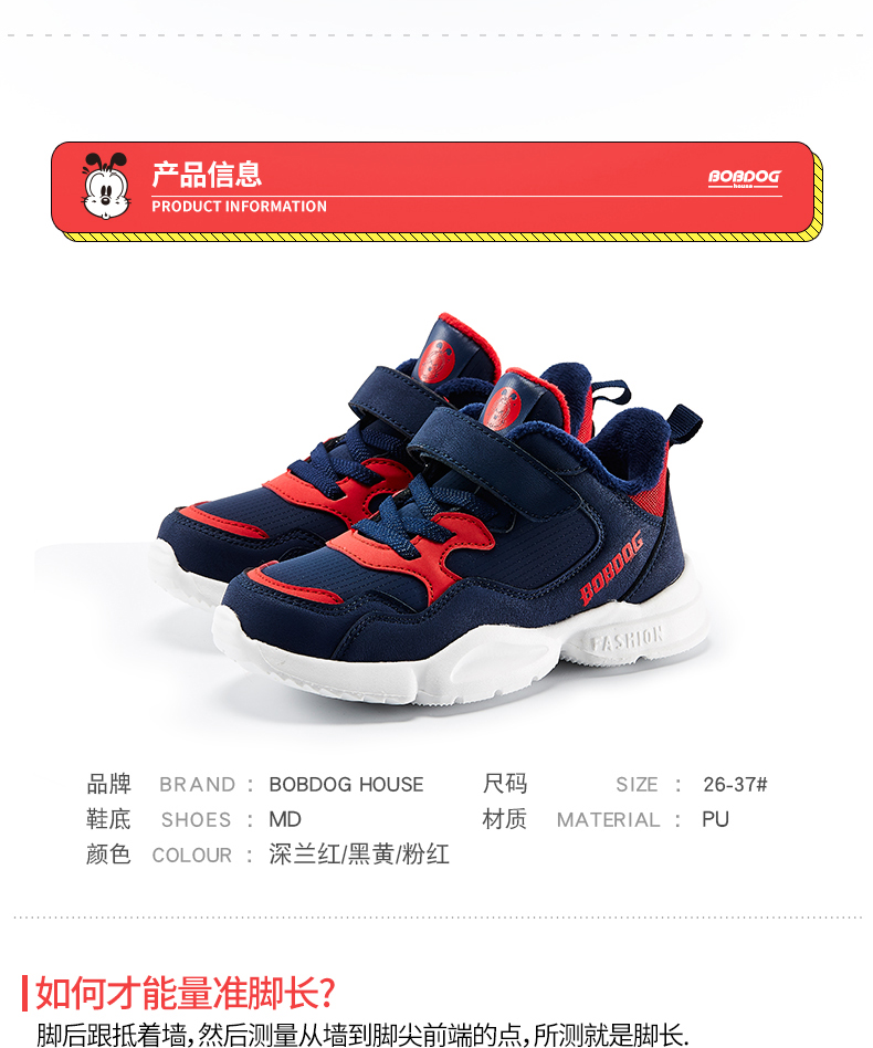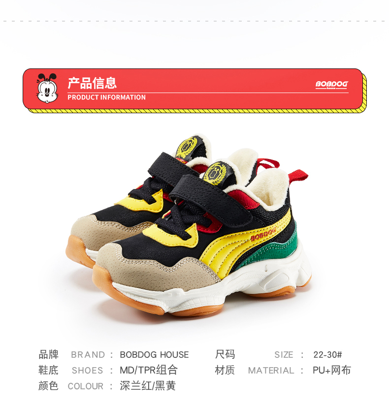巴布豆旗舰童鞋男童儿童运动鞋冬季加绒鞋子女童鞋子老爹鞋二棉鞋