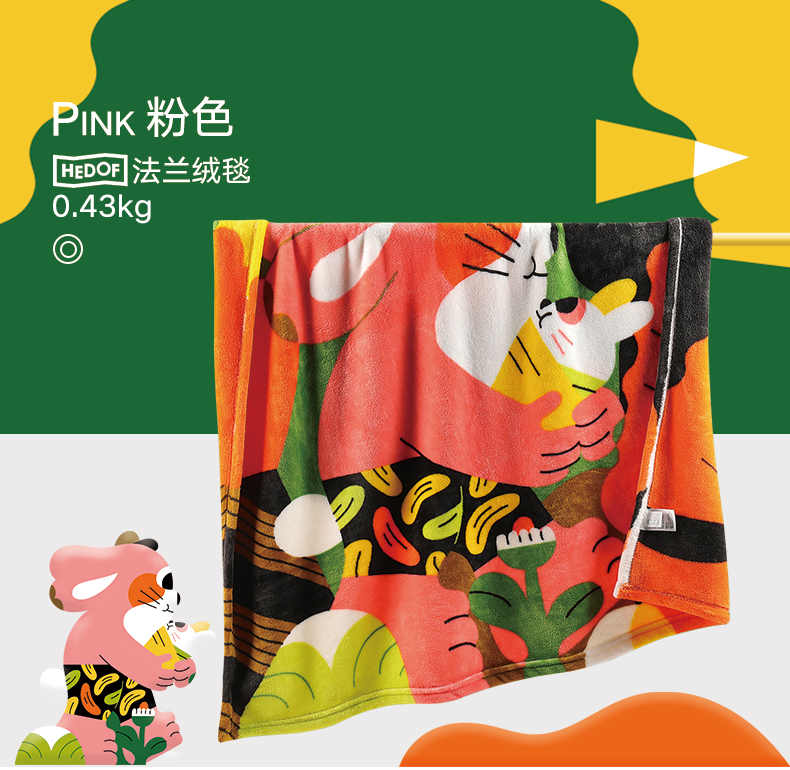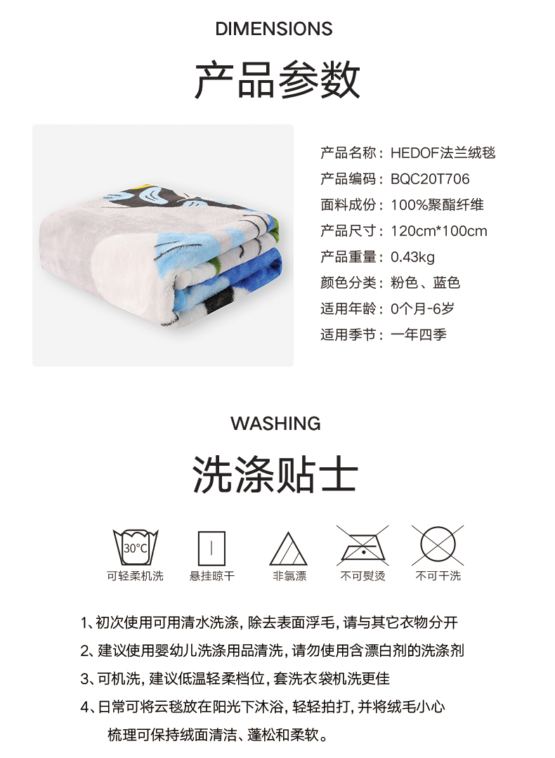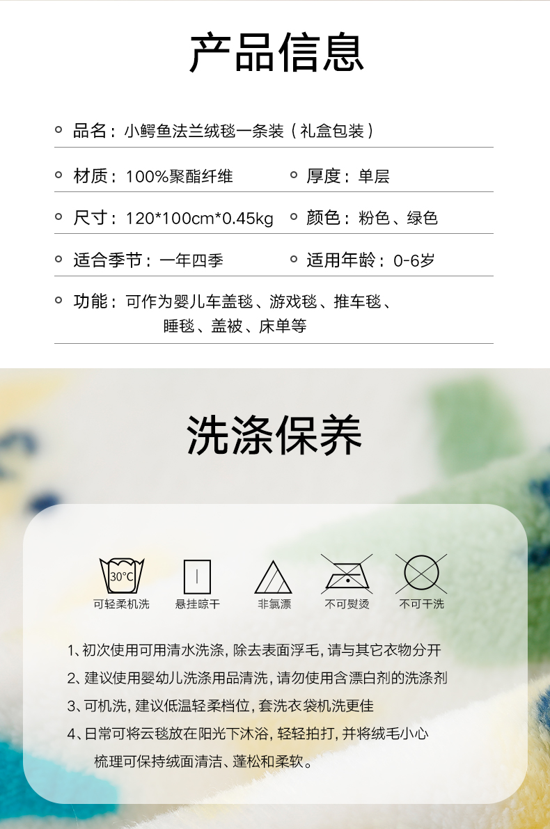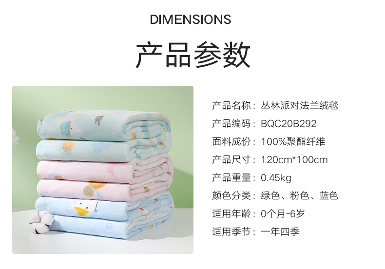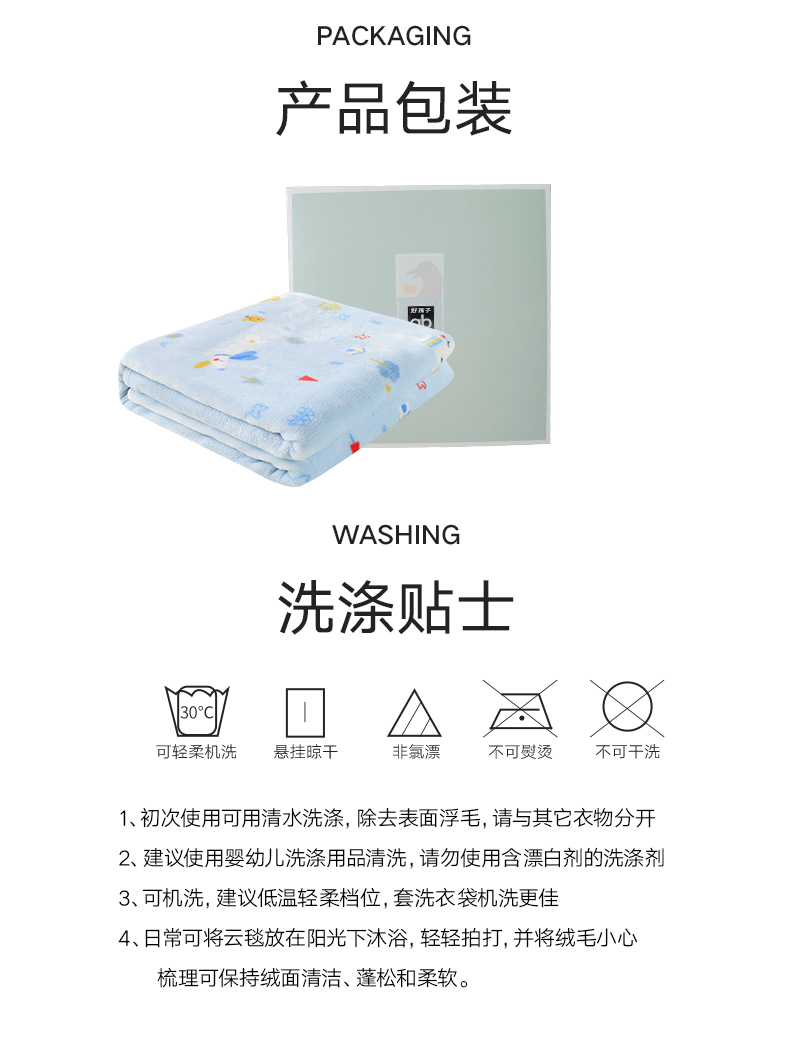 高品质出口绒毯,正反都能盖!婴幼儿适用标准,亲肤不刺激,水洗不掉色不掉毛,柔软透气又保暖,采用导电丝,除静电设计,宝宝使用更安全,妈妈更放心!