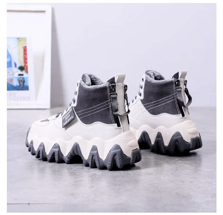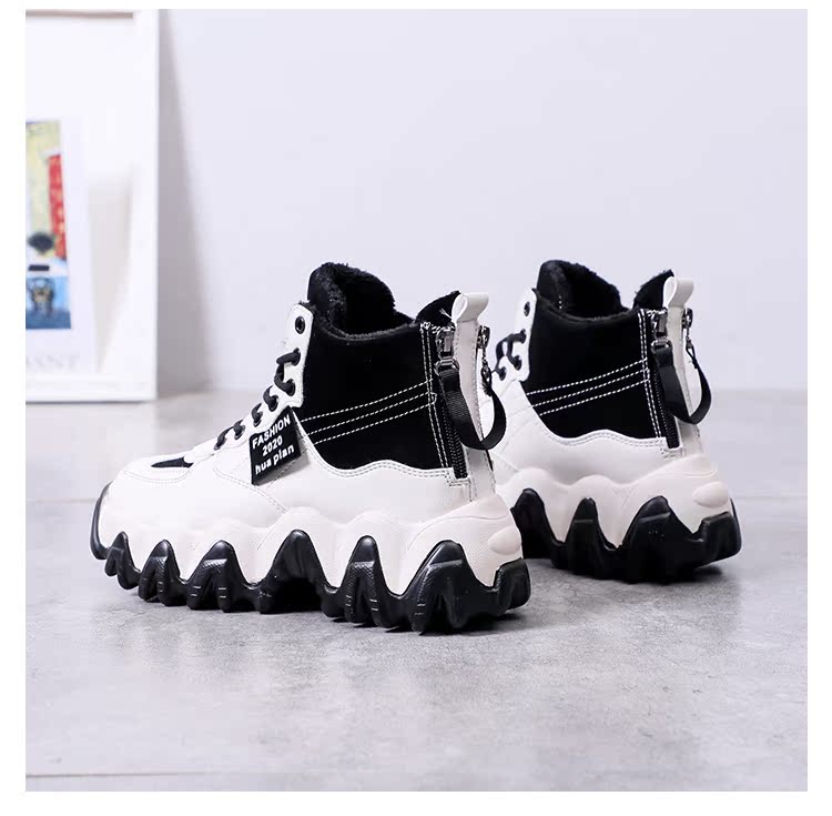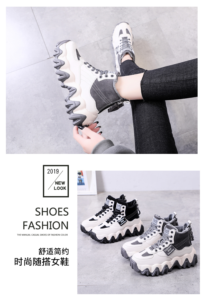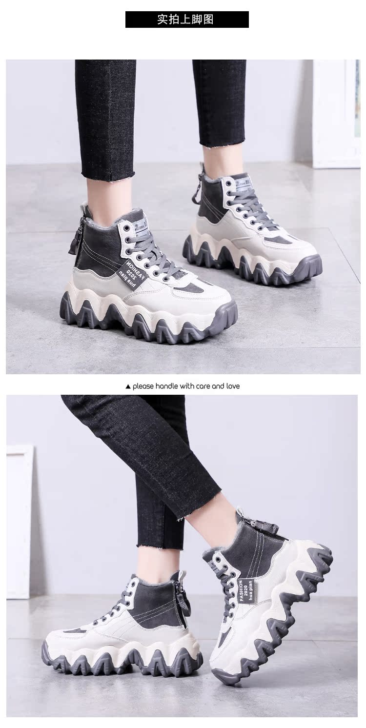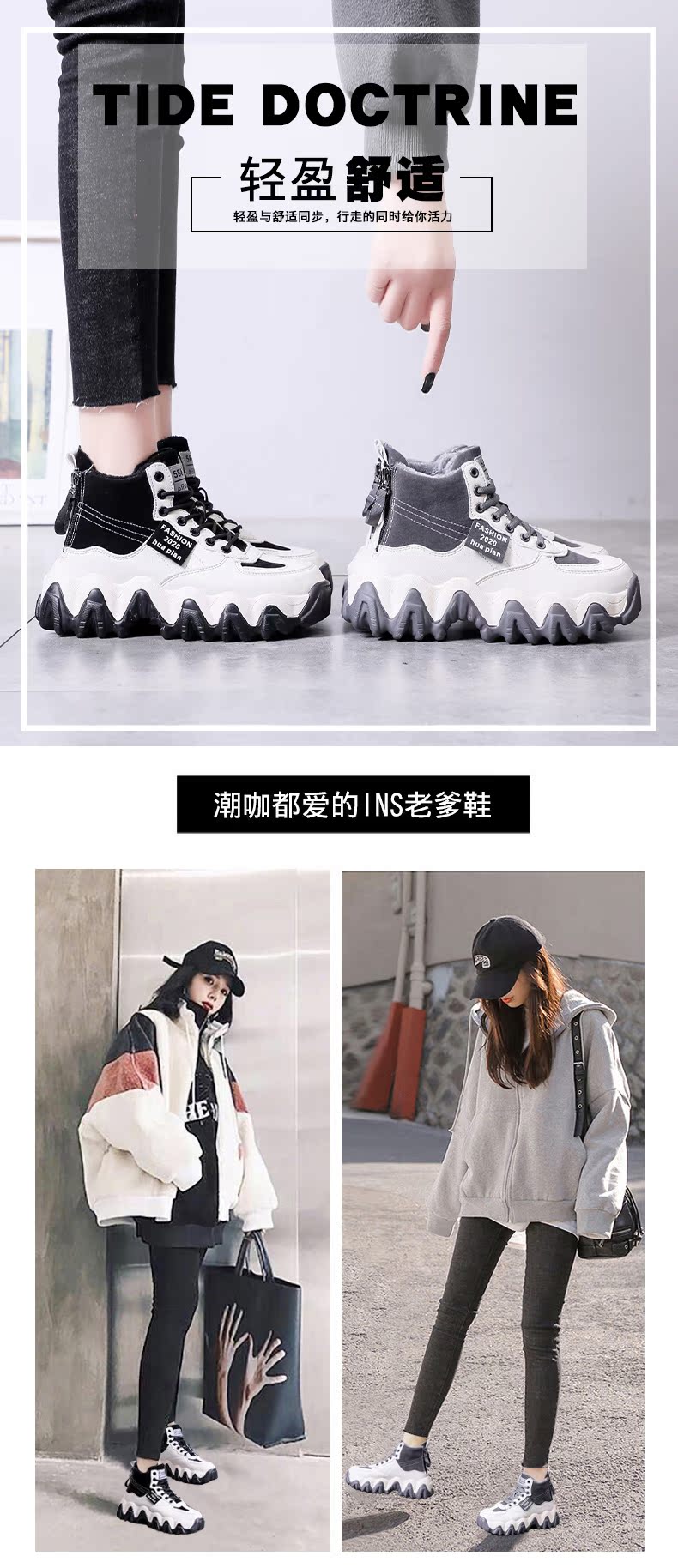 2019秋季新款百搭韩版高帮厚底老爹鞋潮冬季加绒运动休闲时尚女鞋