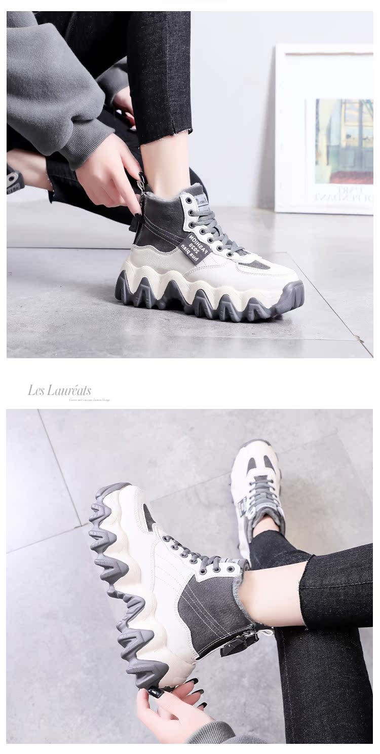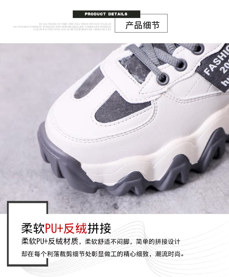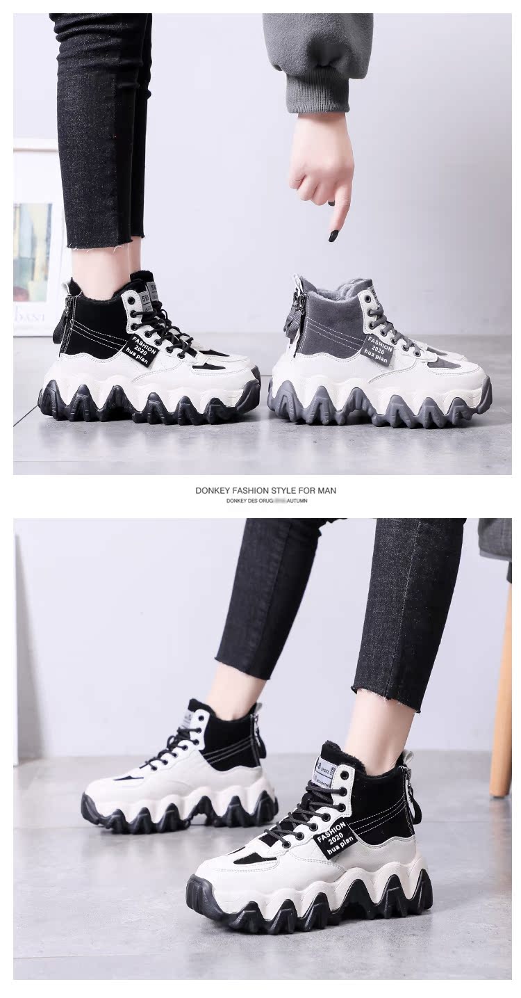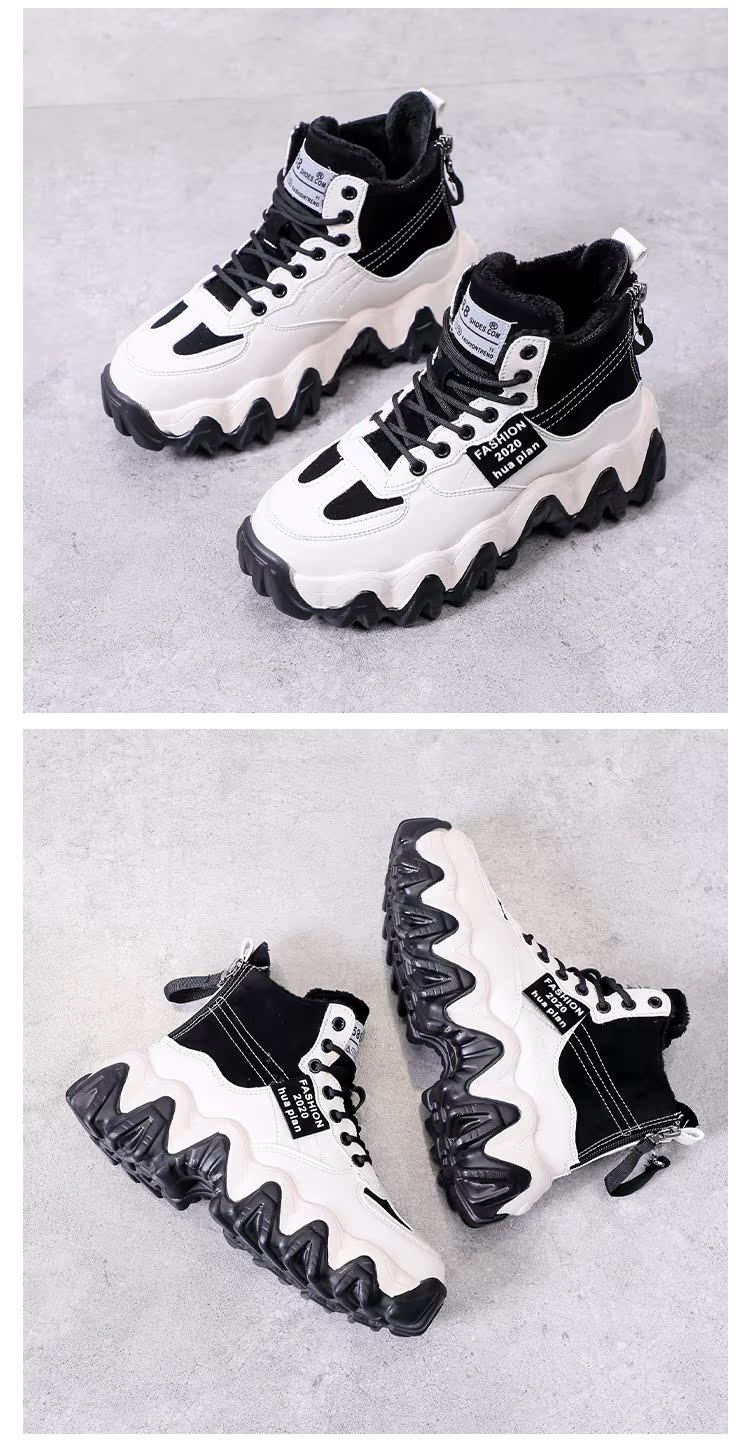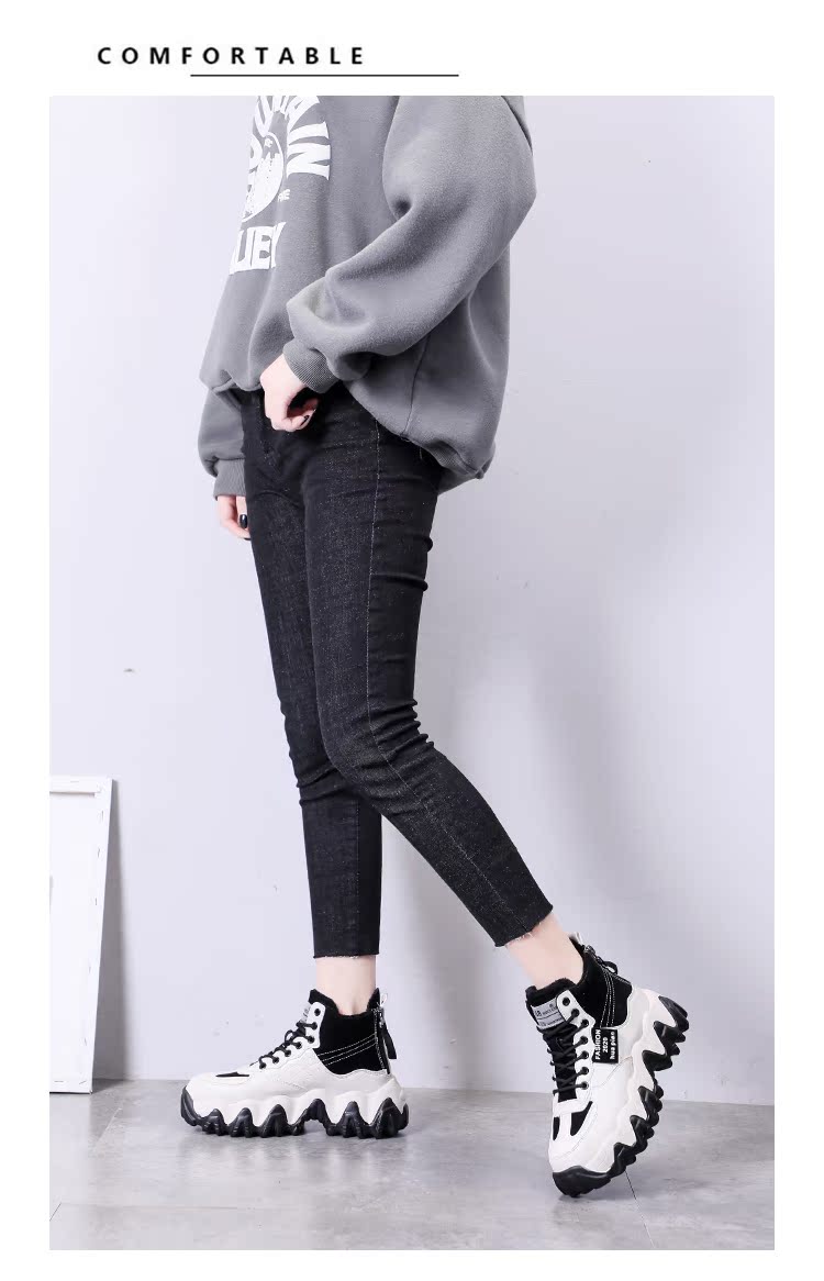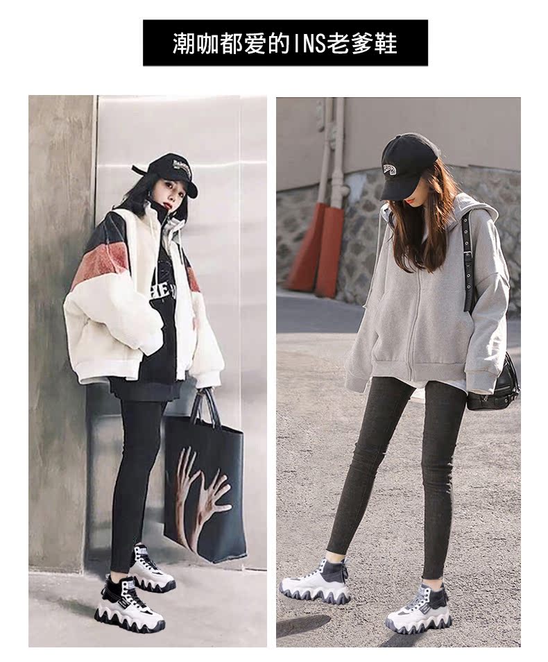 2019秋季新款百搭韩版高帮厚底老爹鞋潮冬季加绒运动休闲时尚女鞋