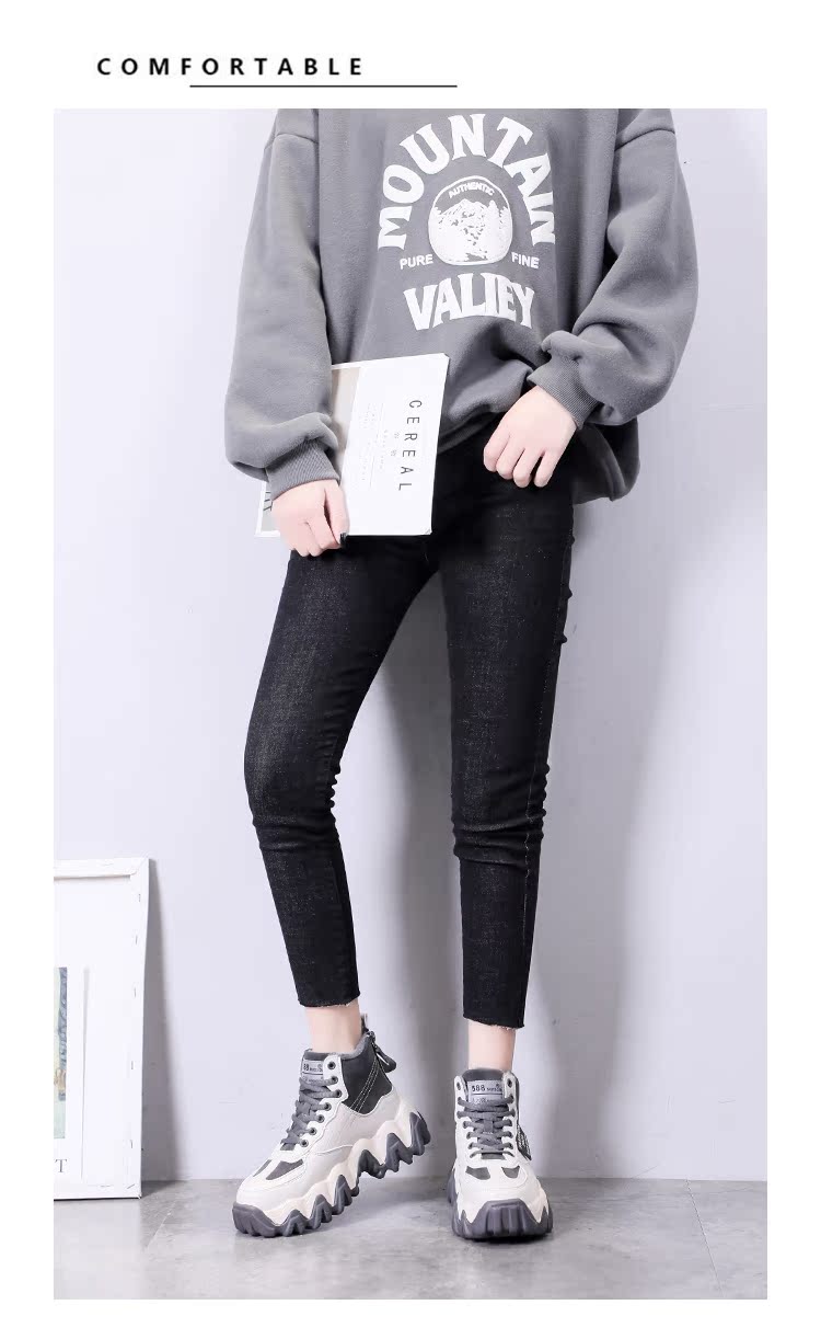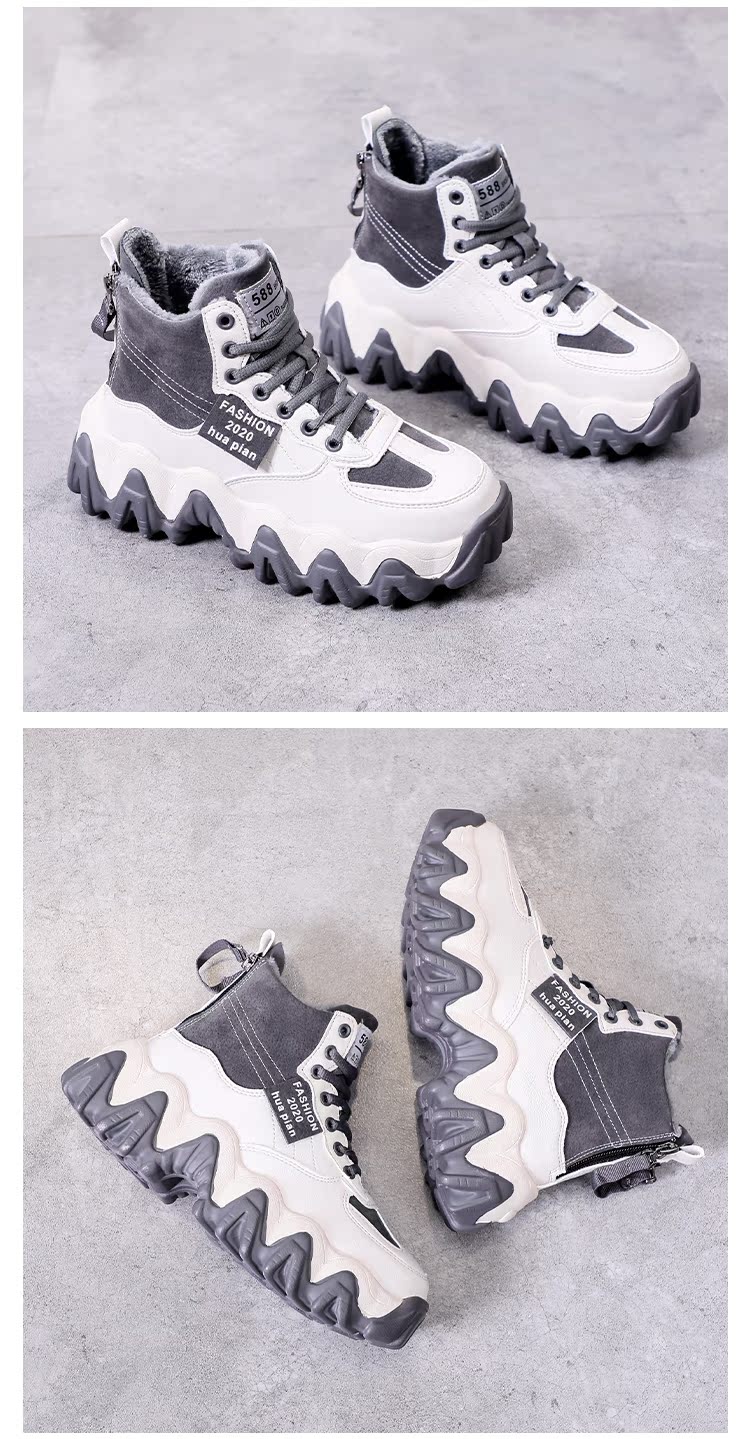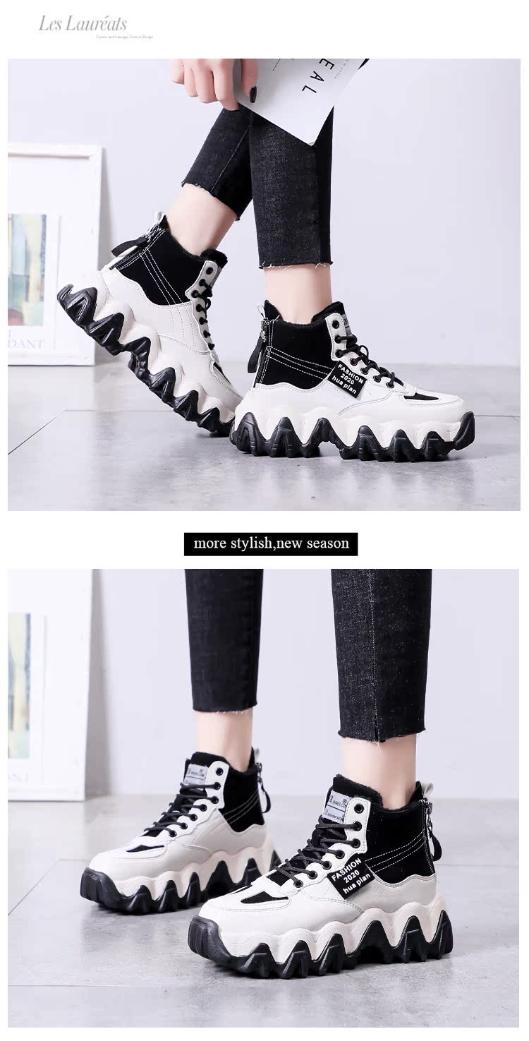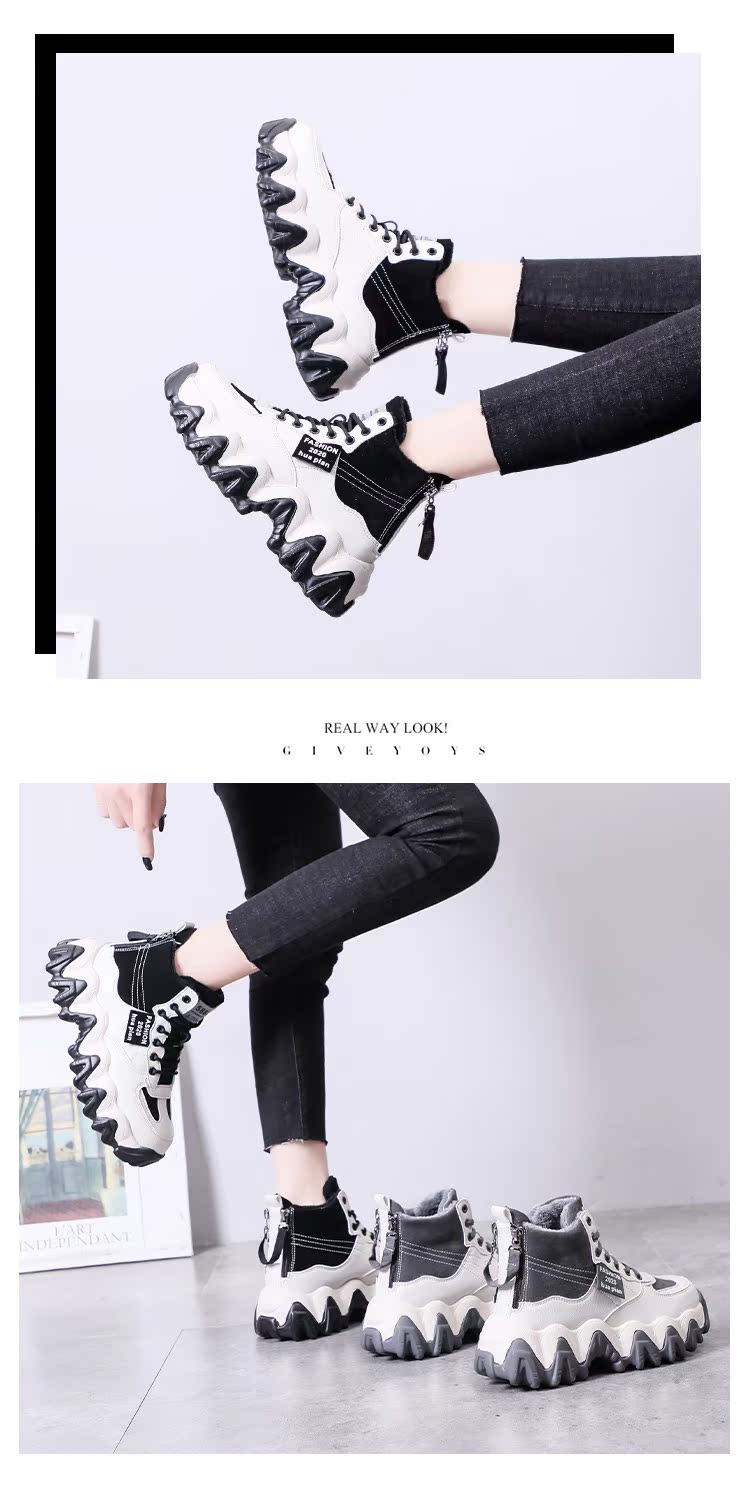 2019秋季新款百搭韩版高帮厚底老爹鞋潮冬季加绒运动休闲时尚女鞋