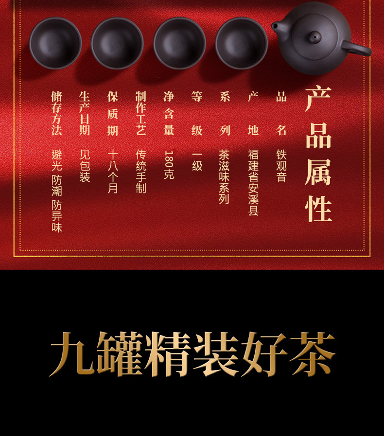 【20*35cm大礼盒】宗安溪铁观音,九罐精装好茶+名器紫砂壶五件套!茶叶质量非常好,汤色明亮,香气四溢!包装精美,送礼送礼不掉面!!