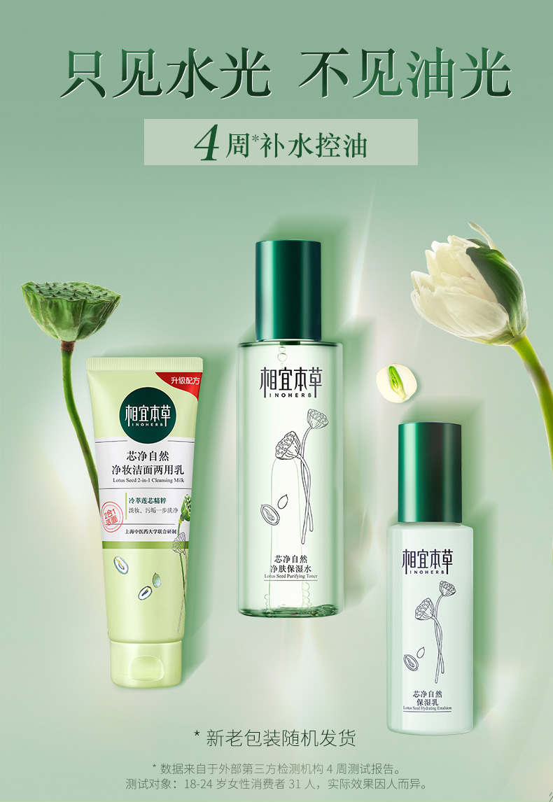 本草护肤专家,萃取莲心精华结合多种营养成分,控油护肤高倍保湿,敏感肌肤可用,包含洗水乳3件礼盒,超值哦
