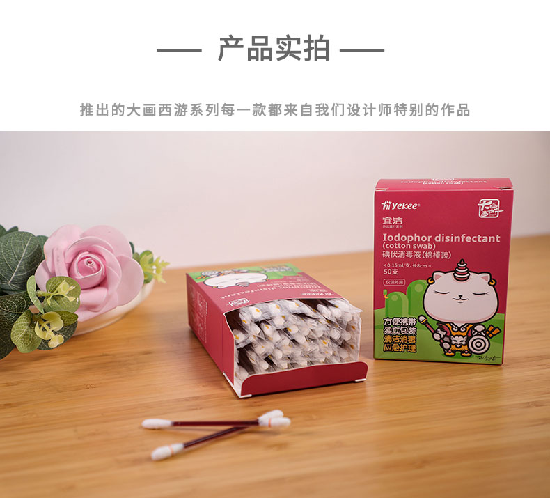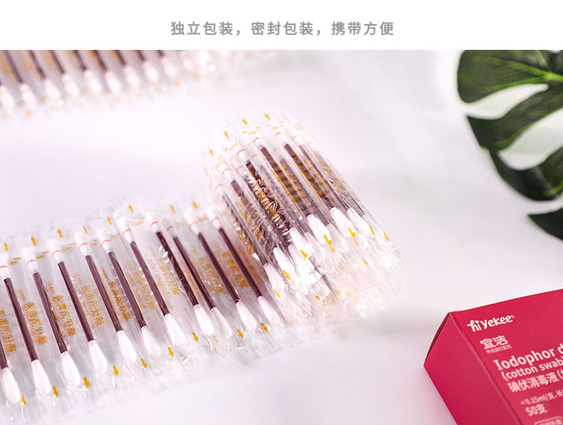 宜洁碘伏棉棒便捷家用棉签酒精消毒液一次性酒精棉球婴儿肚脐棉球