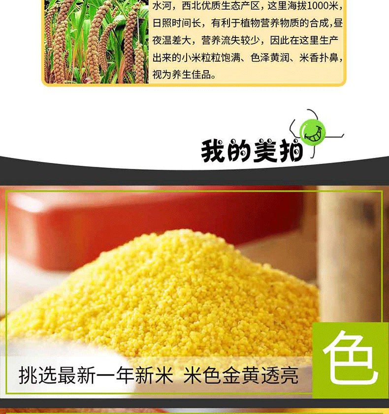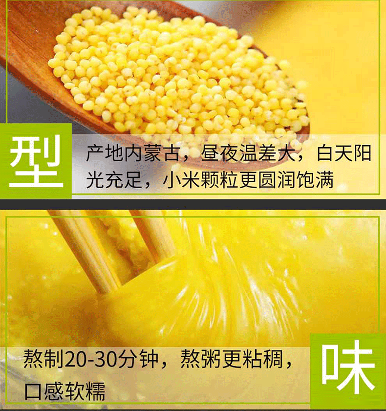 原产地原生态,石碾脱壳小米,有机种植加工,色泽金黄,颗粒饱满,香软甜糯,营养丰富,健康养脾,久熬出米油,入口清甜~一碗小米粥,养出全家人的好胃~