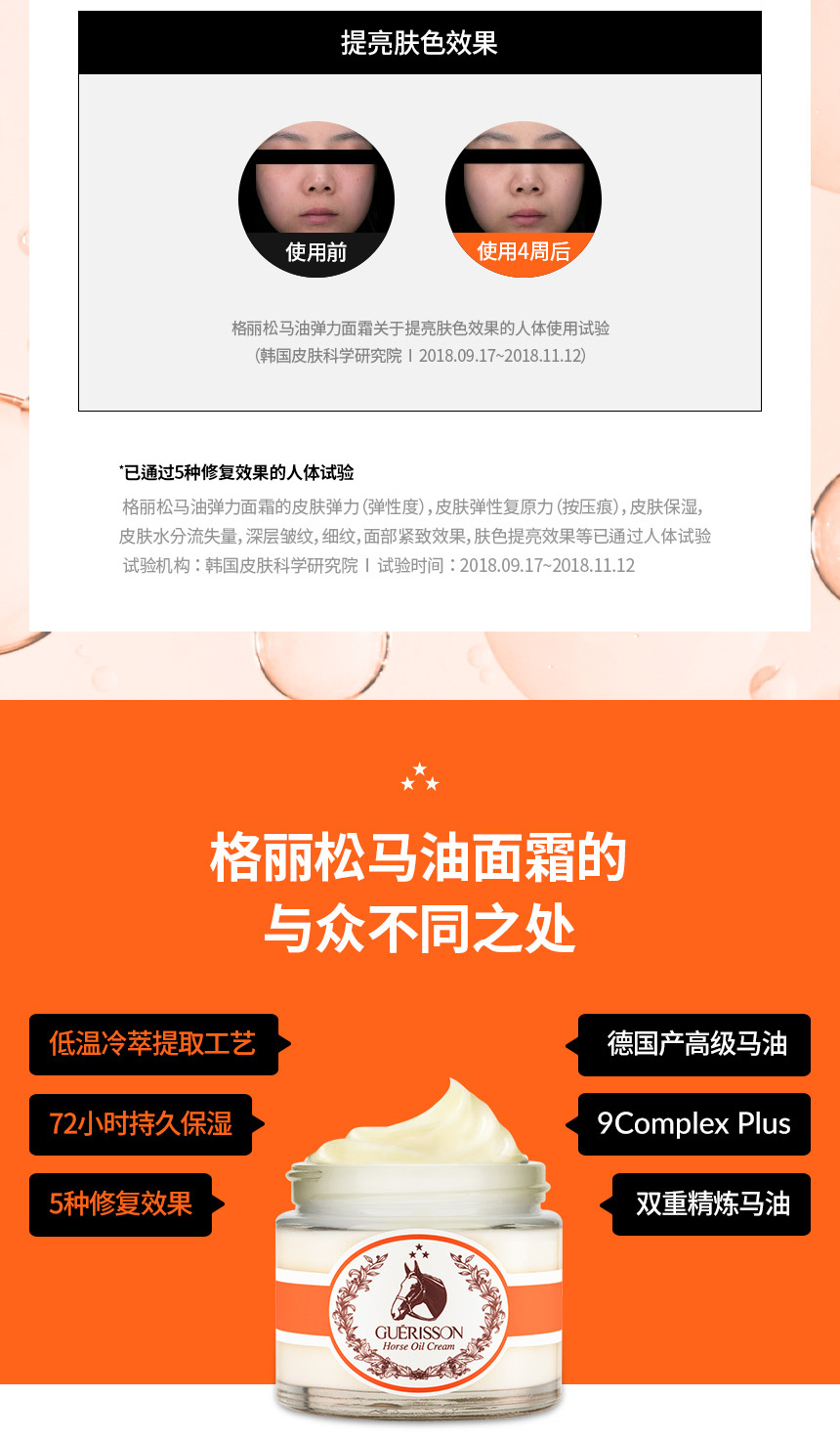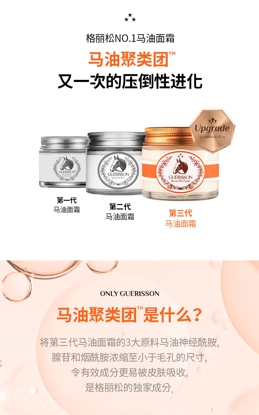 韩国正品格丽松九朵云马油弹性面霜祛斑紧致美白保湿修护素颜霜