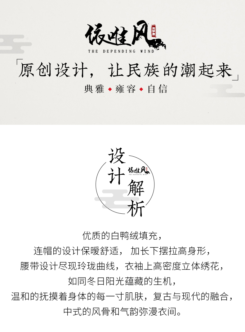 原创设计中国风,精工刺绣新国潮!优质白鸭绒,分隔充绒不跑绒,顺丰包邮,不满意包退!