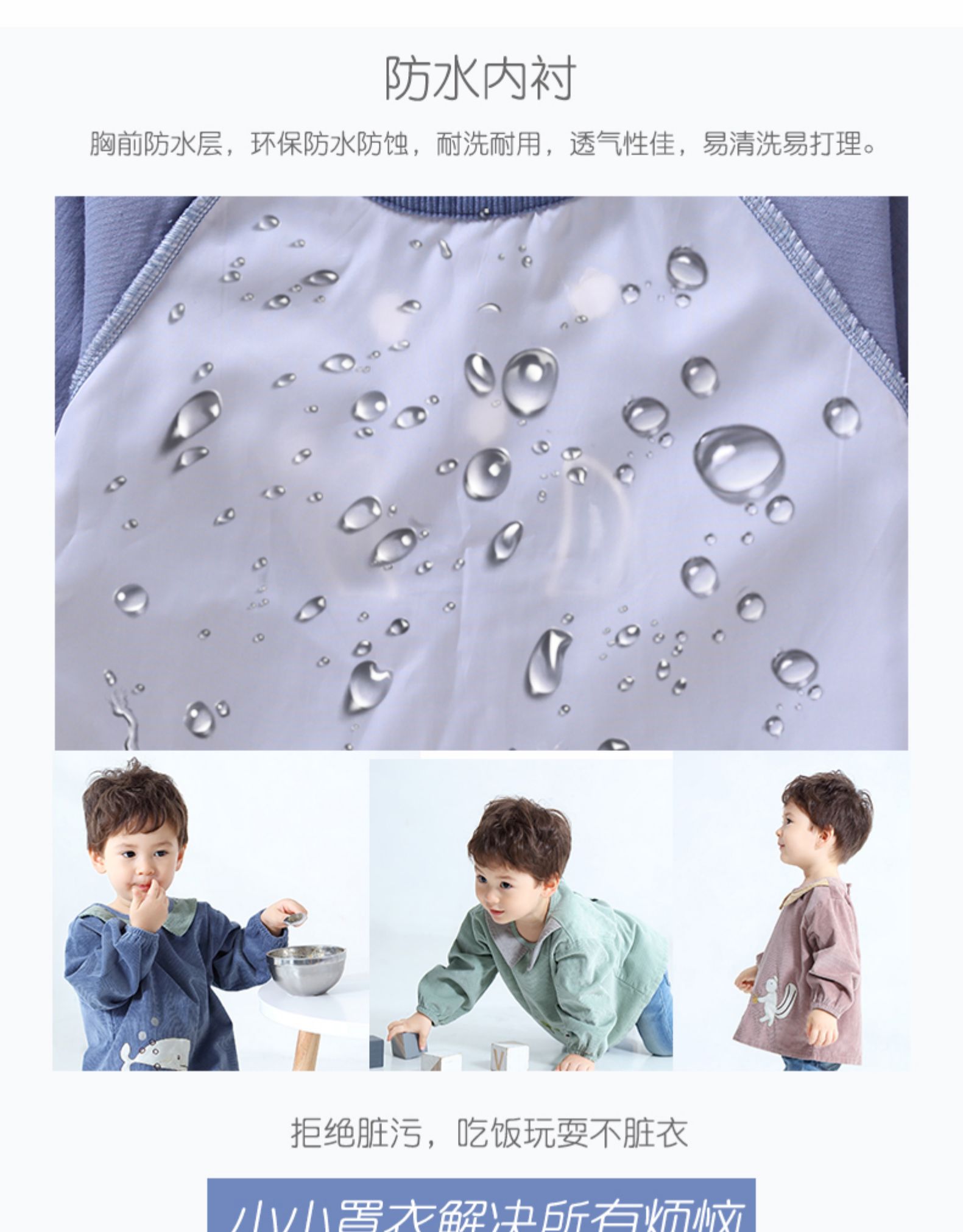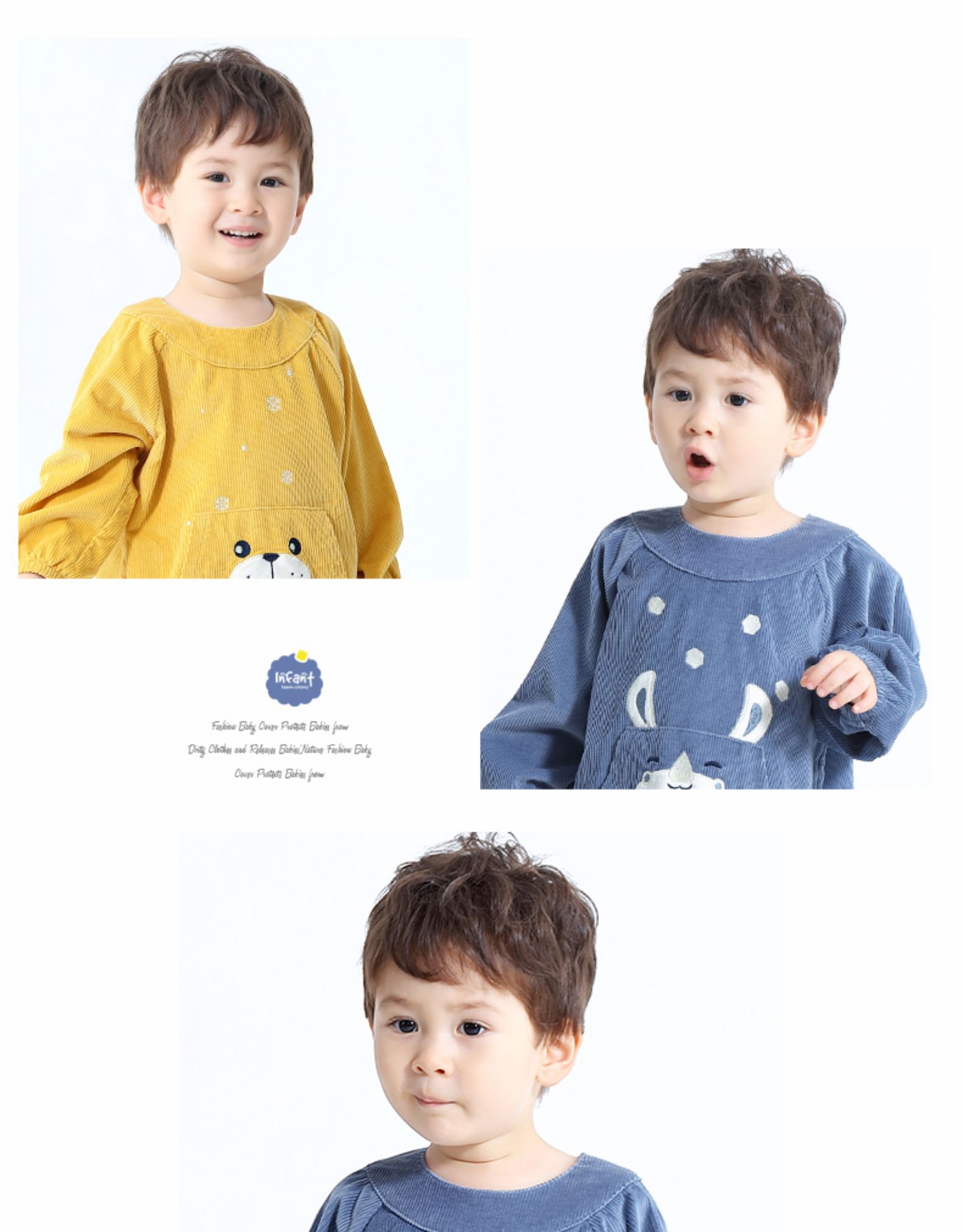 【拿券进店随便挑!就这一波!卖完没有!买两件送套袖】长袖灯芯绒罩衣,A类品质,防水透气,柔软舒适,易洗耐脏,亲肤舒爽,做工精细,环保印染,安全不掉色,松紧袖口,不走形,宝宝必备罩衣。
