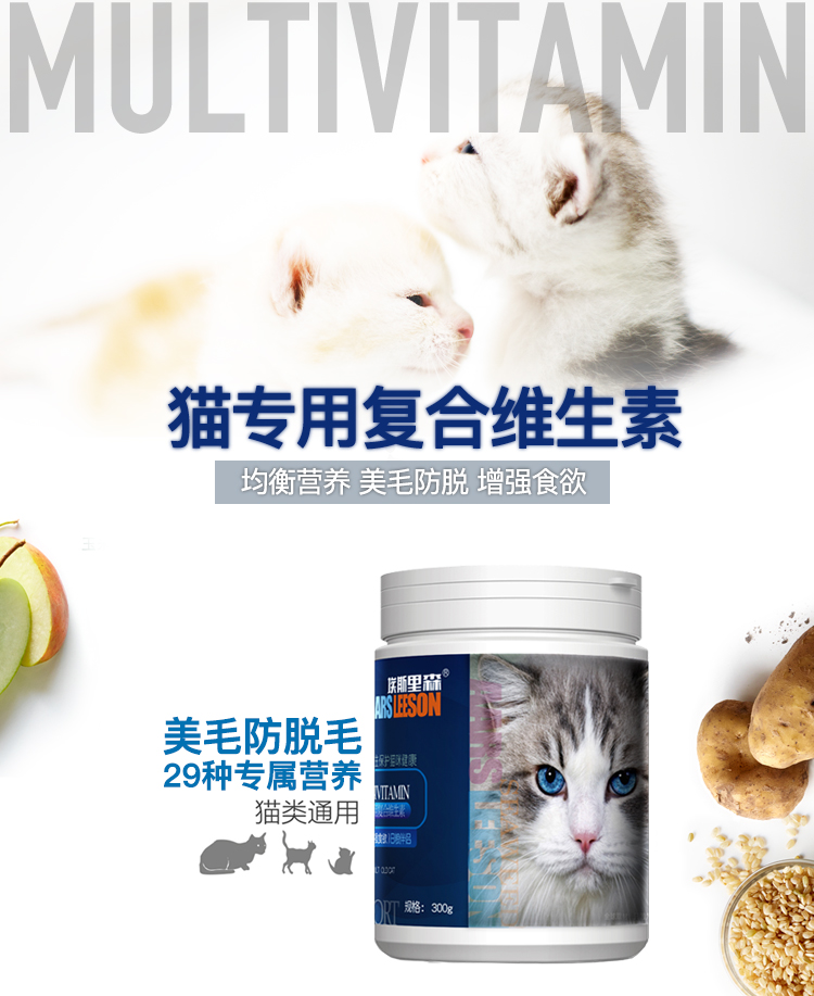 猫专用符合维生素,均衡营养,美毛防脱,增强食欲,新鲜蔬菜提取,来自天然的营养馈赠。