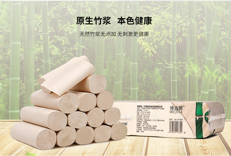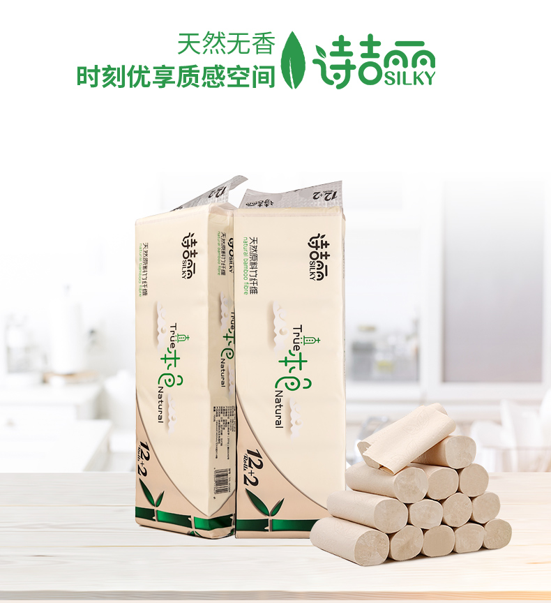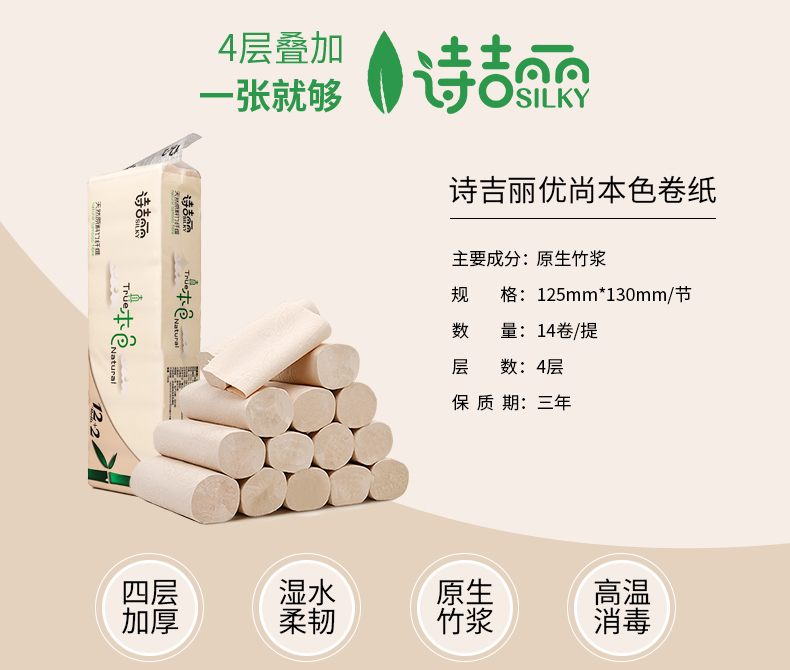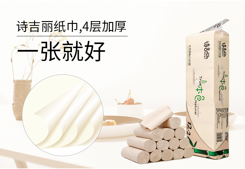 诗吉丽4层加厚特惠装优尚原生浆本色卷纸28卷-2提餐巾纸卫生纸
