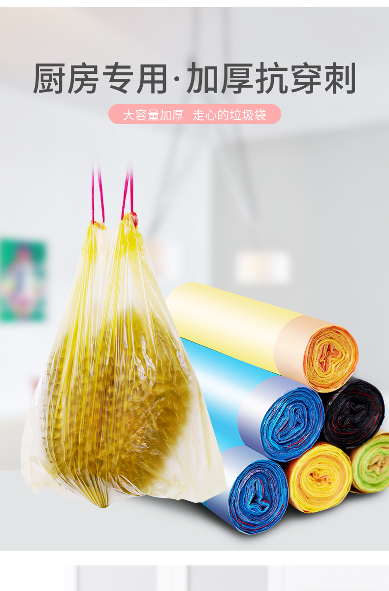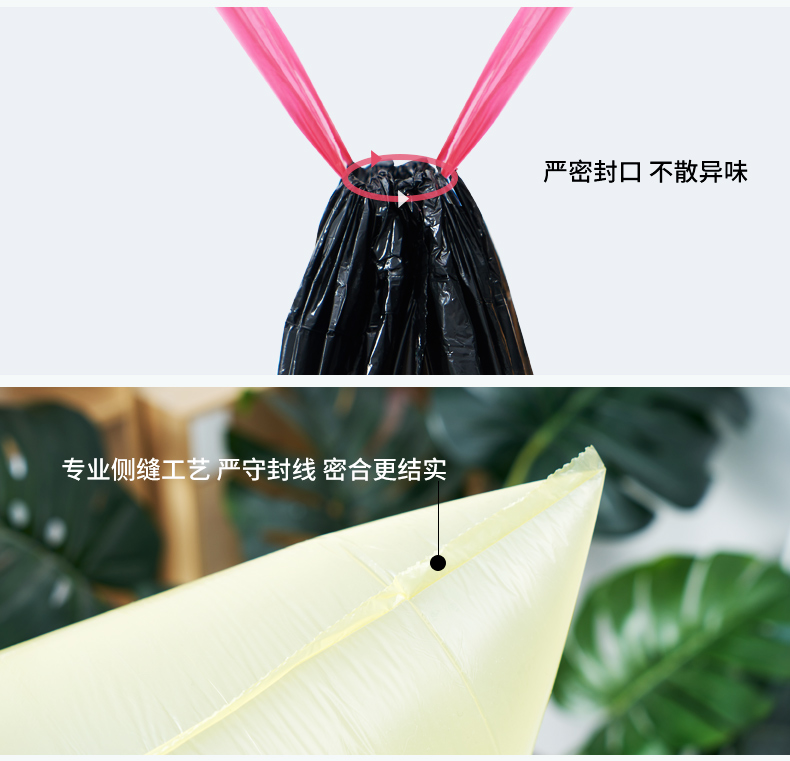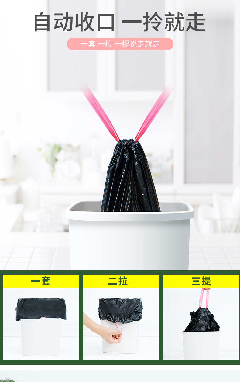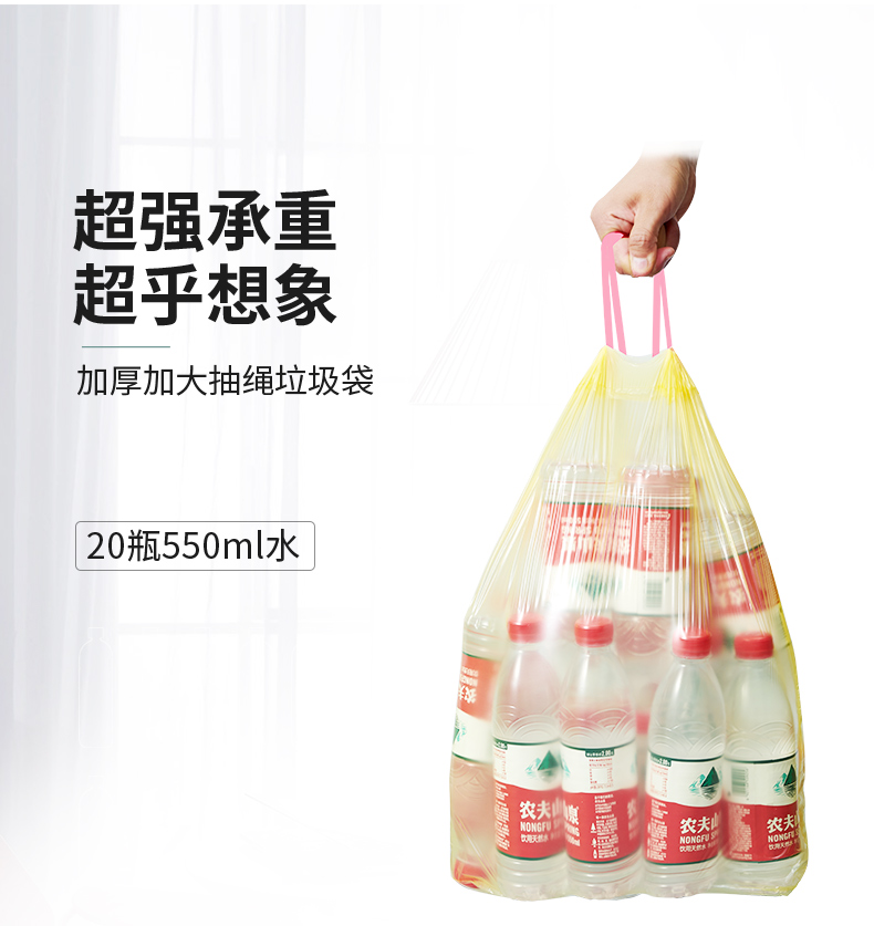 自动收口一套一拉一提省时省力,大容量加厚,超强承重超乎想象,耐高温,抗穿刺,全新用料无异味,进口PE新料品质不将就!~