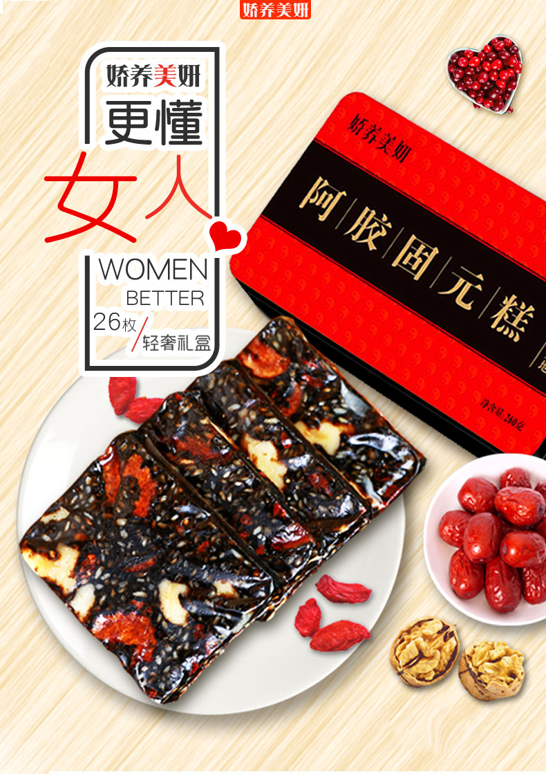 【娇养美妍旗舰店铁盒装,拍两盒39.9】气血双补,美容养颜,还能吃出好睡眠,独立小包装,食用方便卫生,送礼自己吃都超划算,真材实料,阿胶强大的功效都知道,常吃气色真的好,打多少针都赶不上~