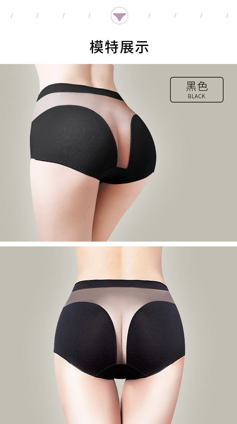 美臀性感诱惑女士内裤纯棉裆收腹透气网纱薄款大码中高腰塑形提臀
