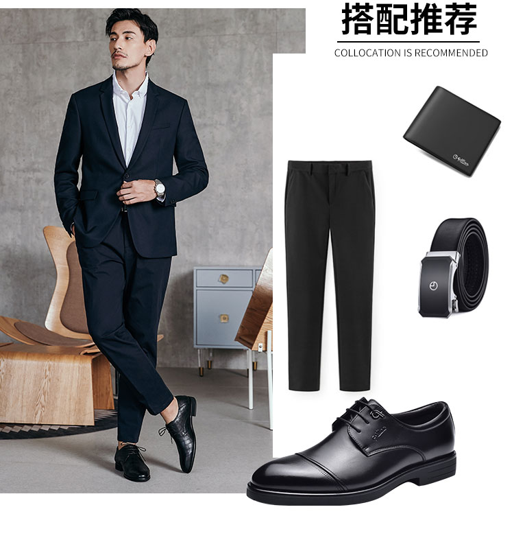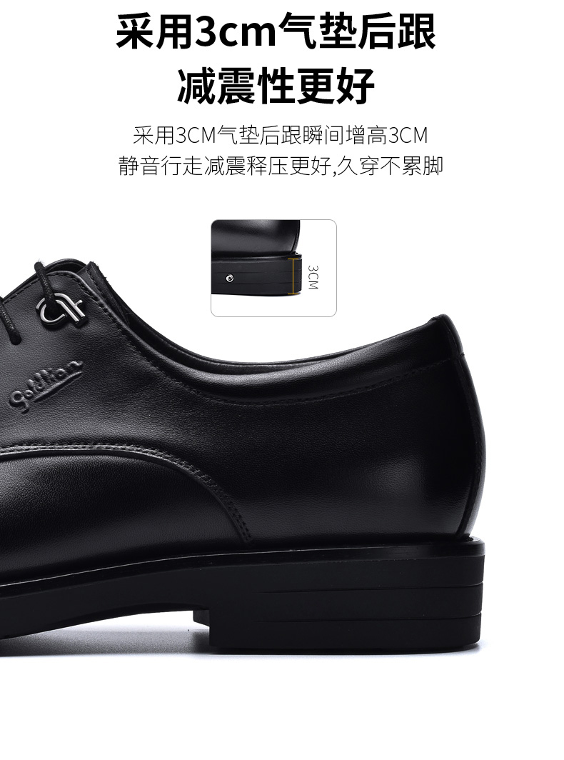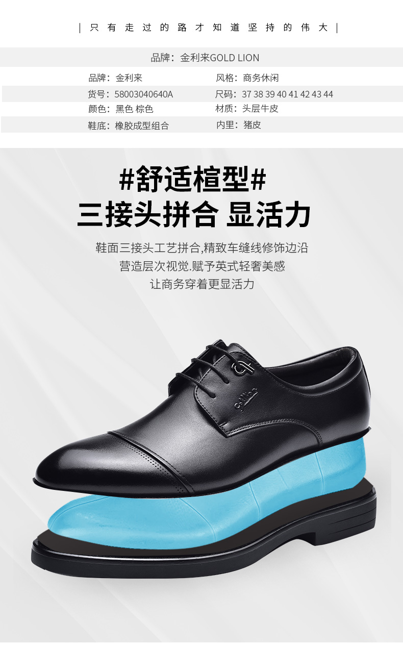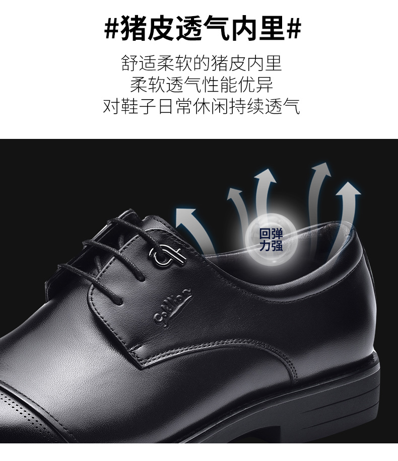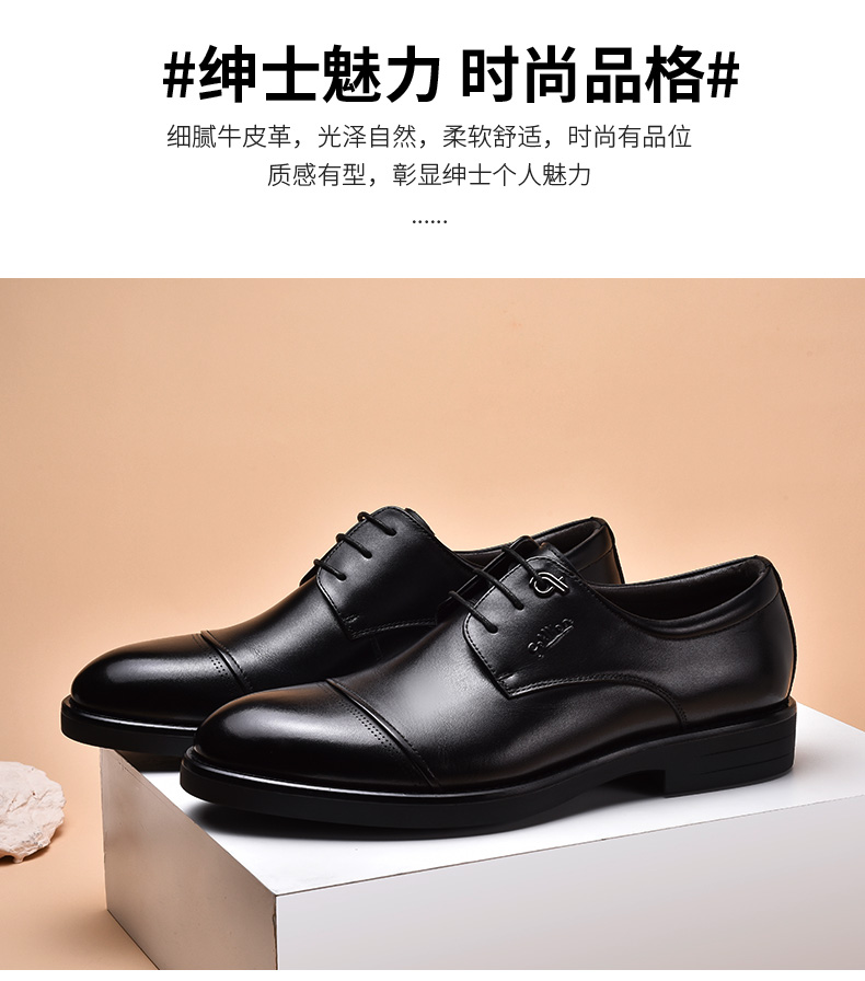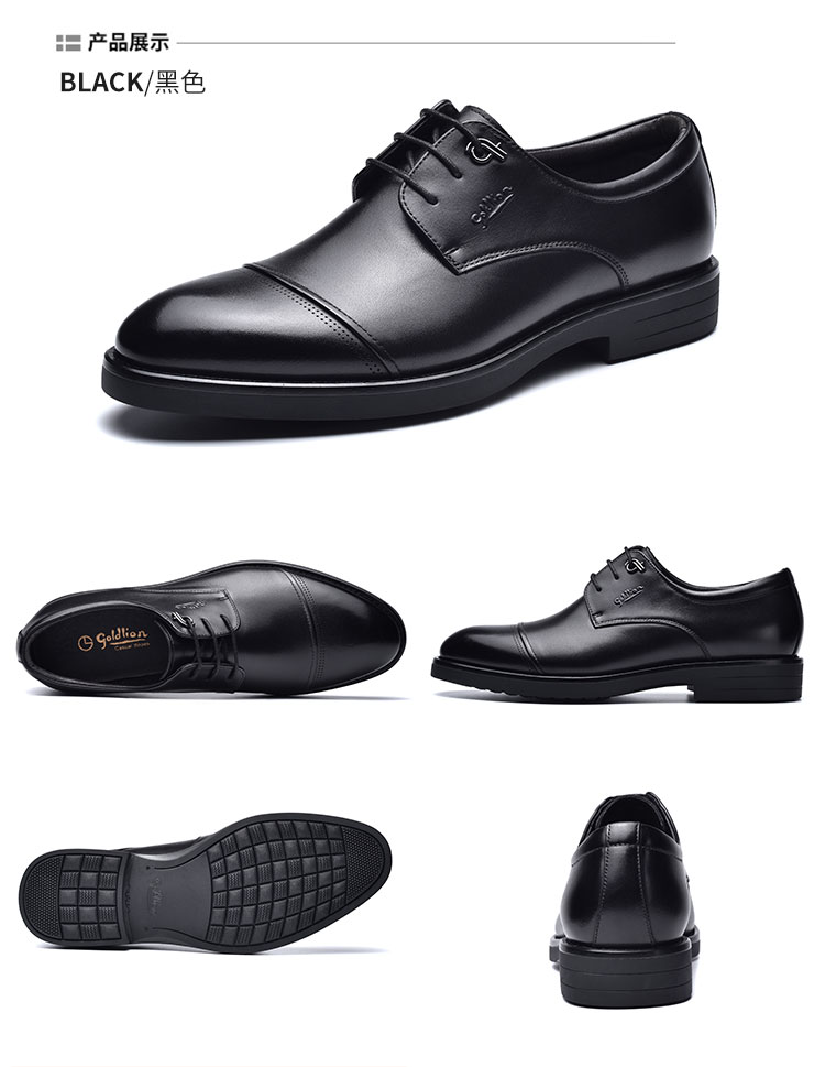 金利来皮鞋男士三接头加绒商务正装黑色真皮婚鞋软底英伦男军鞋