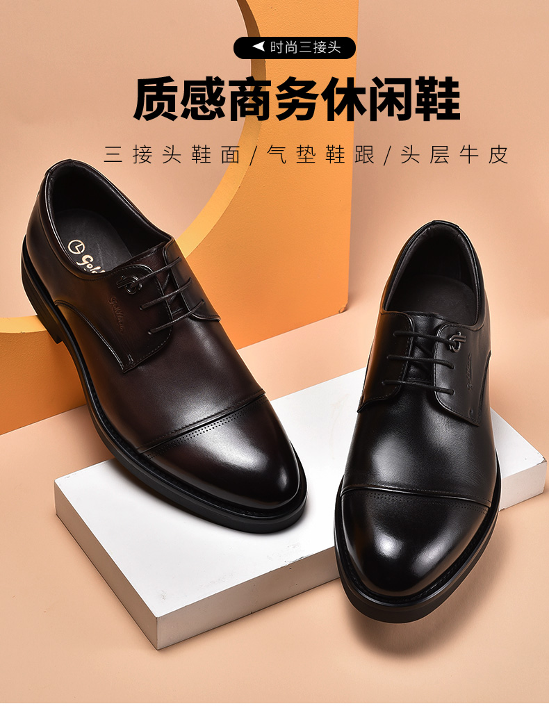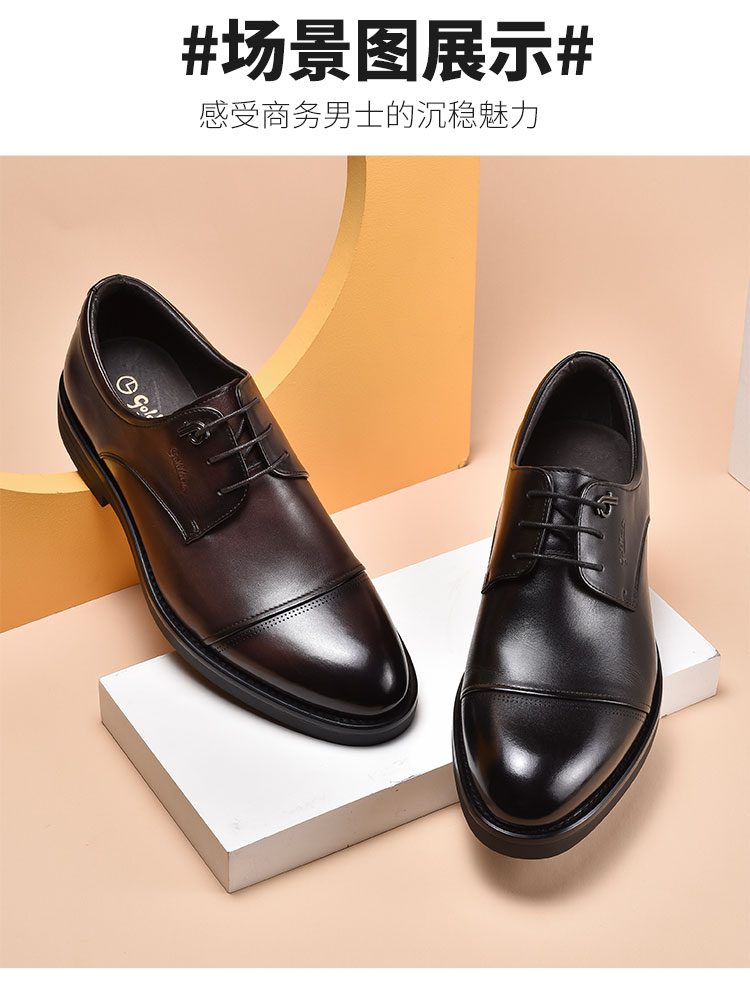 【真皮保证】纯手工制作,精选手感细腻的真皮,通体亮泽,彰显优雅尊贵,尽现男人本色,而且是穿十年都不会坏的好皮鞋【送运费险】