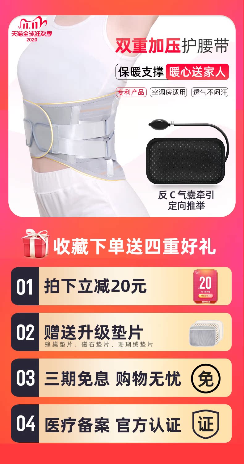 医用护腰带为您的腰椎负责,选择科学有效的医用护腰带!腰间盘腰肌劳损腰托医用护腰带,自发热腰椎间盘突出治疗器!减轻腰椎压力、男女通用!【赠送运费险】