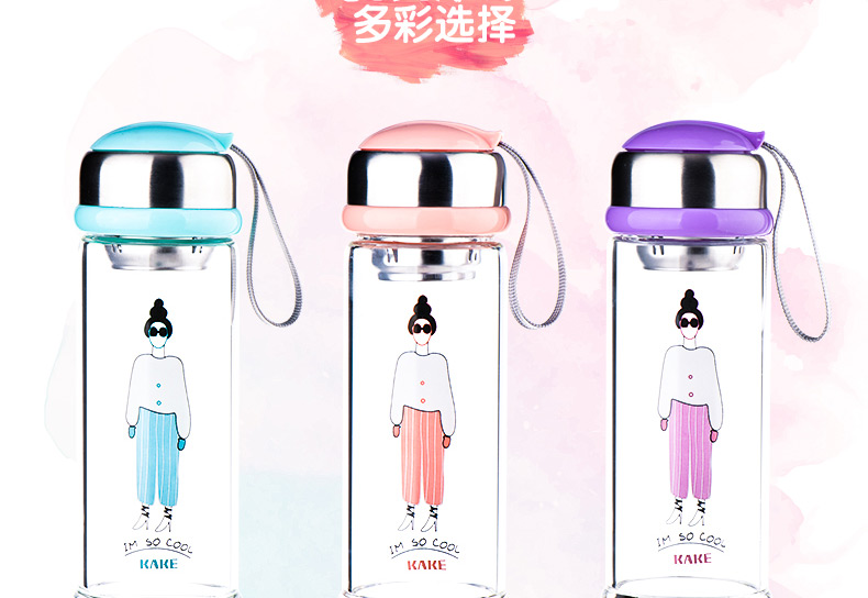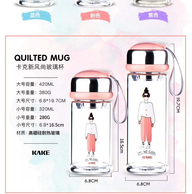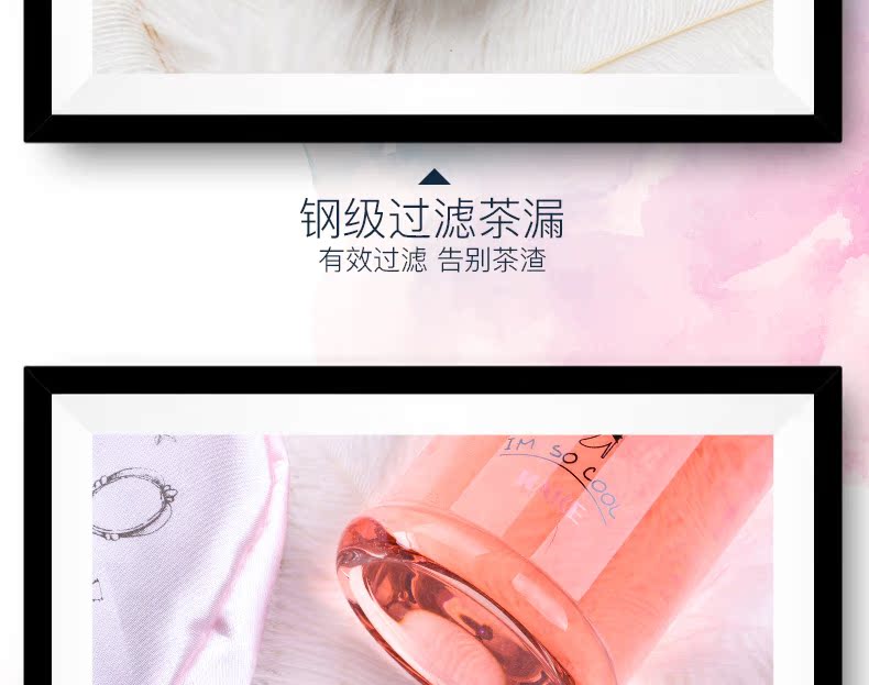 玻璃杯便携喝水杯子女创意潮流个性茶杯女士时尚成人带盖少女水杯