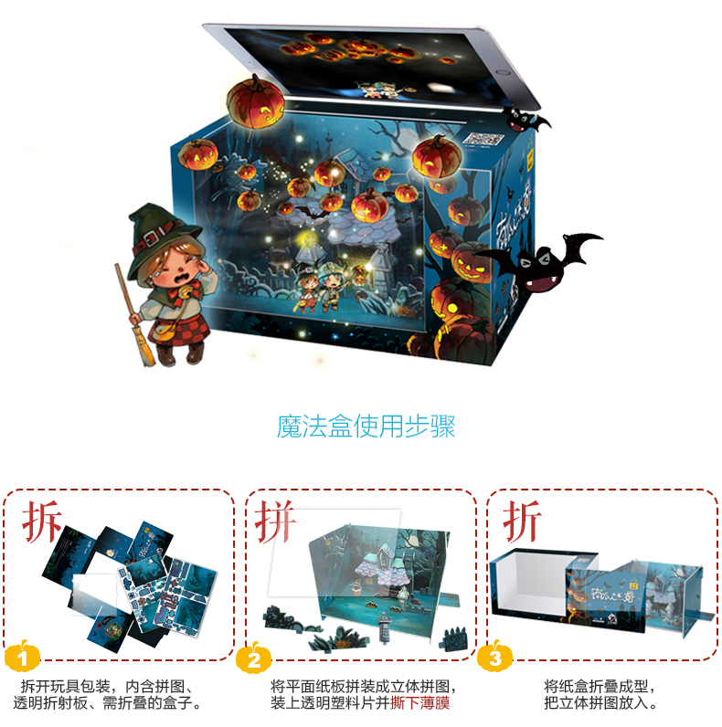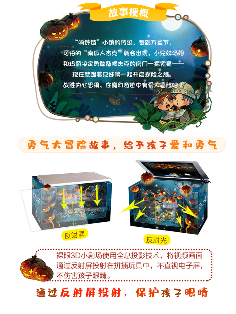【圣诞节礼物】南瓜人杰克裸眼3D魔法盒拼插早教益智玩具赠精装书