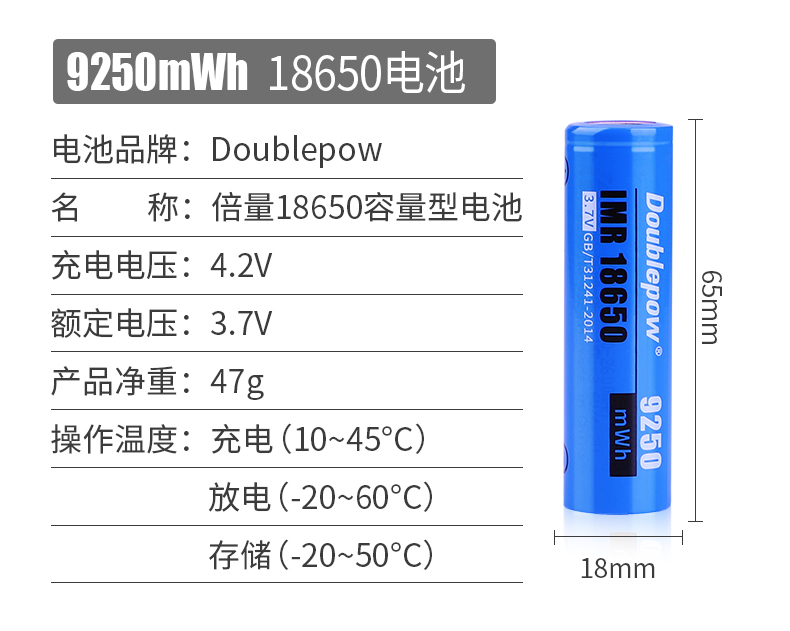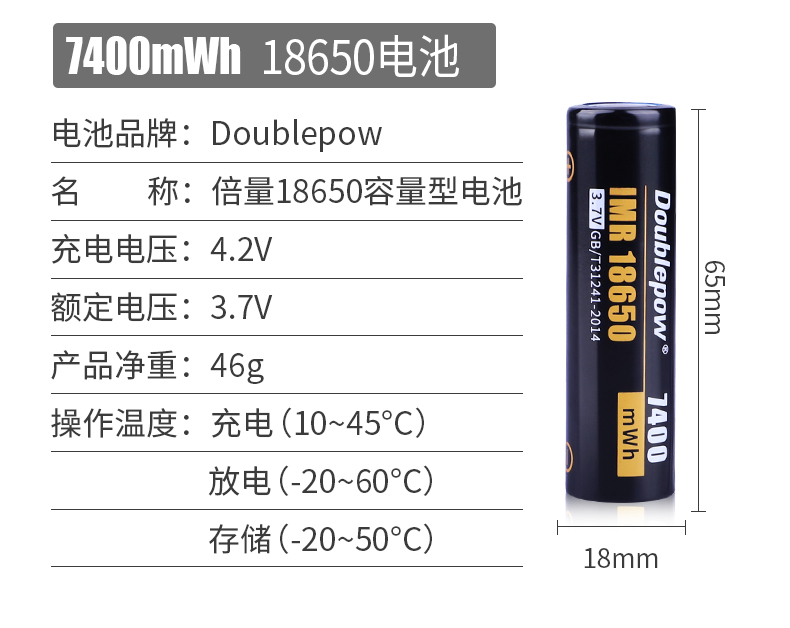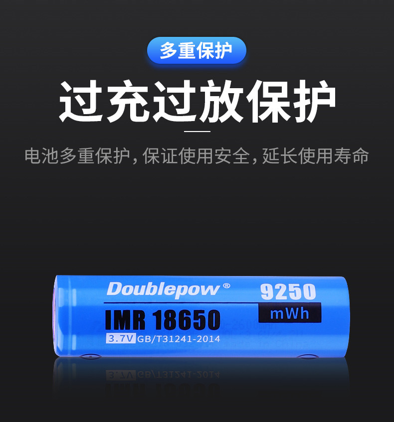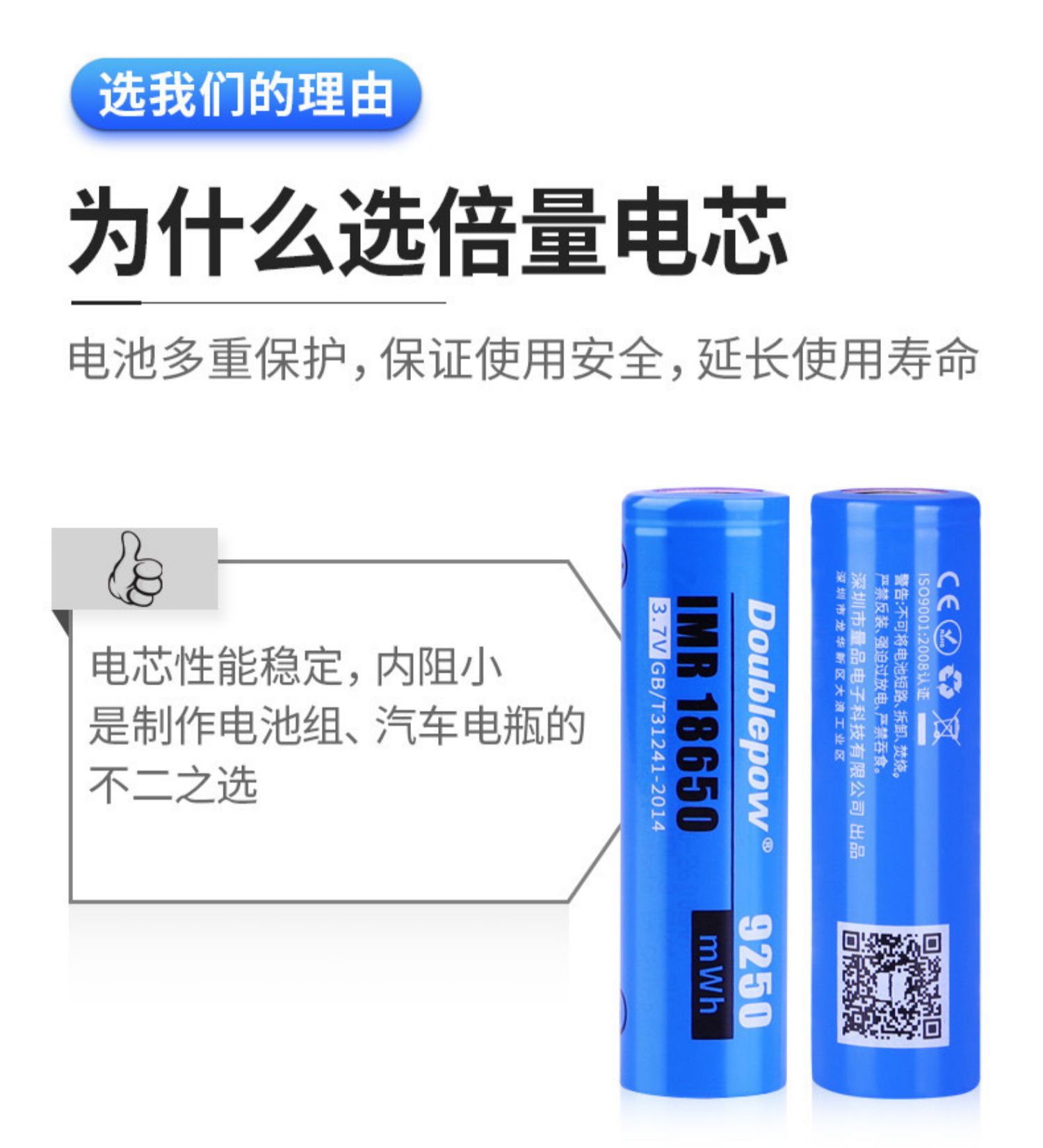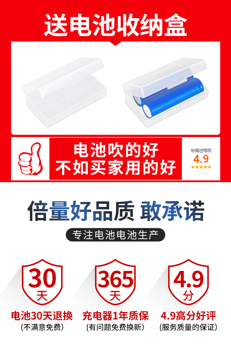 倍量18650锂电池3.7v4.2v小风扇电池蚊拍充电宝强光手电筒收音机