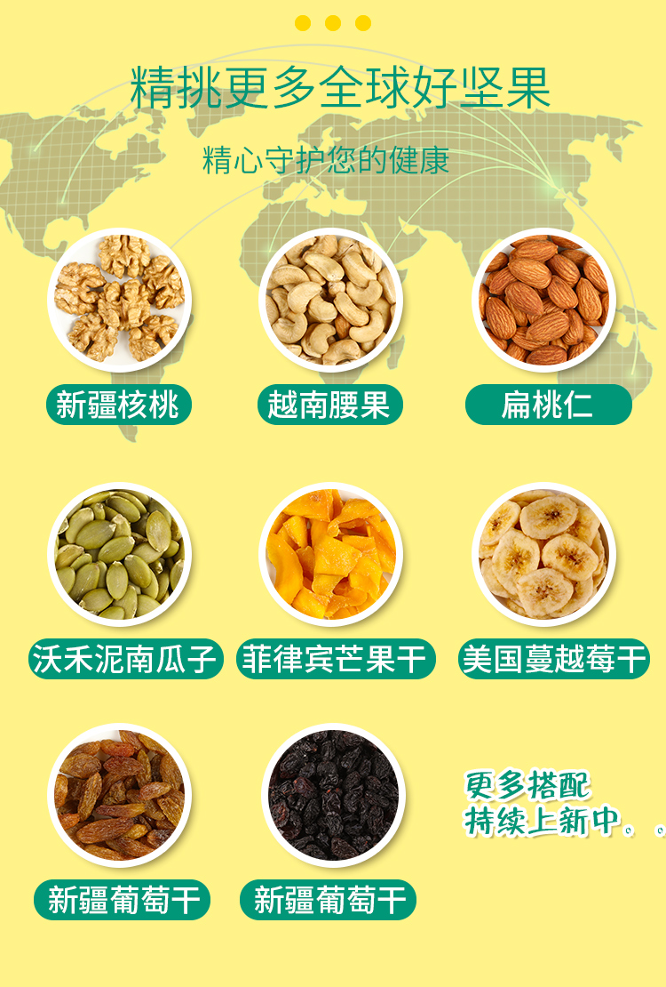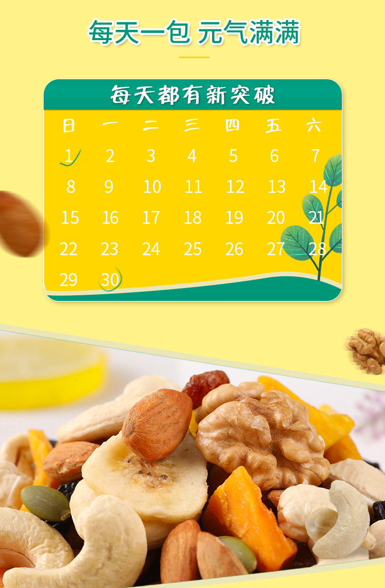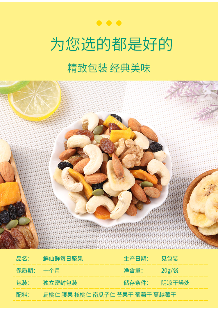 优选坚果果干,科学配比,7种搭配,30包装,颗颗饱满,粒粒新鲜,每日一包,每天不重样,健康营养无负担。