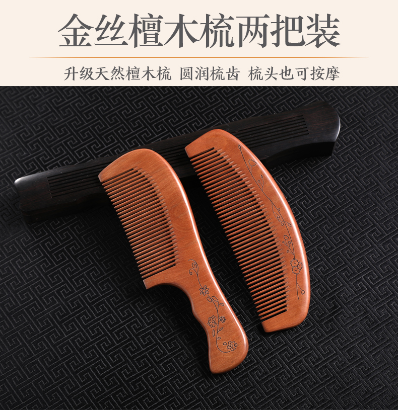 天然正品檀木檀香木头梳子桃木家用网红款按摩脱发男女长发专用防