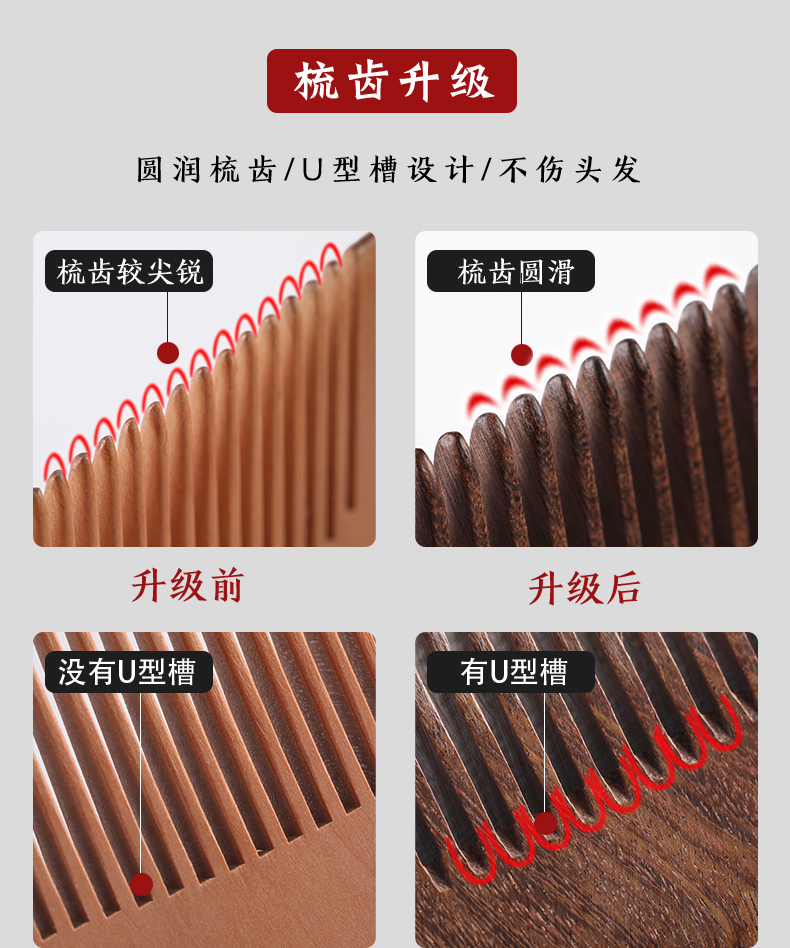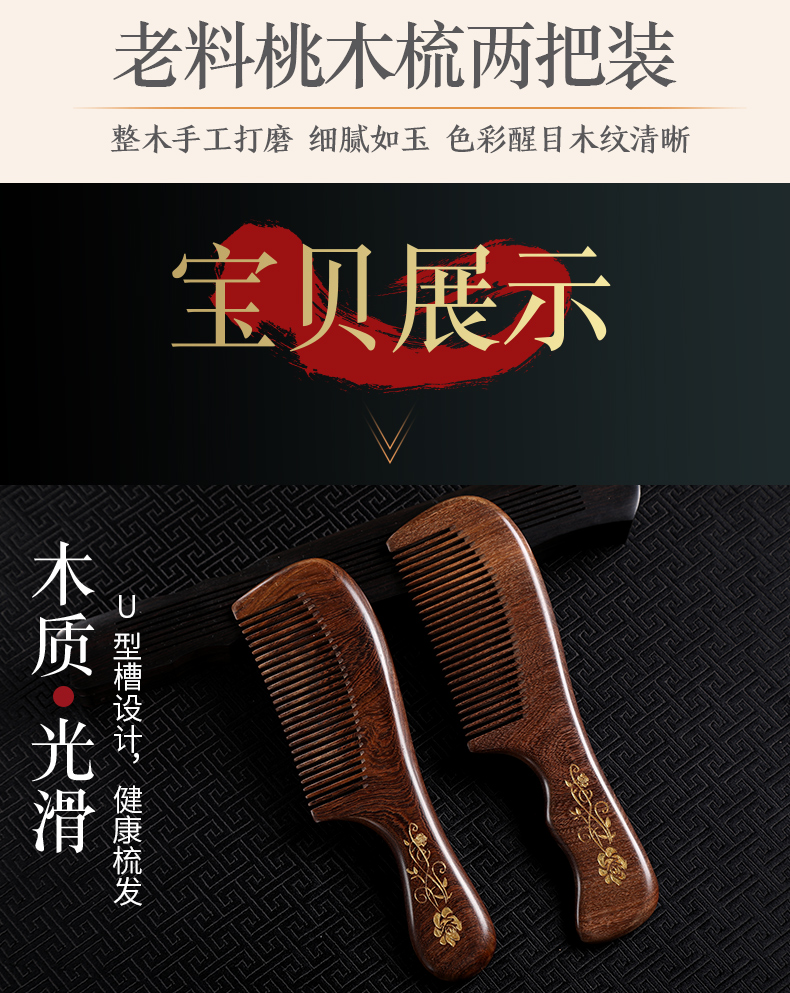 天然材质,圆润梳齿,不伤头皮,减少静电,家居旅行必备,源头工厂直销