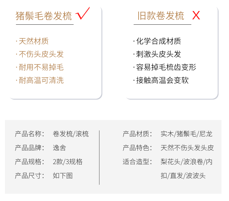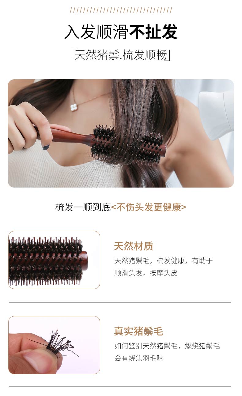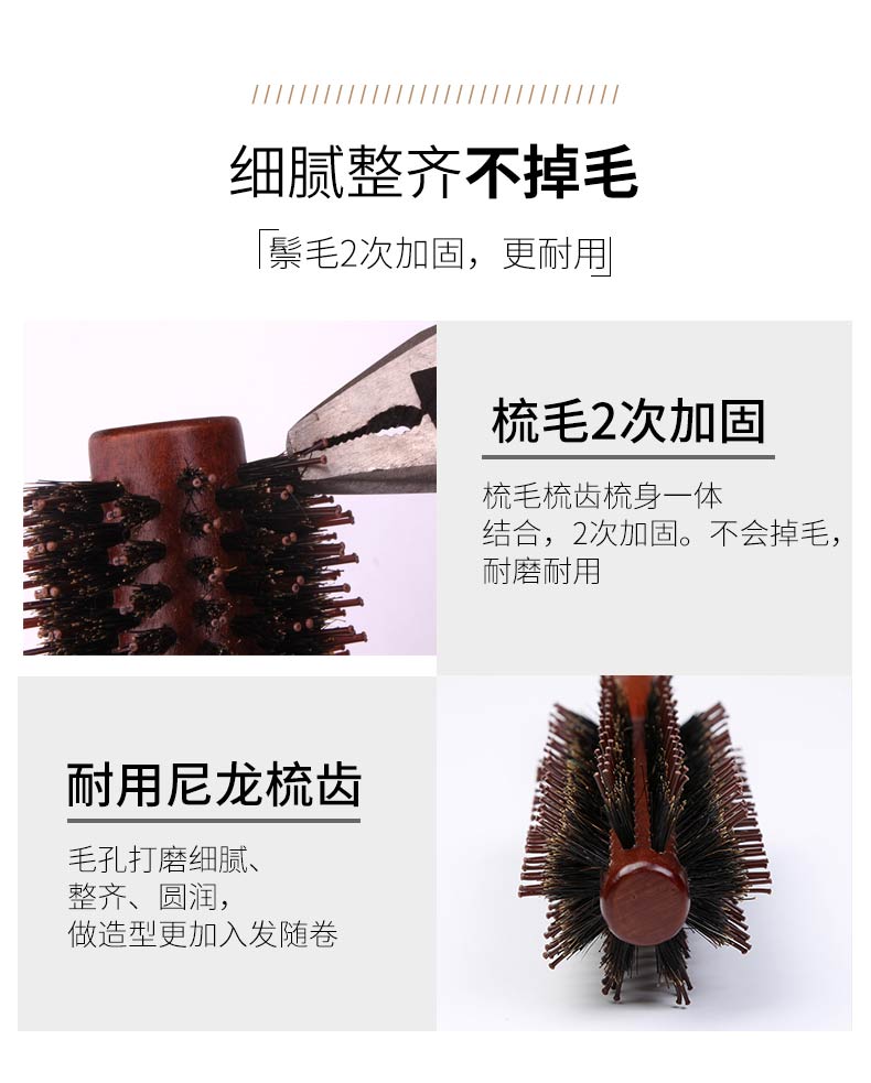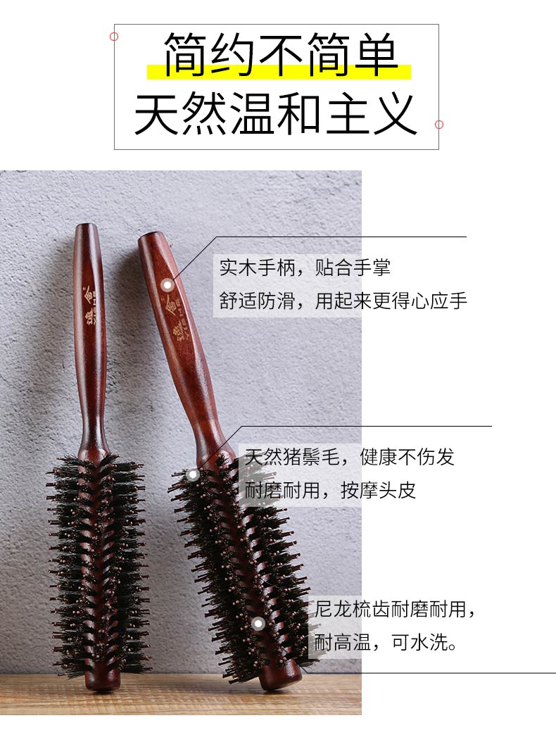 梳子卷发梳猪鬃毛滚梳子美发内扣家用吹造型发廊专业圆筒卷梳男女