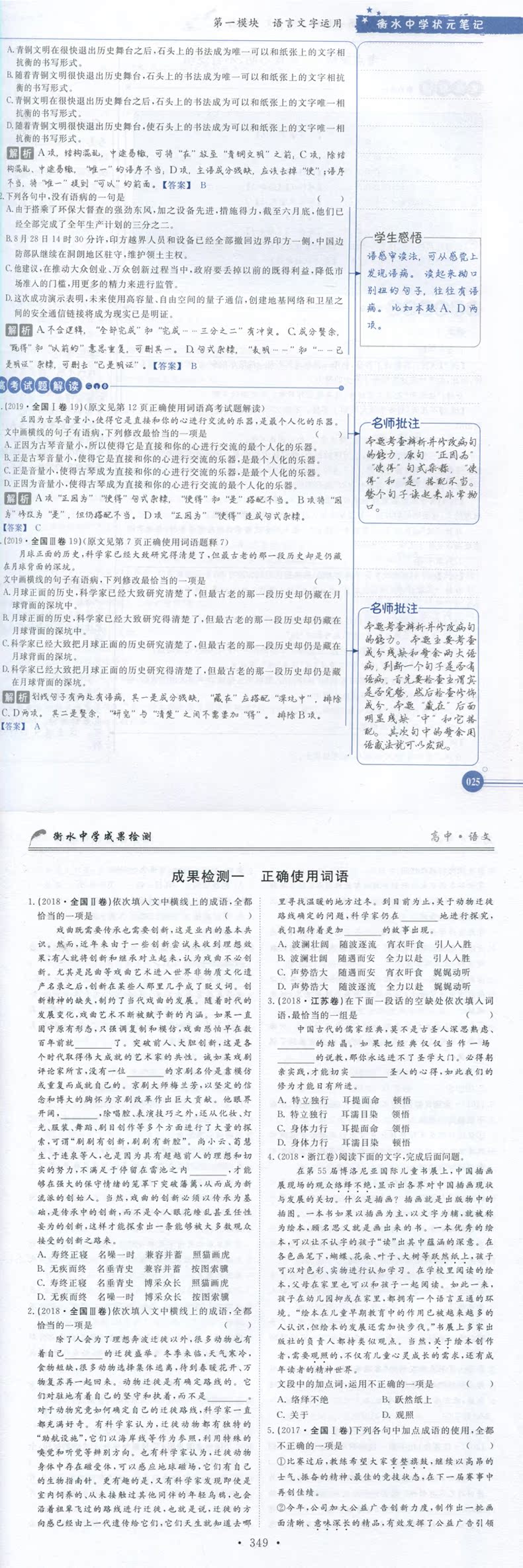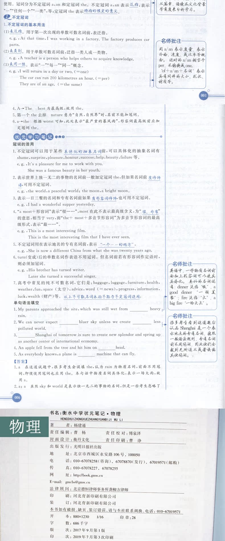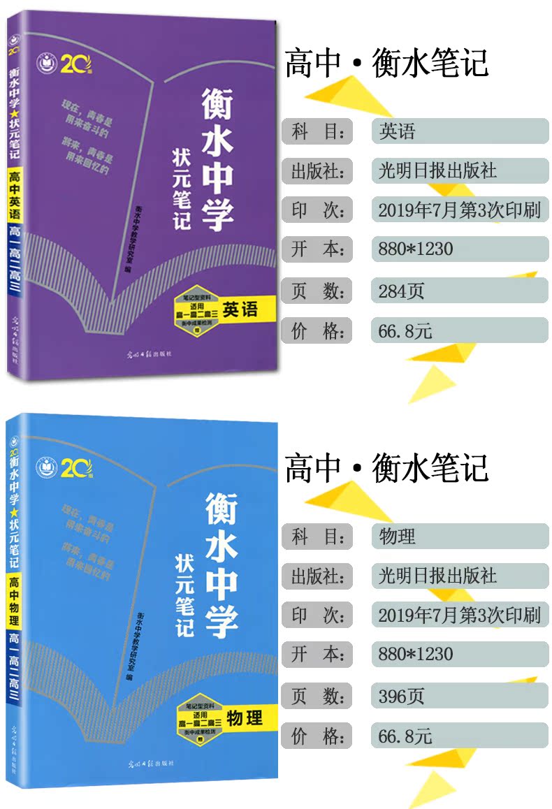 六科任选2020版衡水中学状元笔记高中数学语文英语物理化学生物高一高二高三高考总复习资料学霸提分笔记 理科通用版教辅资料
