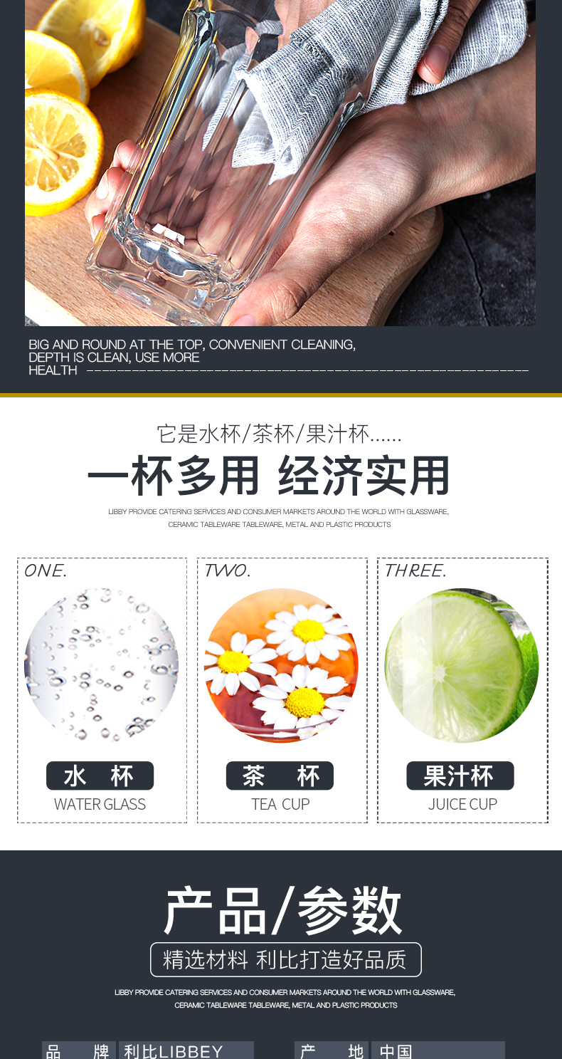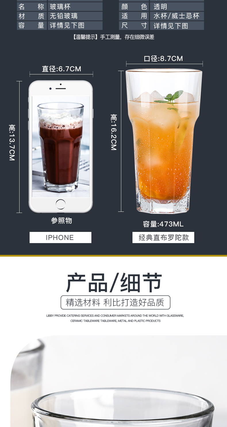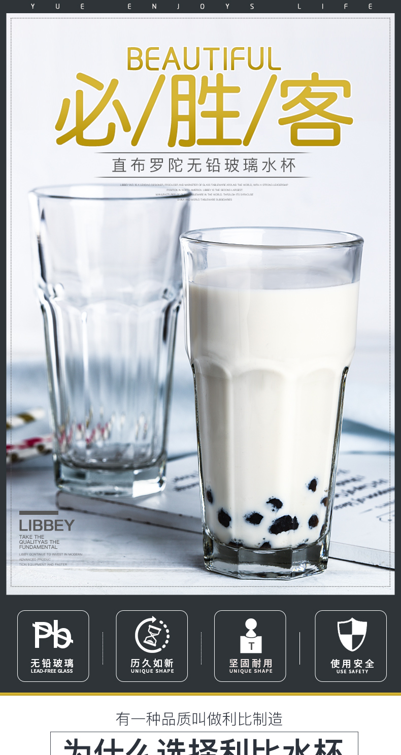 【买1送1】Libbey利比玻璃杯牛奶果汁杯啤酒杯茶杯必胜客耐热水杯