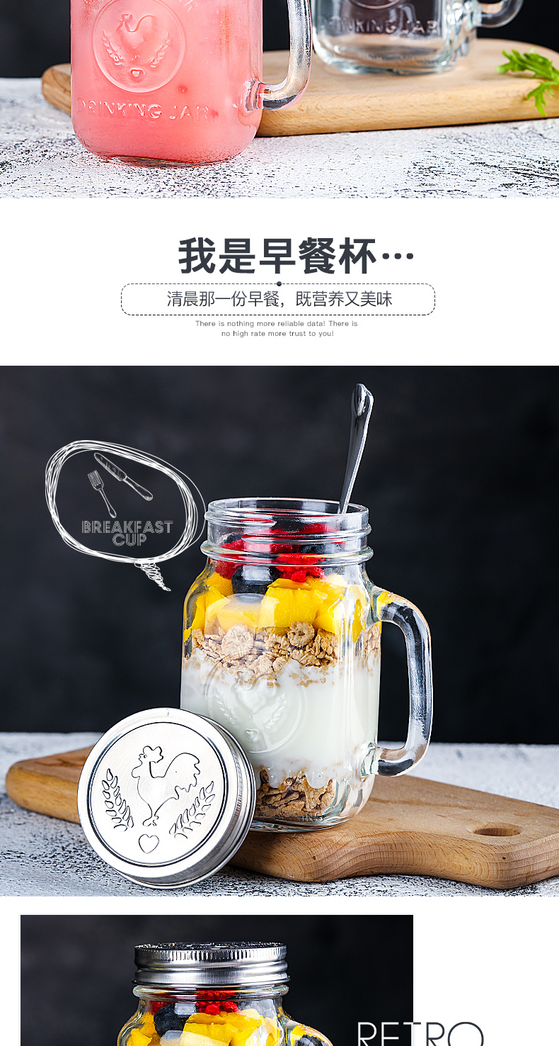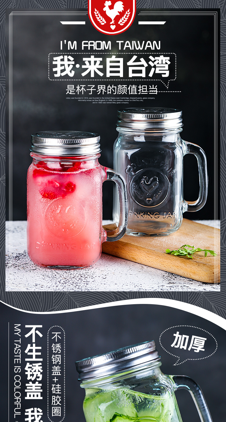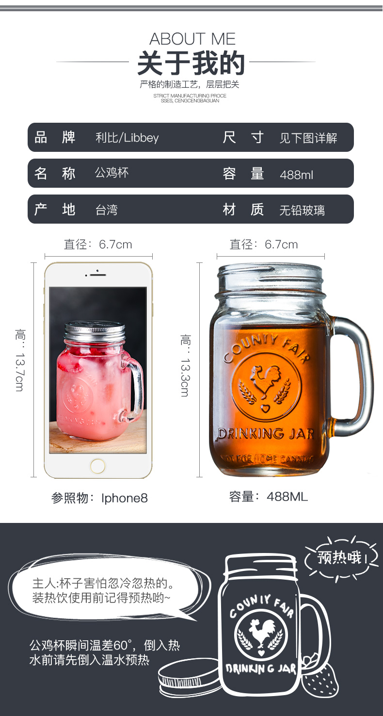 Libbey利比进口玻璃杯果汁杯水杯啤酒杯复古公鸡杯488ml透明带盖