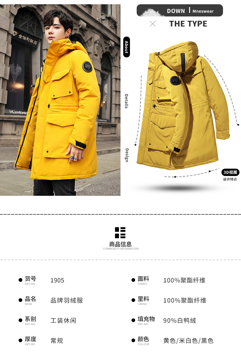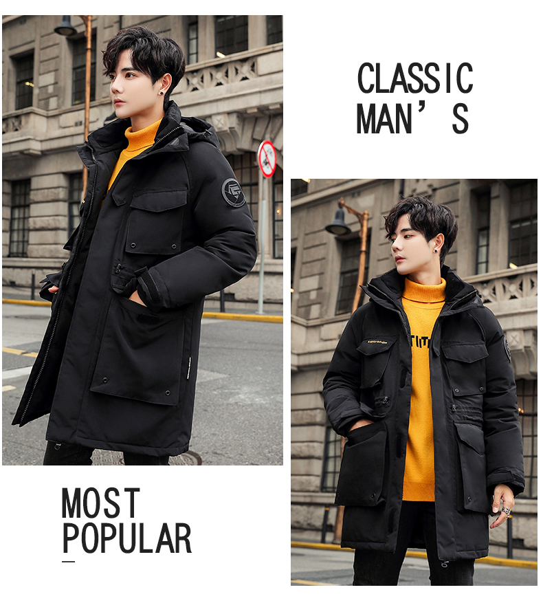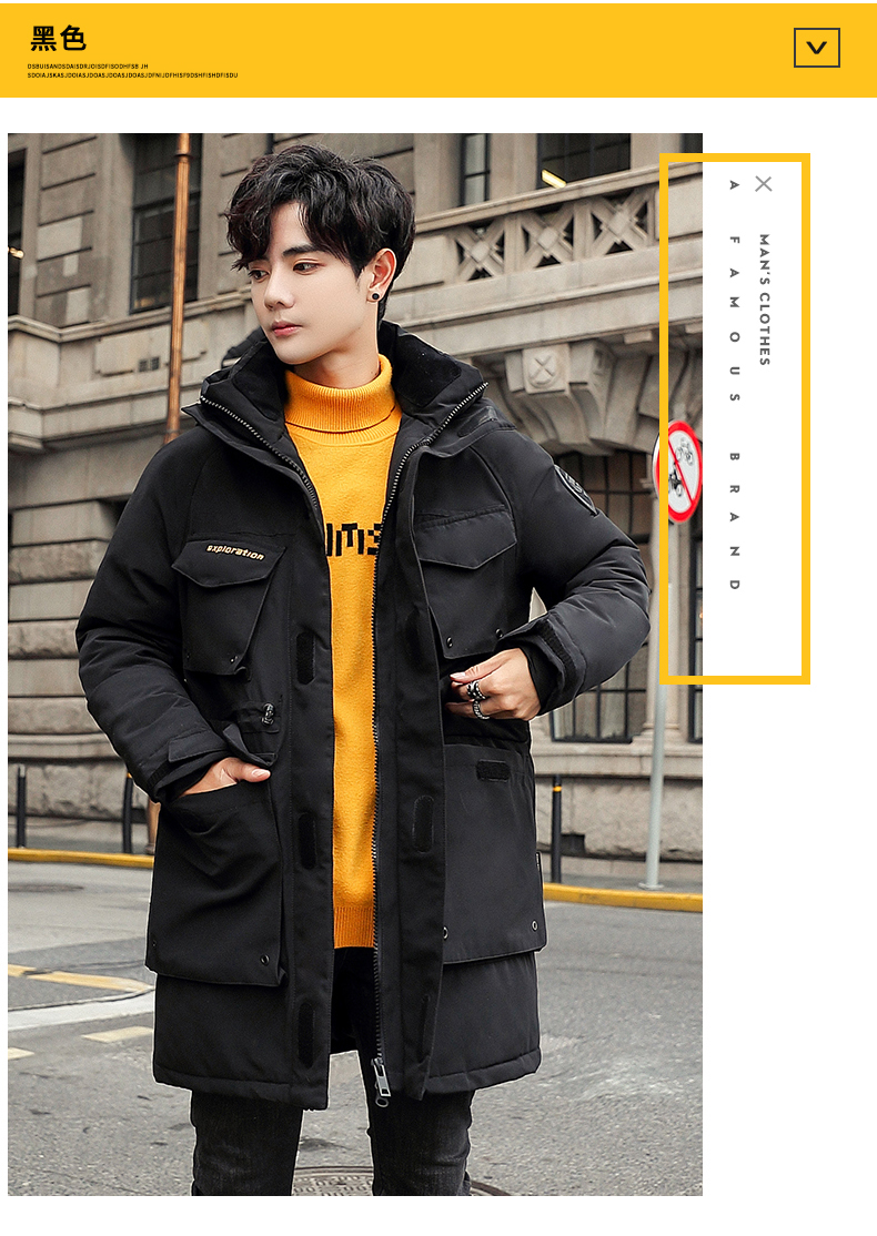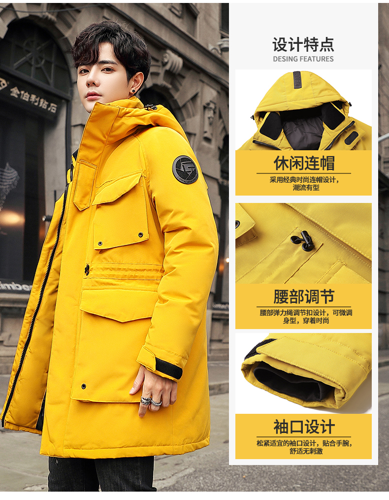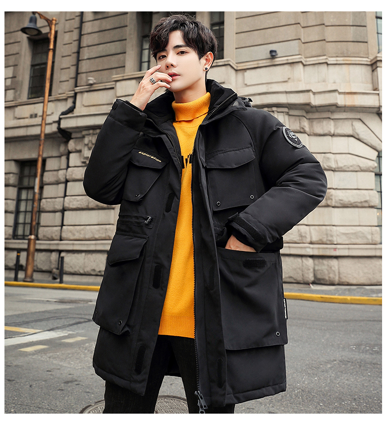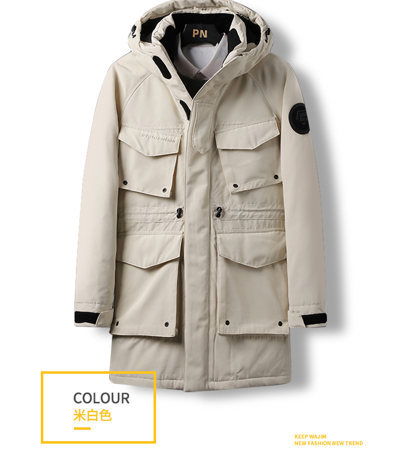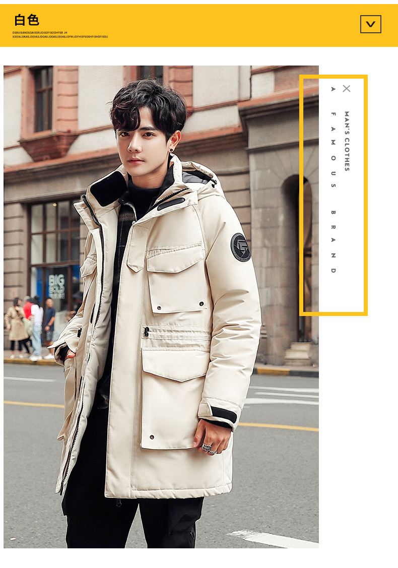 吉普盾2019冬季新款男士工装加厚羽绒服中长款连帽外套男装潮流