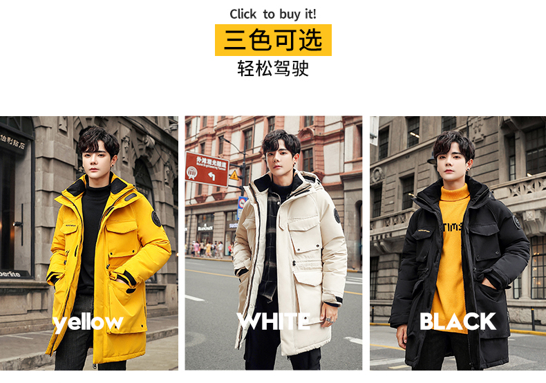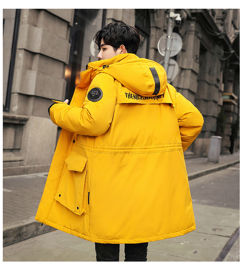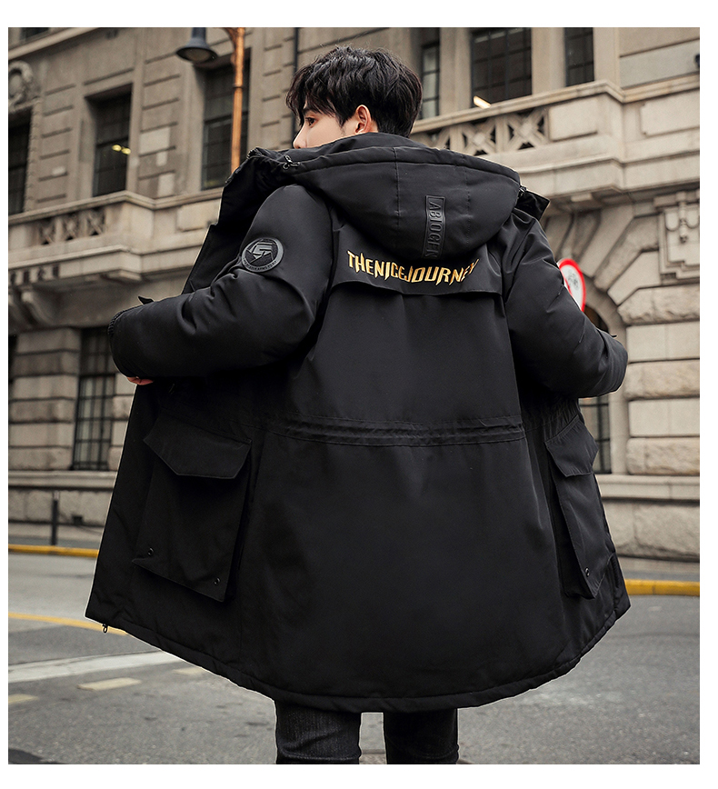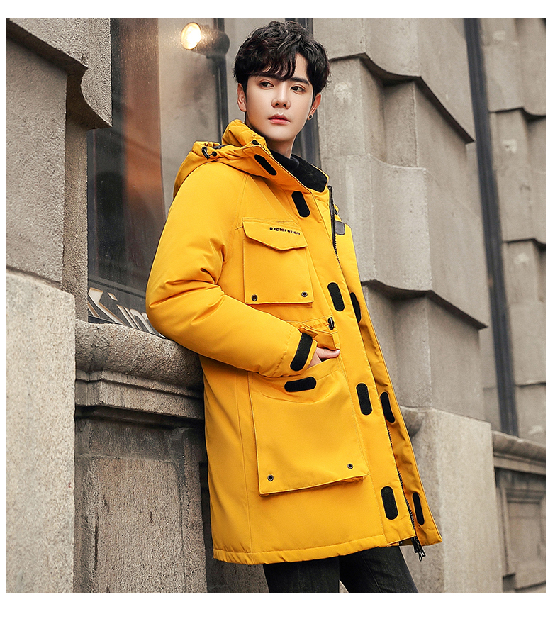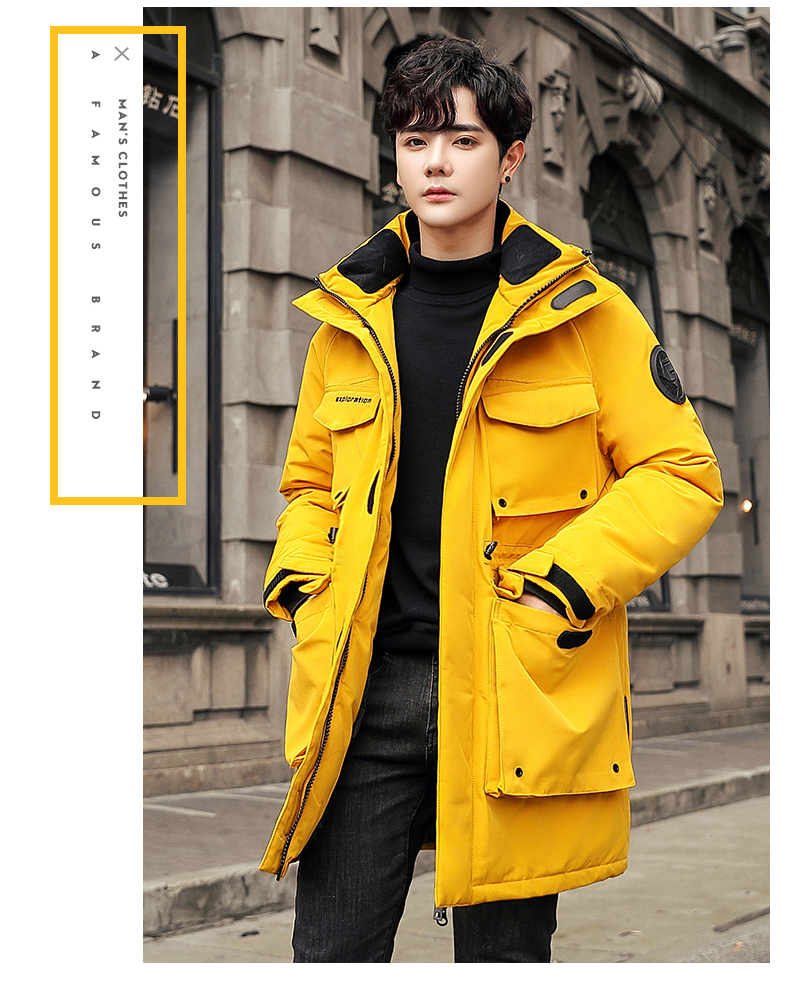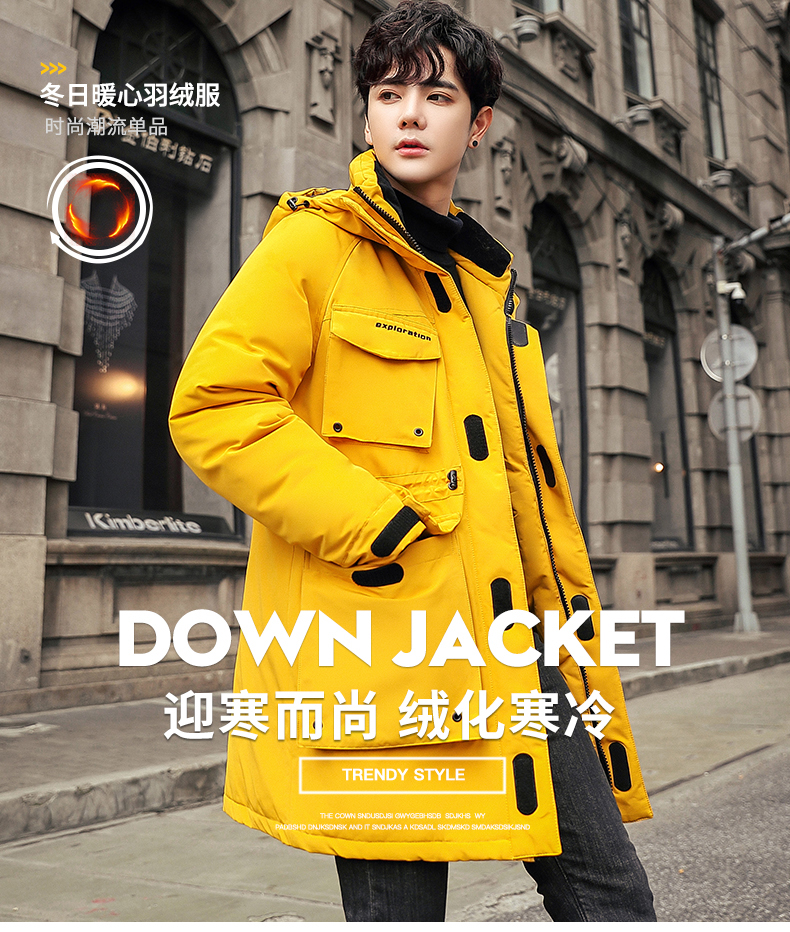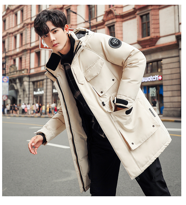 吉普盾2019冬季新款男士工装加厚羽绒服中长款连帽外套男装潮流