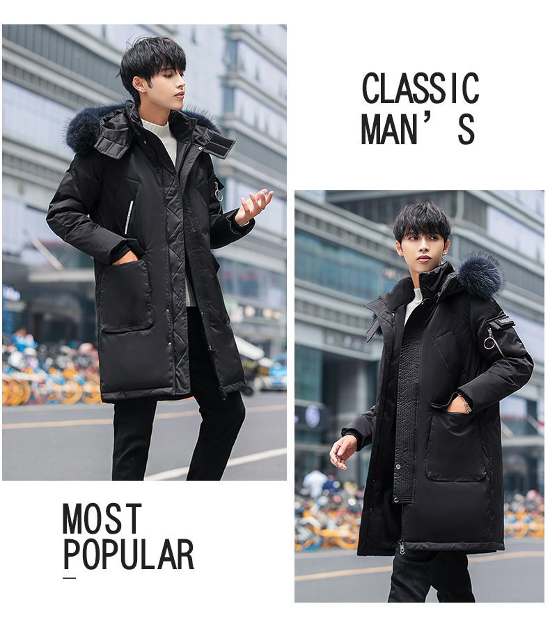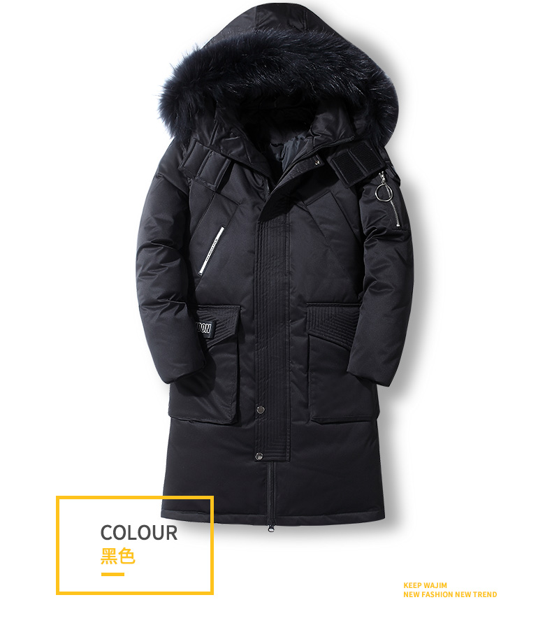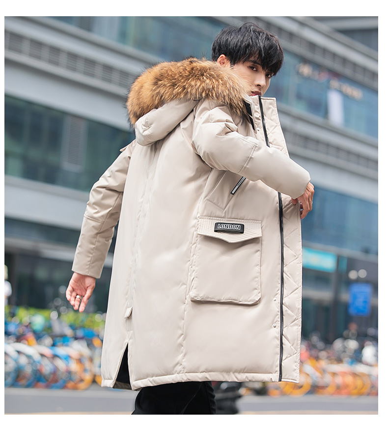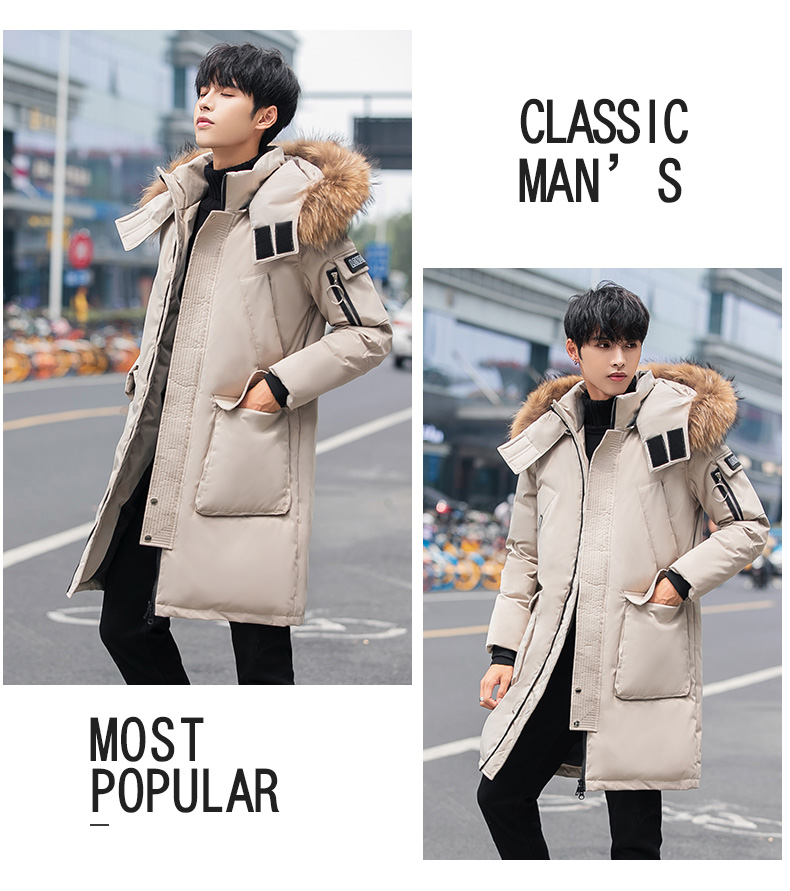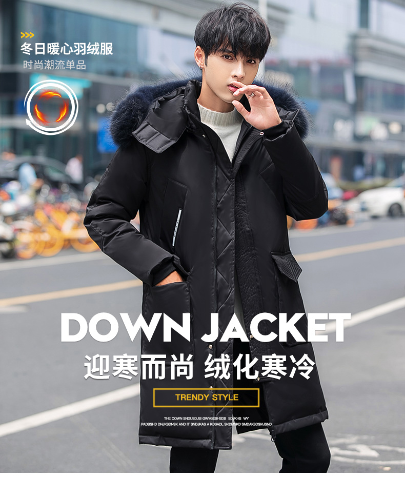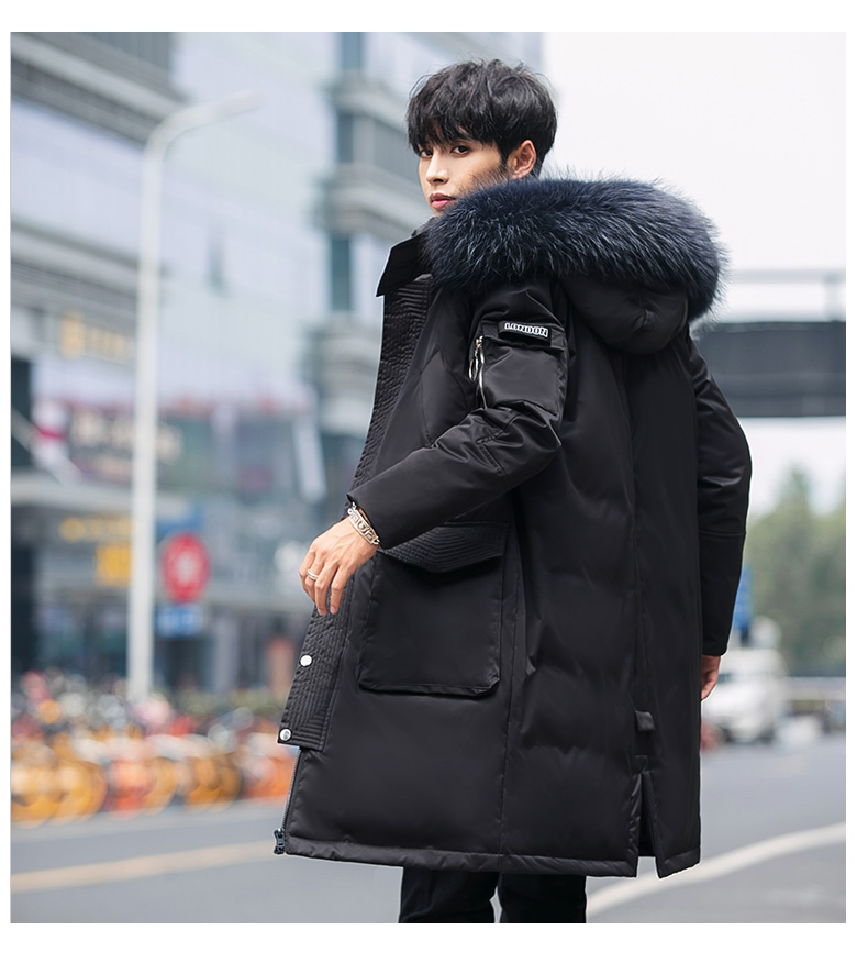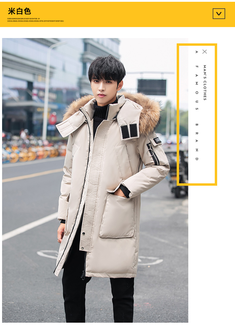 吉普盾2019冬季新款超大毛领男士修身中长款羽绒服加厚连帽外套潮