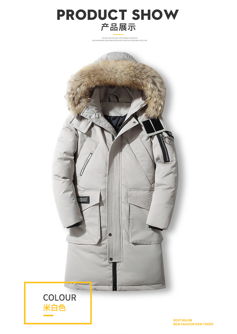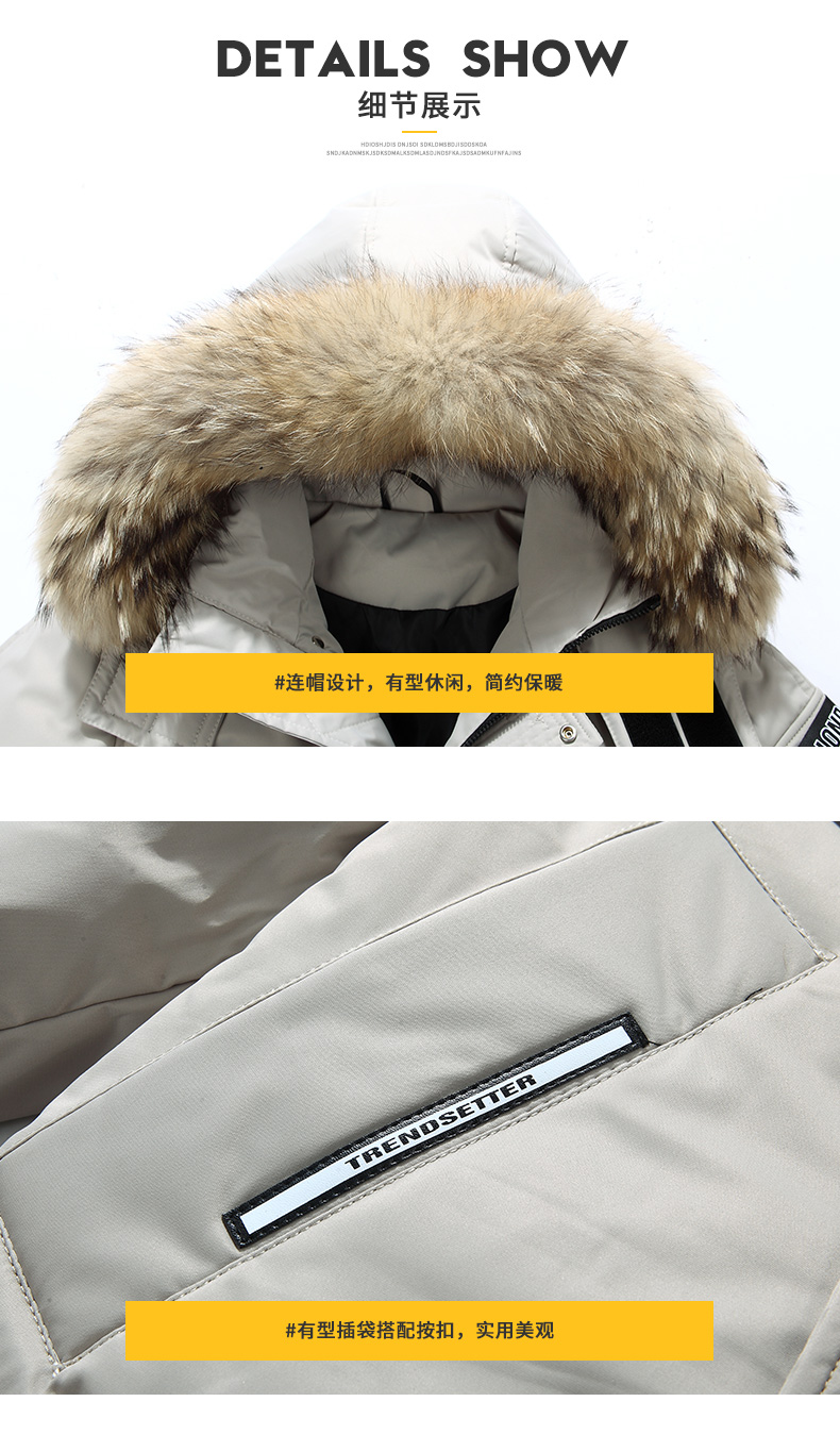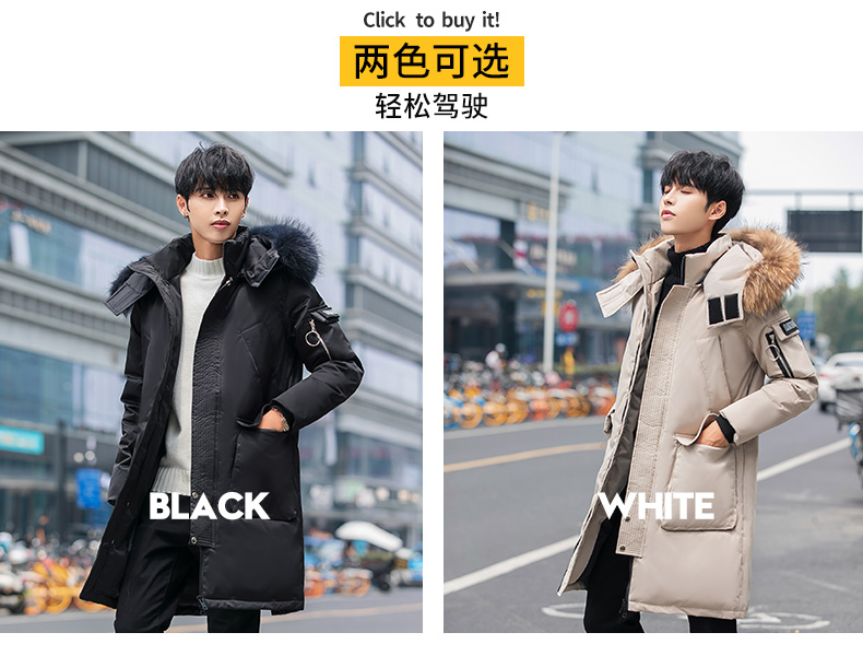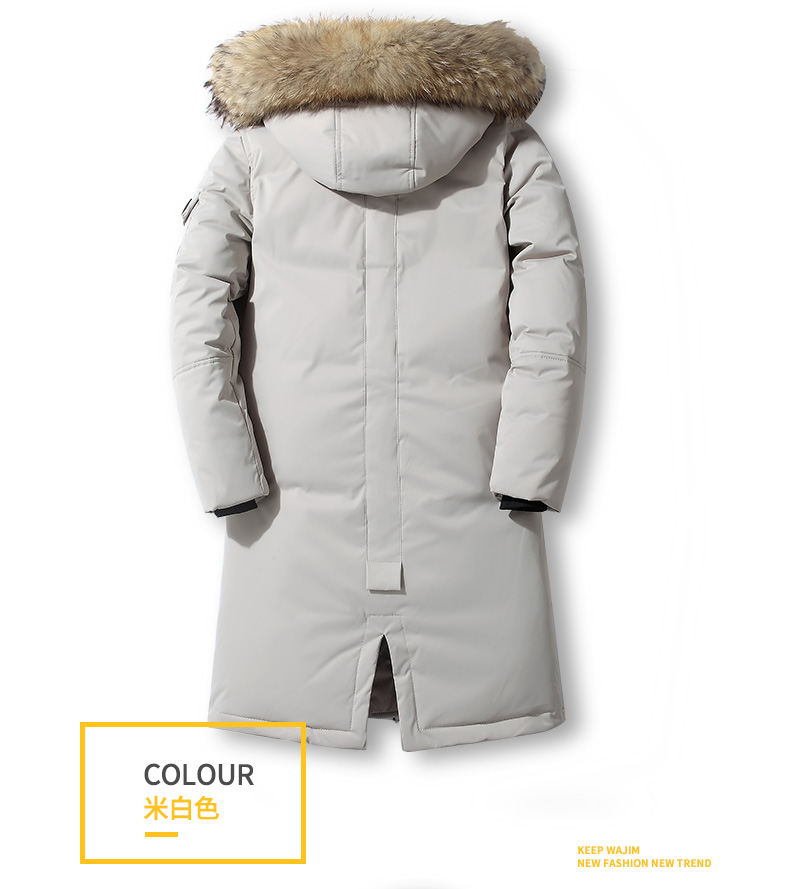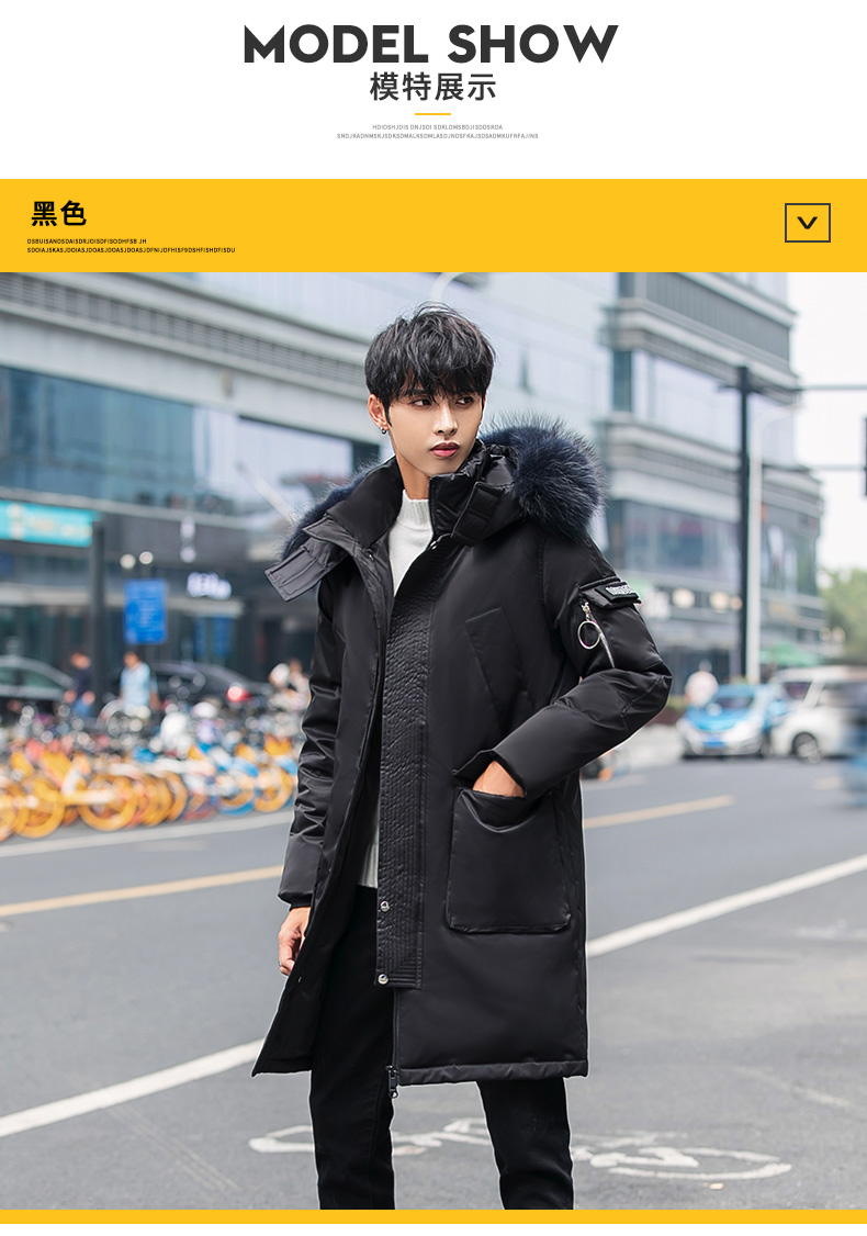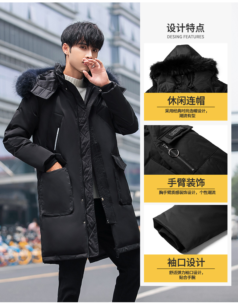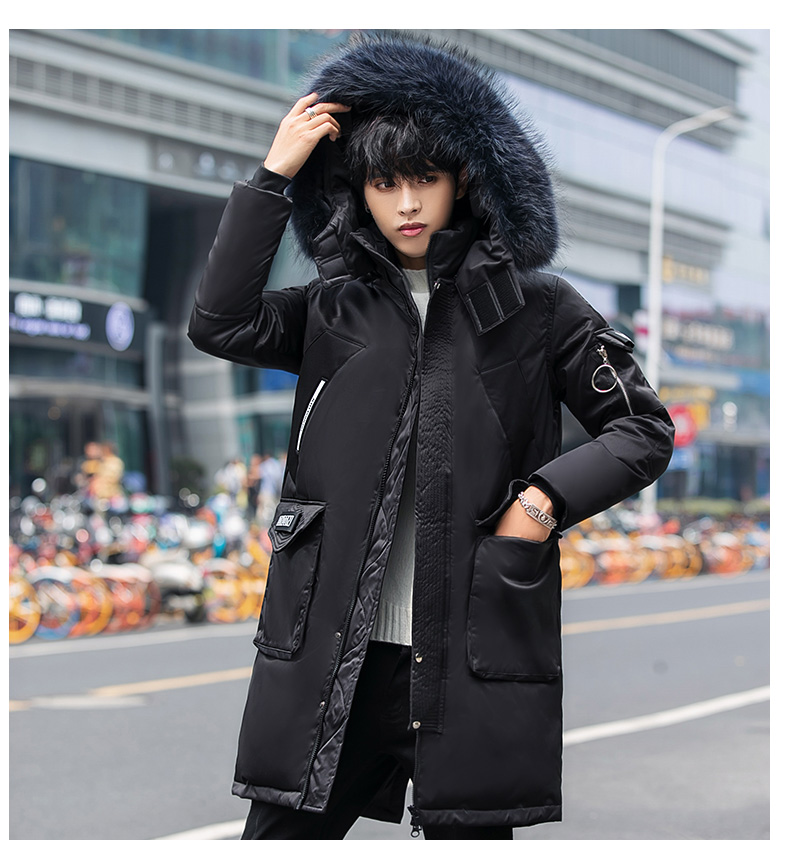 吉普盾2019冬季新款超大毛领男士修身中长款羽绒服加厚连帽外套潮