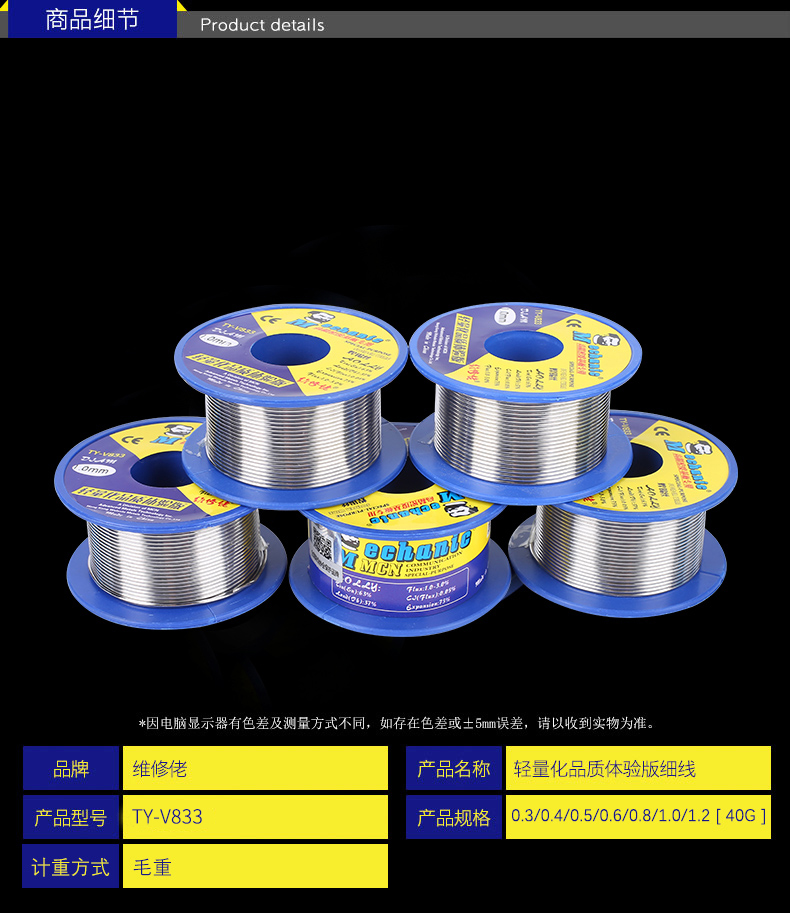 香港维修佬,百年品牌,卷线整齐,焊点光亮,残留物少,不需要清洗,功能广泛,低熔点,易上锡符合欧美环保认证,含锡63%,使用更放心,性价比高量足