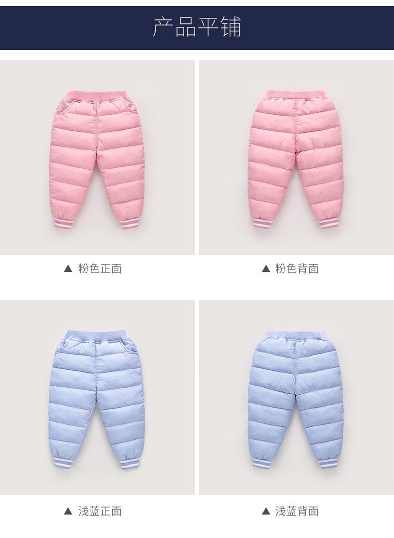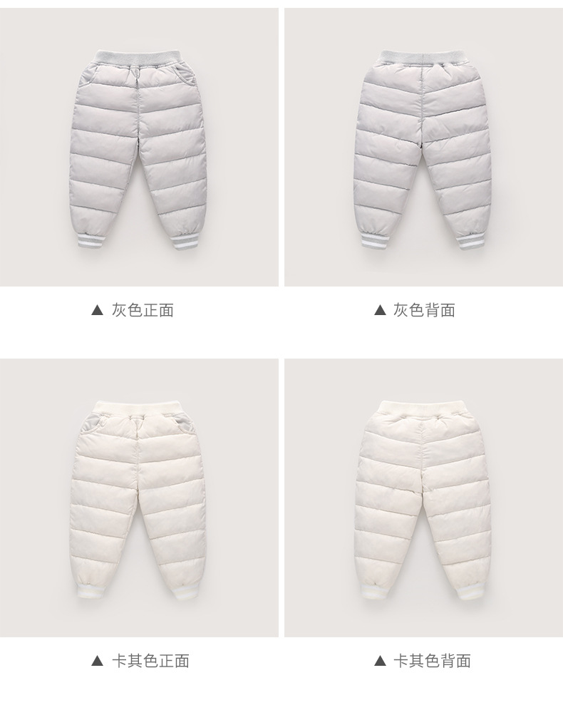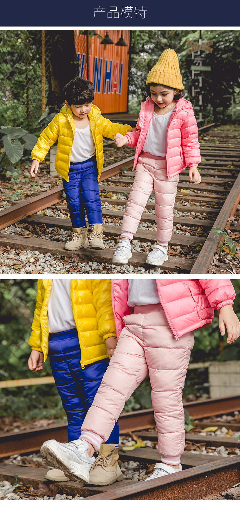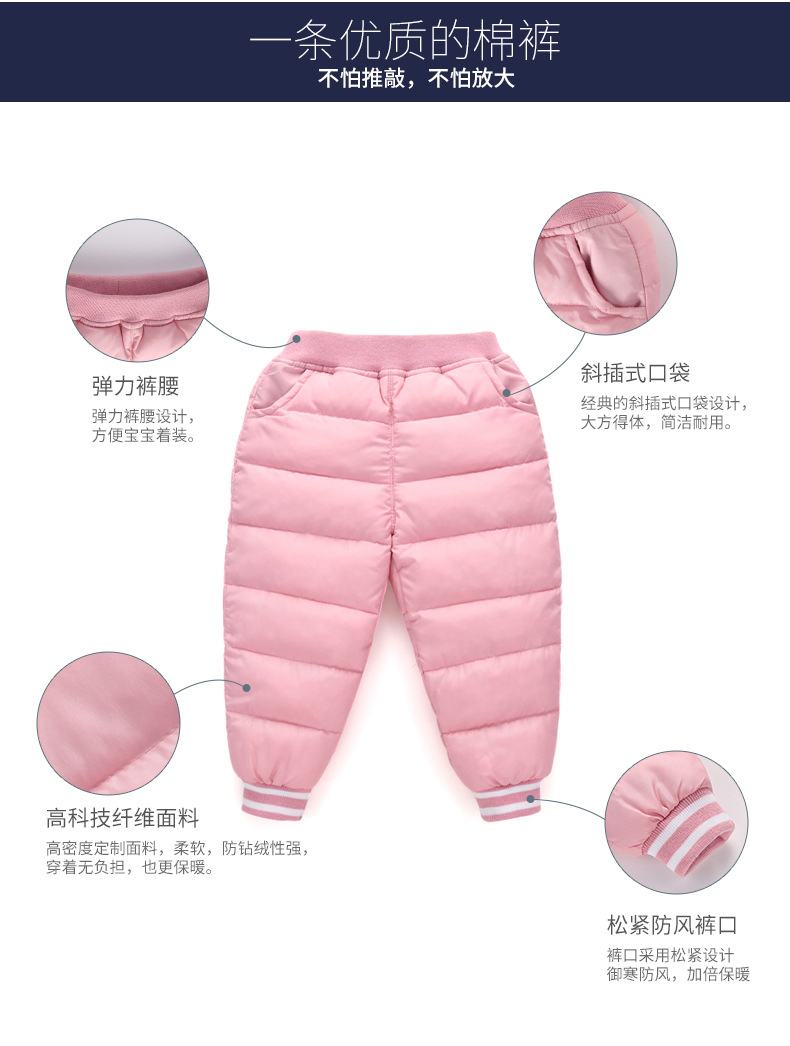 时尚儿童轻型羽绒裤,清爽透气好面料,呵护宝贝宝贝的娇嫩肌肤,精选优质棉花,里料加绒更保暖,安全面料,麻麻放心的选择!