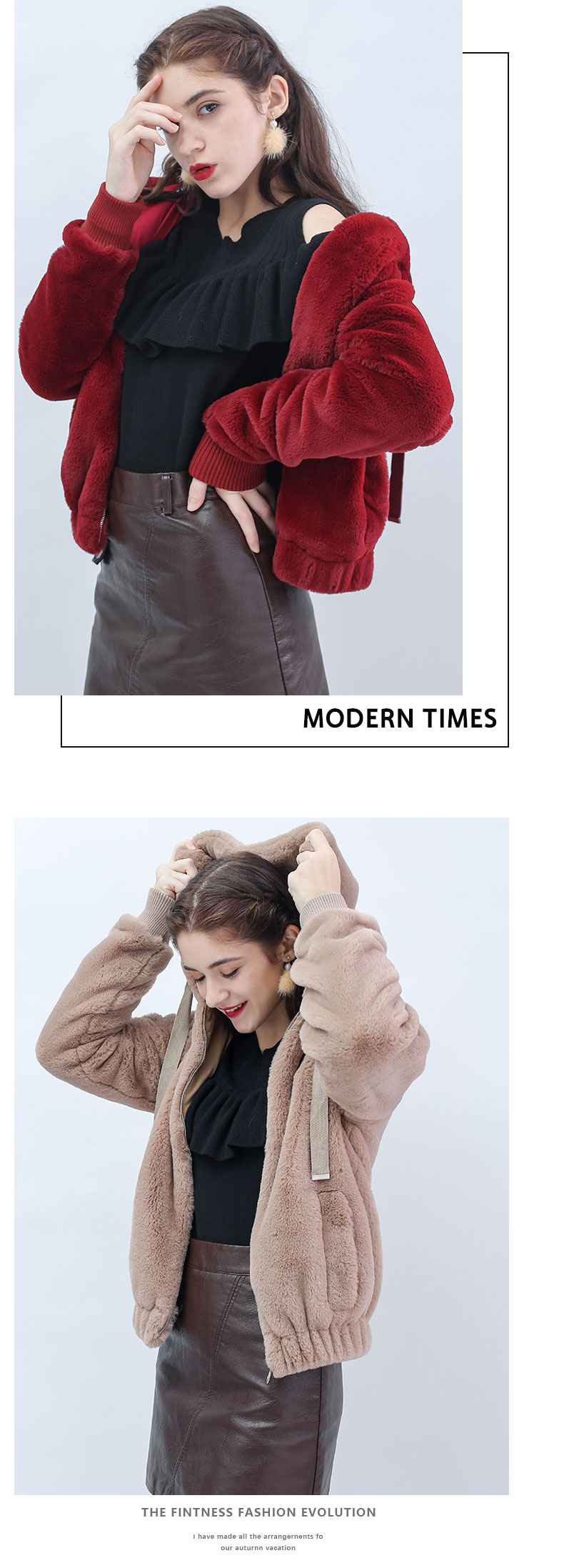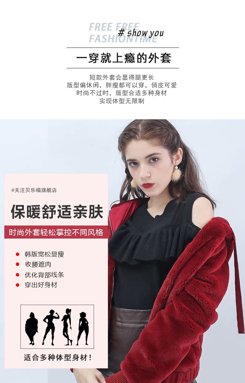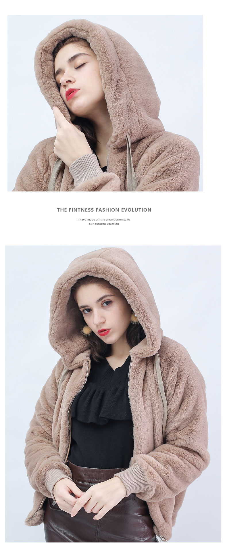 仿兔毛皮草外套女加绒2019新款秋冬小个子连帽百搭厚学生短款外套