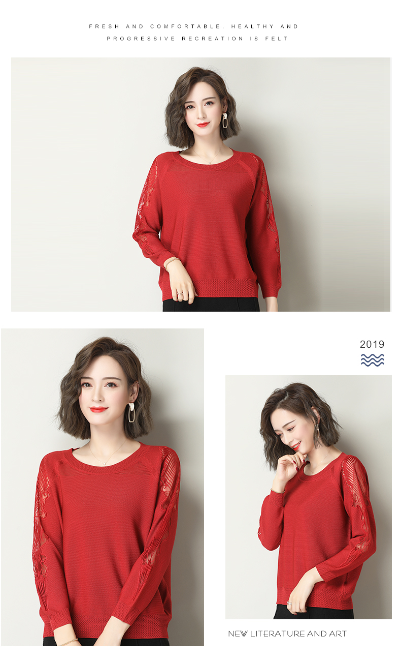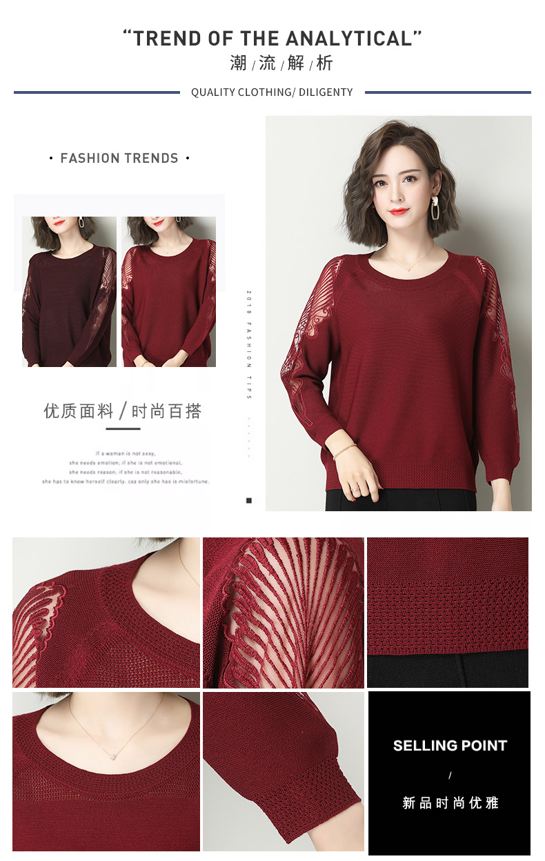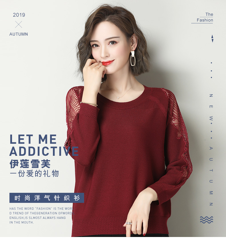 中年女装妈妈装秋装新款中袖中老年针织衫洋气毛衣长袖时尚打底衫