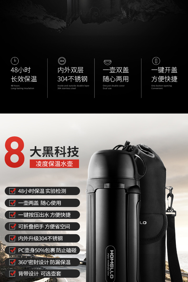 【超大容量2升~】HOMELLO高档保温杯,3D杯盖技术,真空保温,48小时幸福温度,经得起时间丈量,车载户外,护您一生滴水不漏【赠运费险】