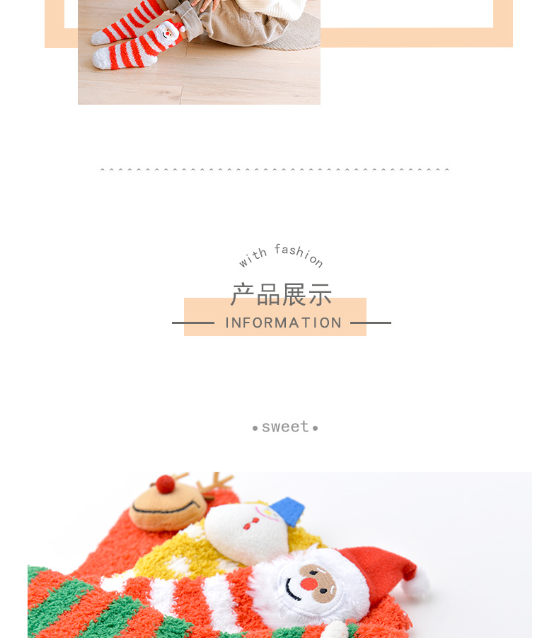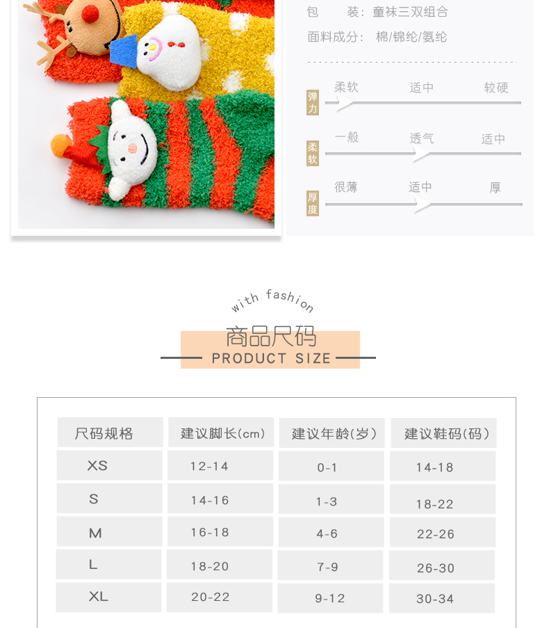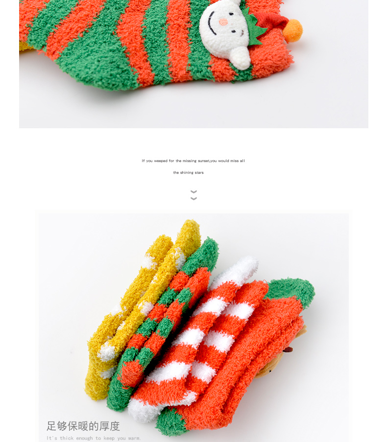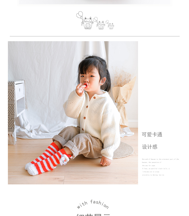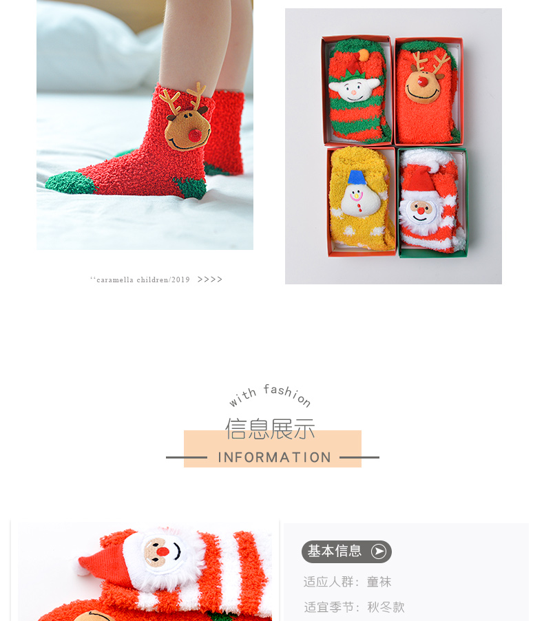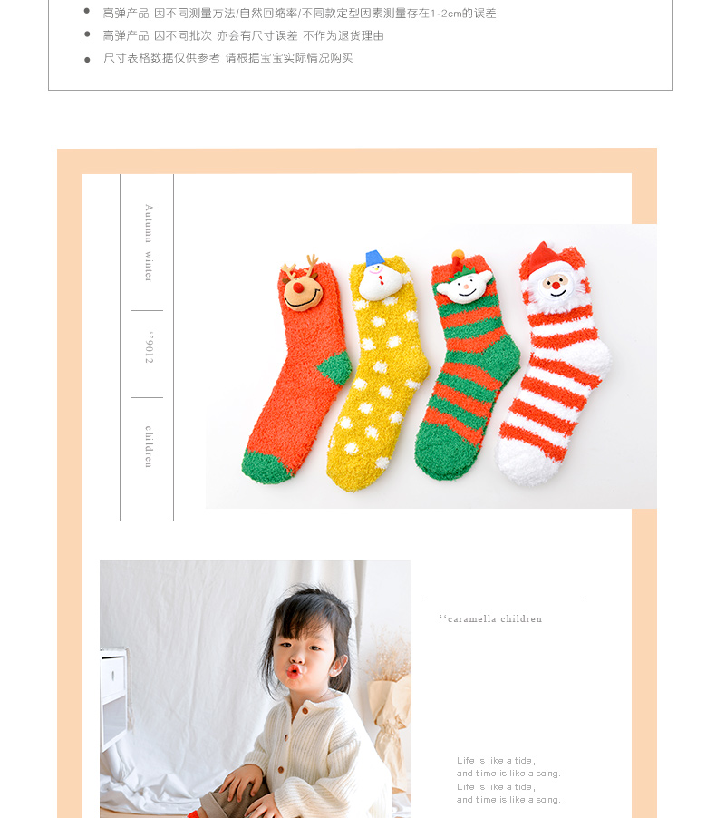 caramella儿童袜子秋冬加厚地板袜保暖婴儿袜宝宝袜中筒袜圣诞袜